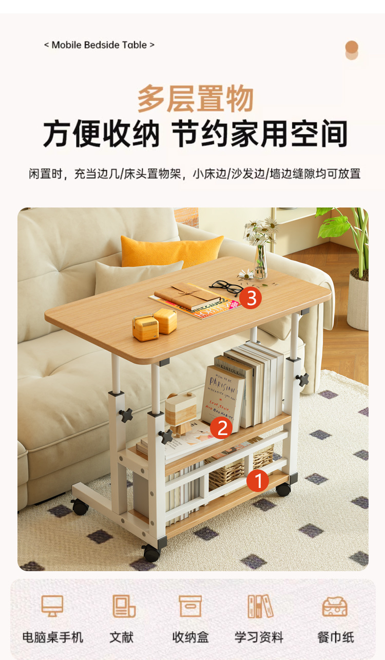 可移动升降电脑桌床边桌家用小桌子简约学生宿舍学习书桌子出租屋