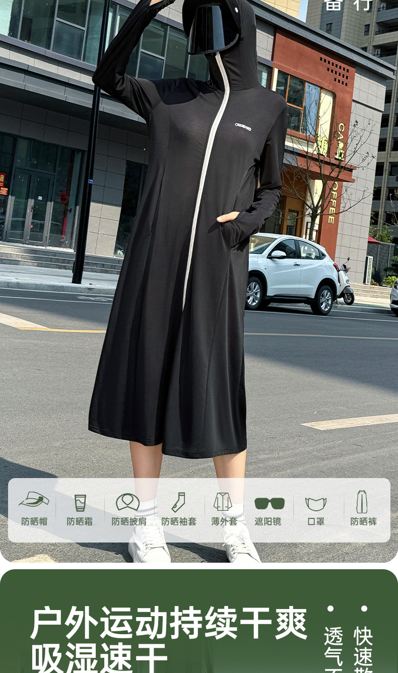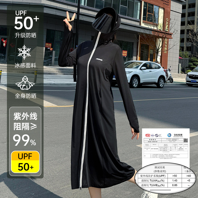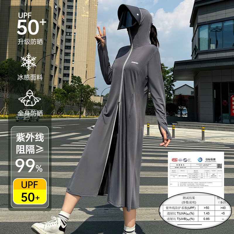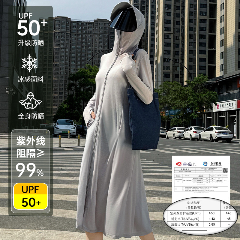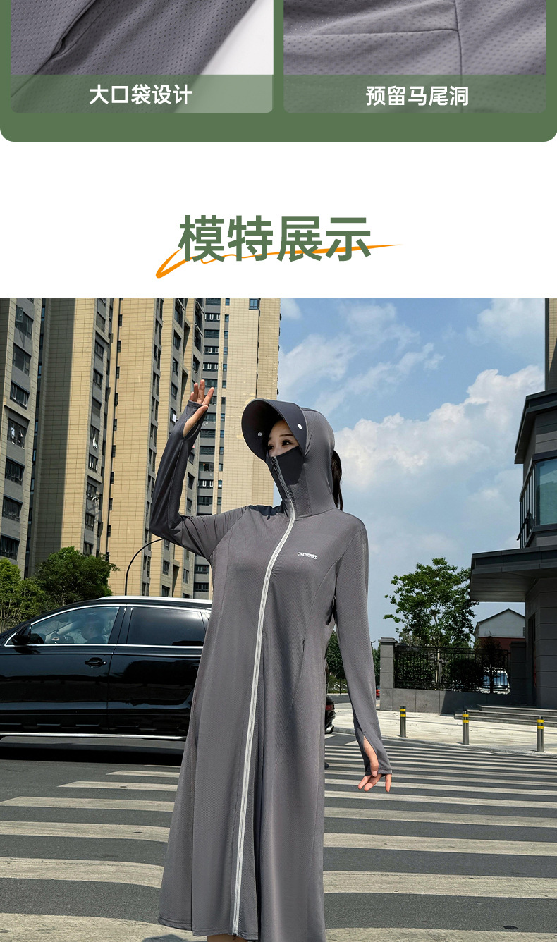 冰丝加长款全身防晒衣服衫连帽厂家批发新款防紫外线透气夏季薄款