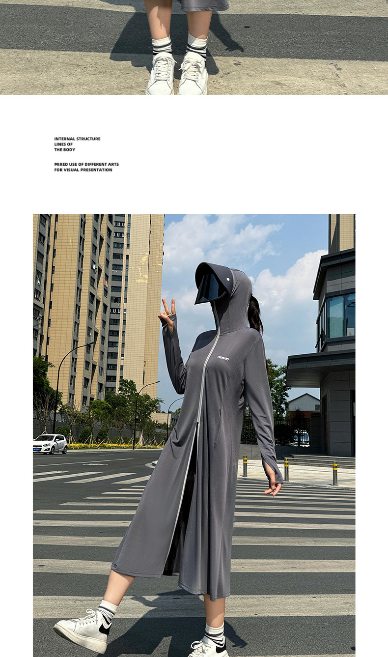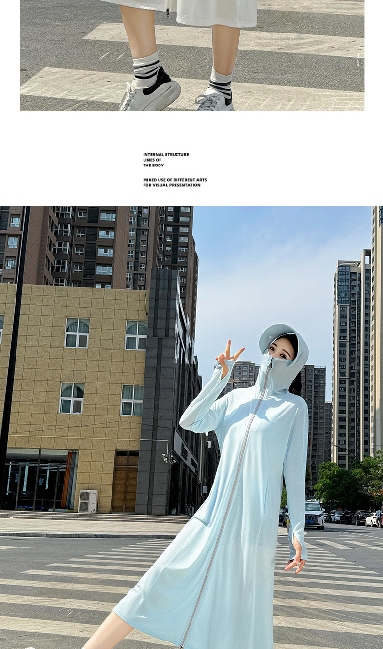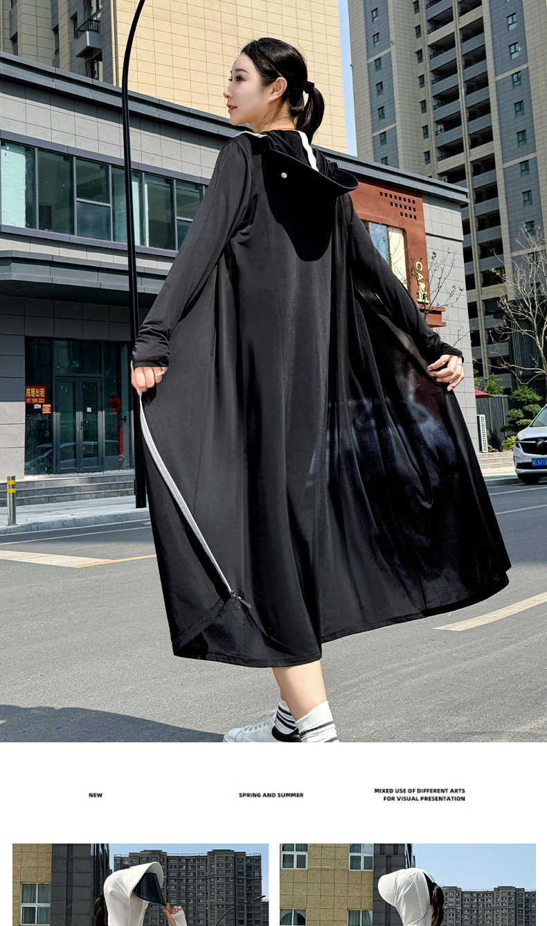 冰丝加长款全身防晒衣服衫连帽厂家批发新款防紫外线透气夏季薄款