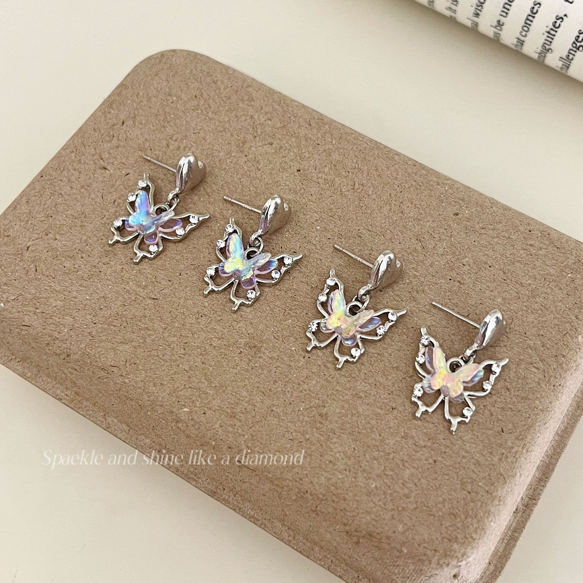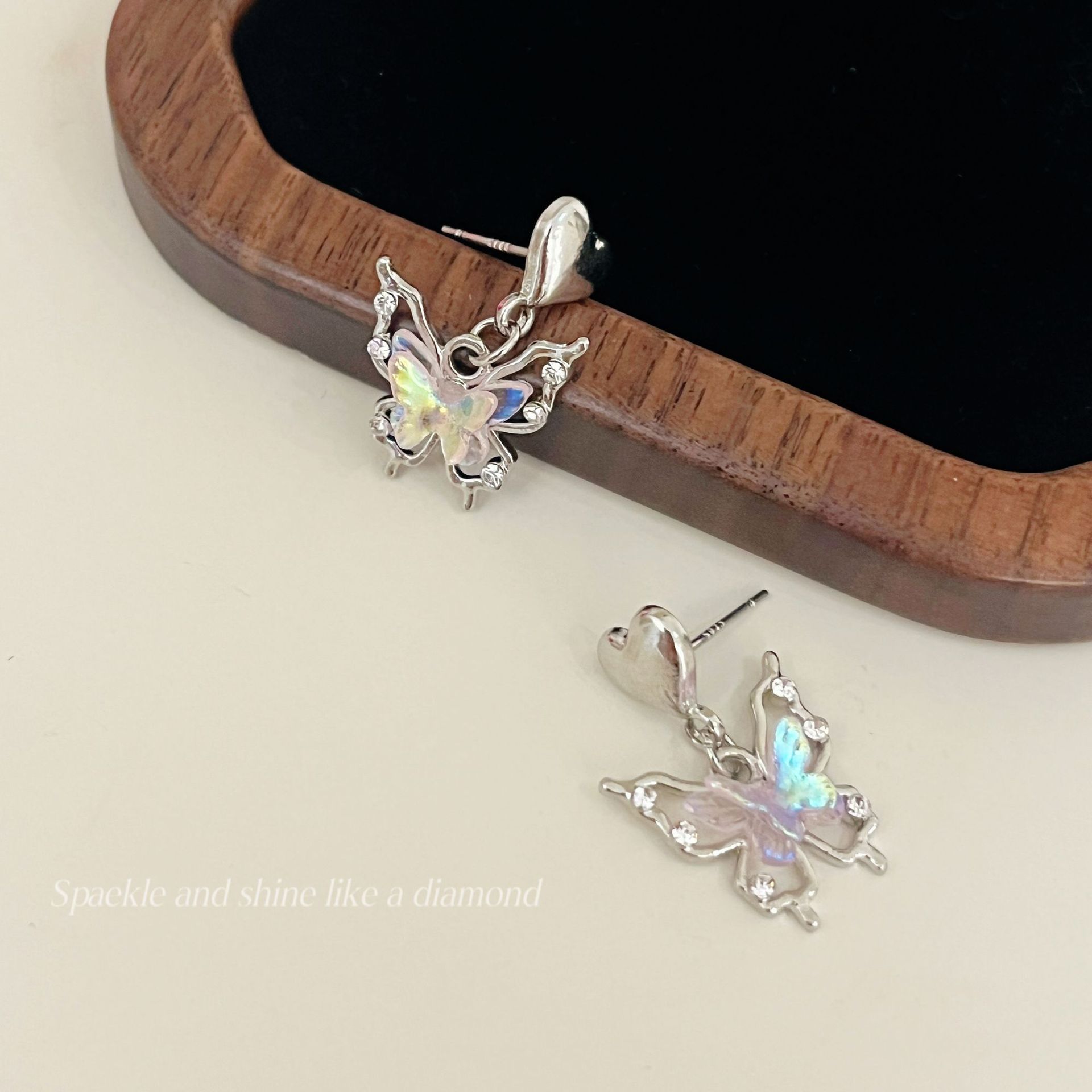 爱心仙气极光双层蝴蝶耳钉甜酷小众设计清冷感耳环气质百搭耳饰