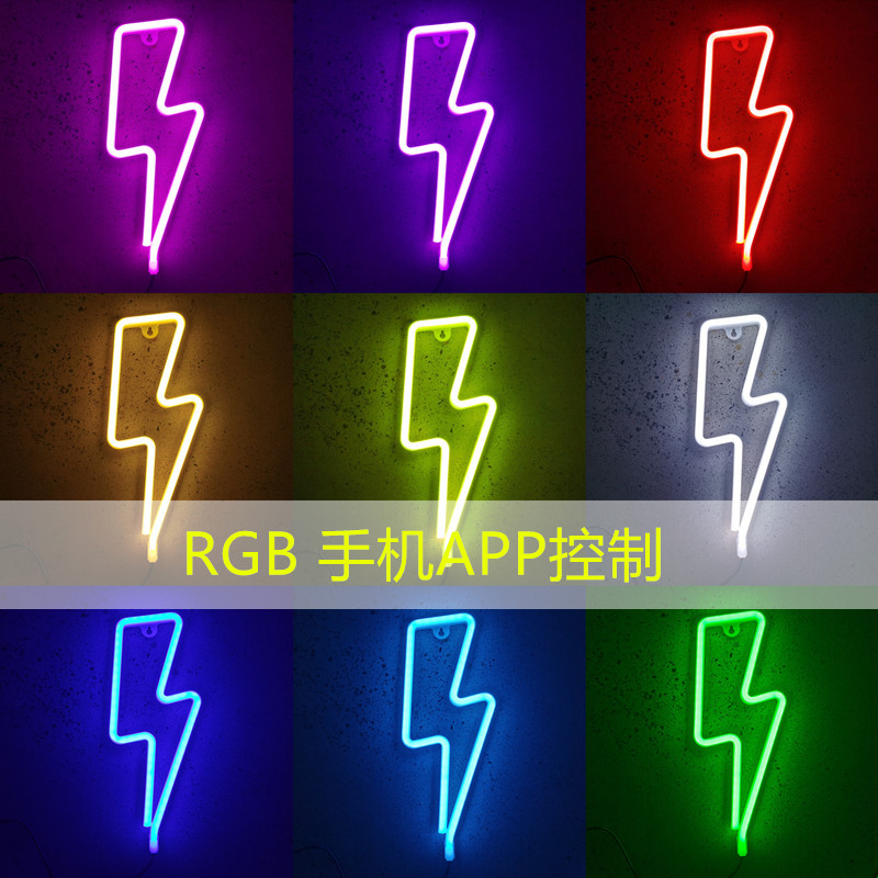 现货LED闪电霓虹灯造型灯彩灯网红氛围灯房间装饰圣诞节卧室布置