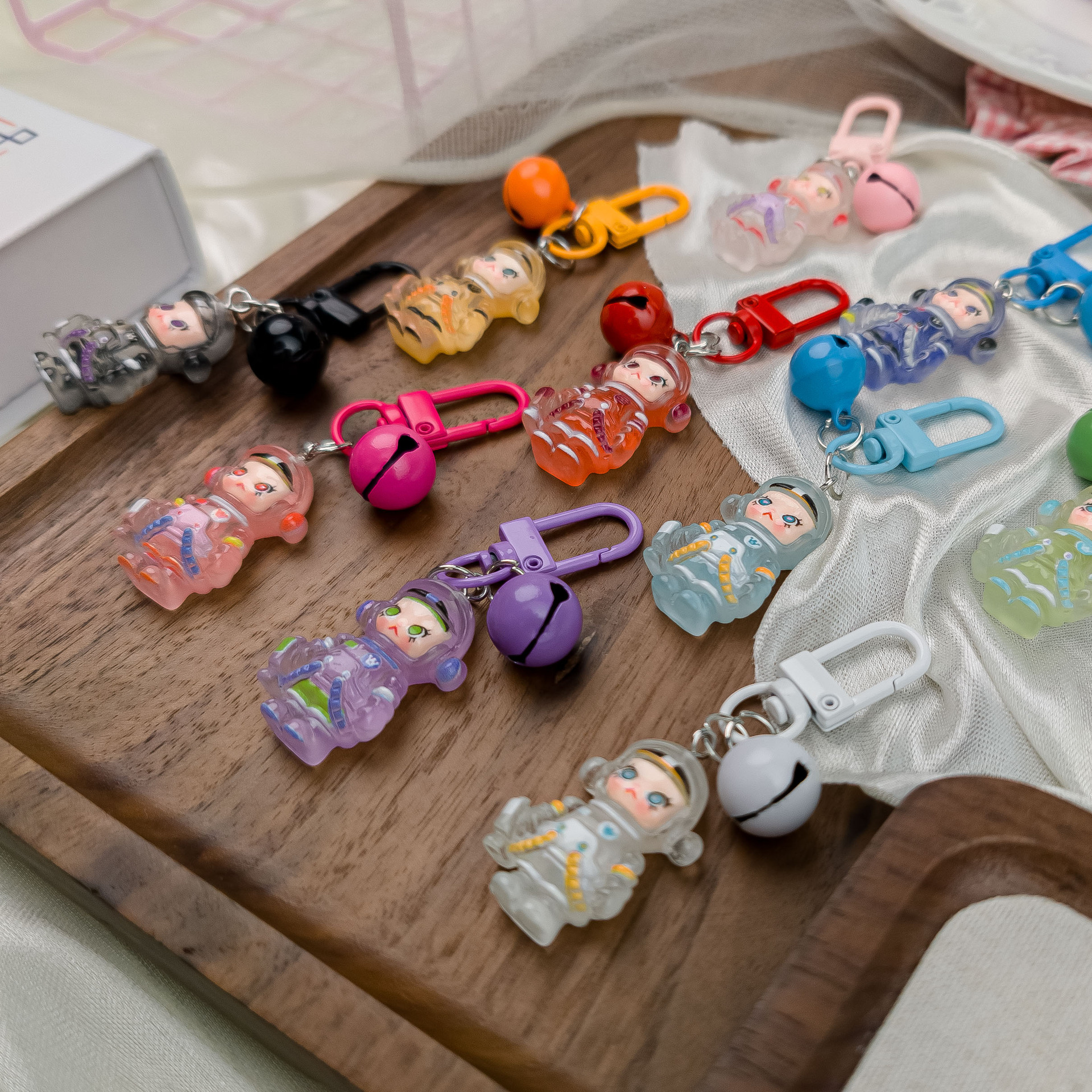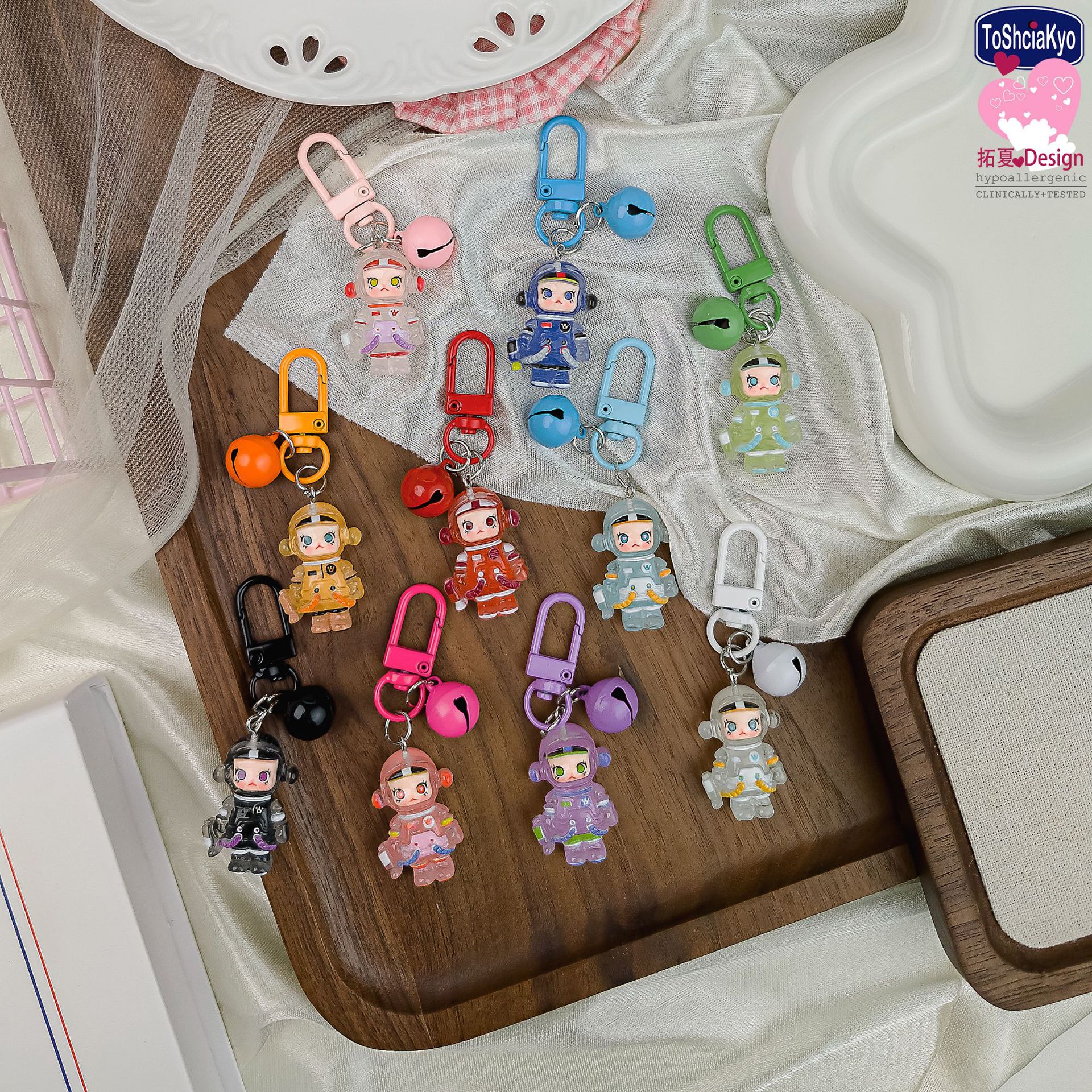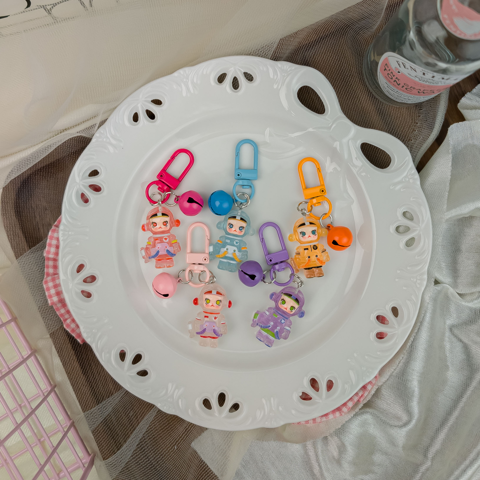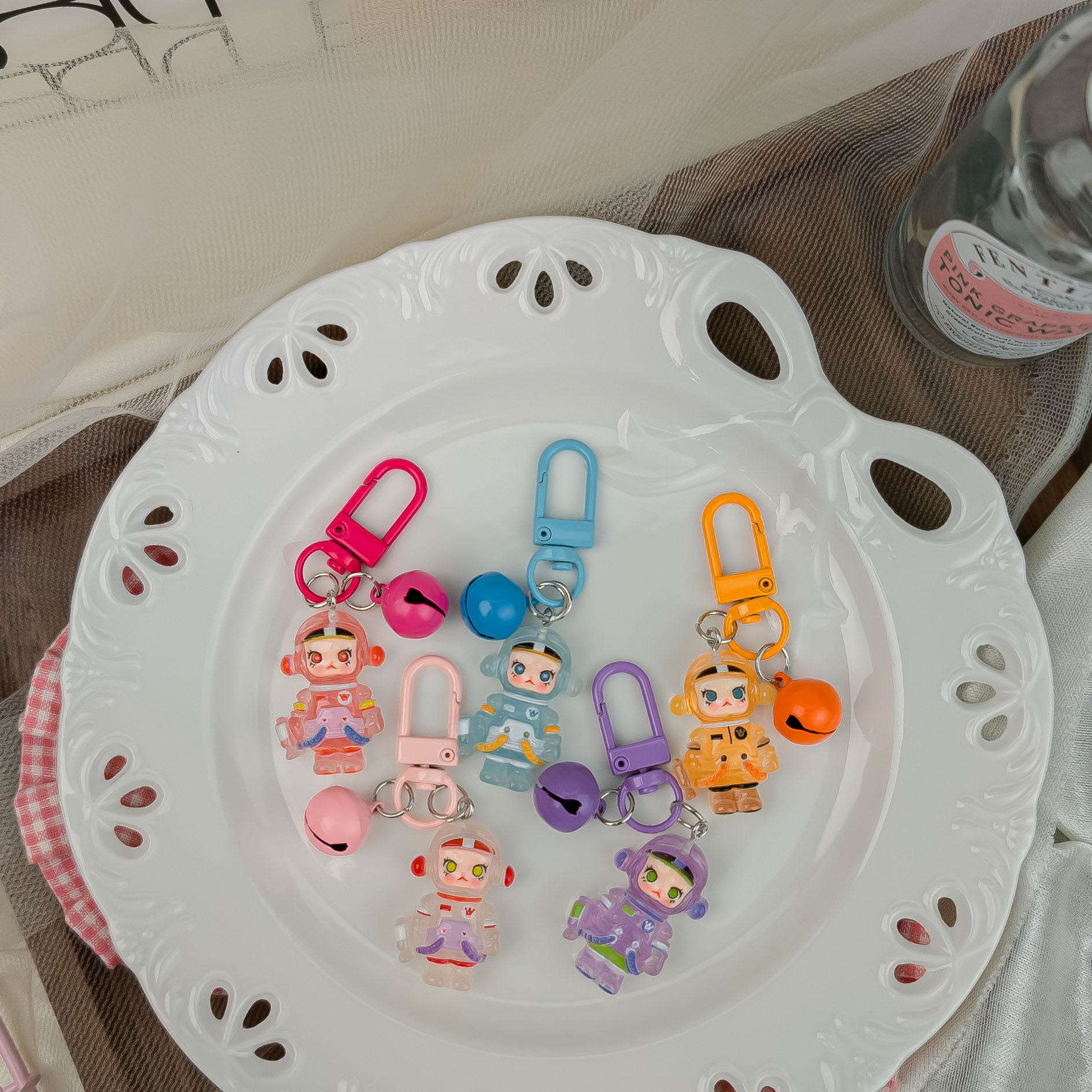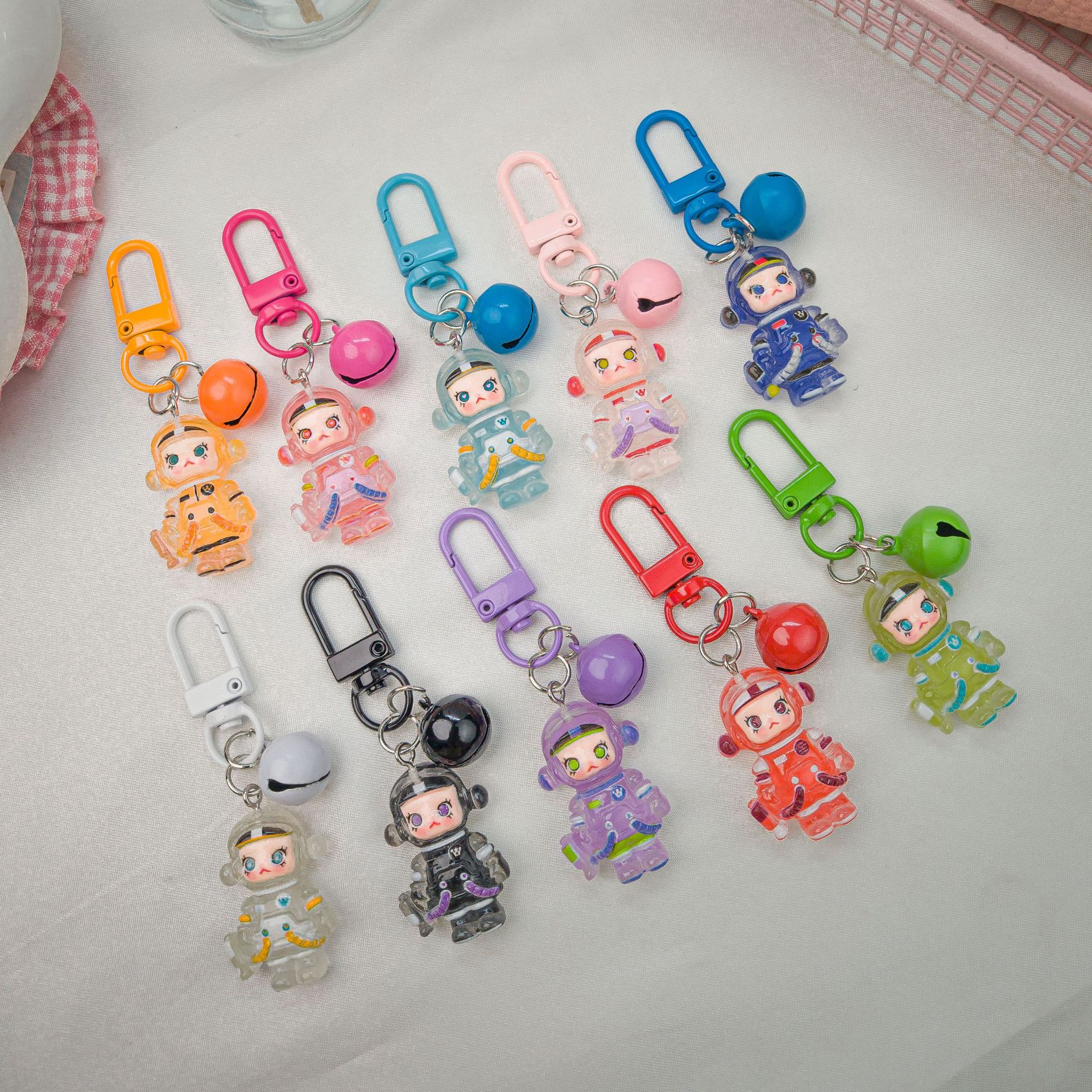 彩门铃I99泡泡玛特透明机器人书包笔袋树脂钥匙扣挂件学生饰品爱