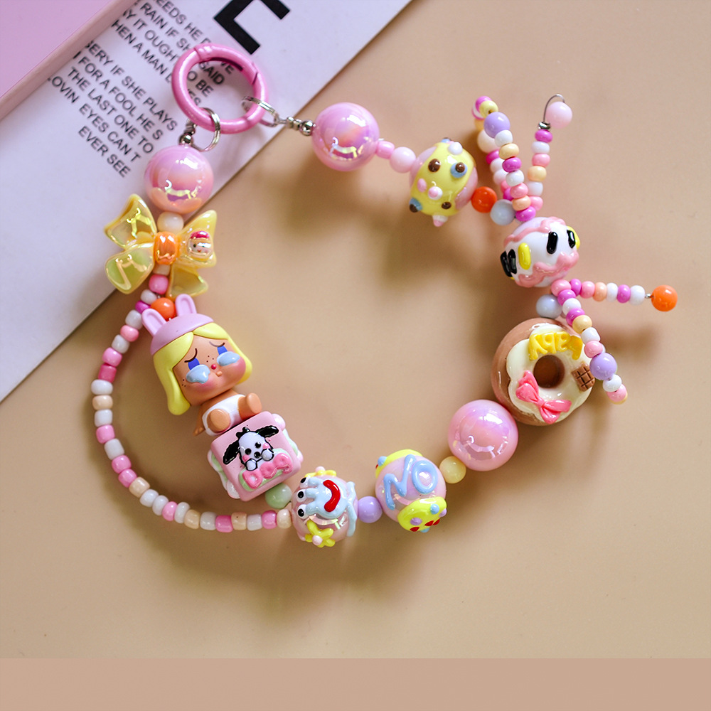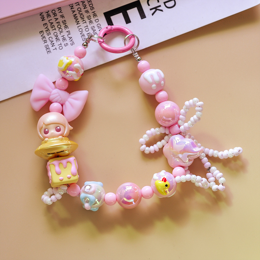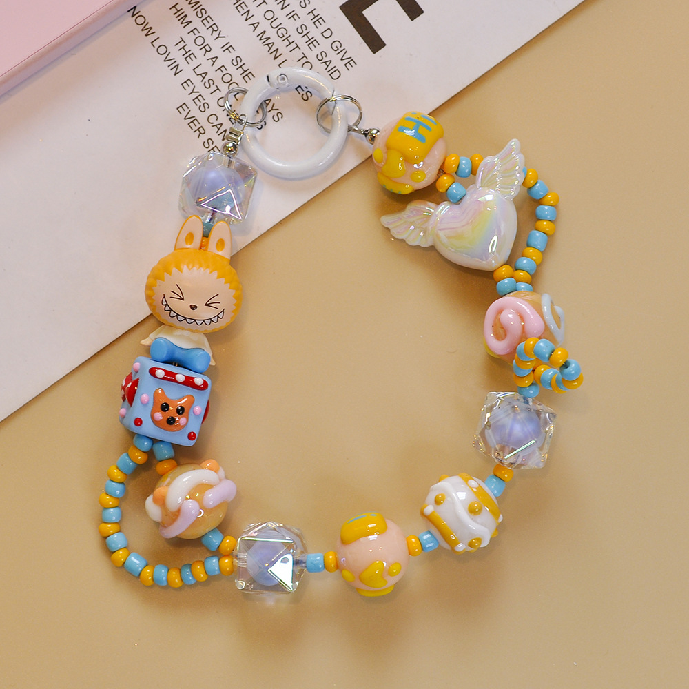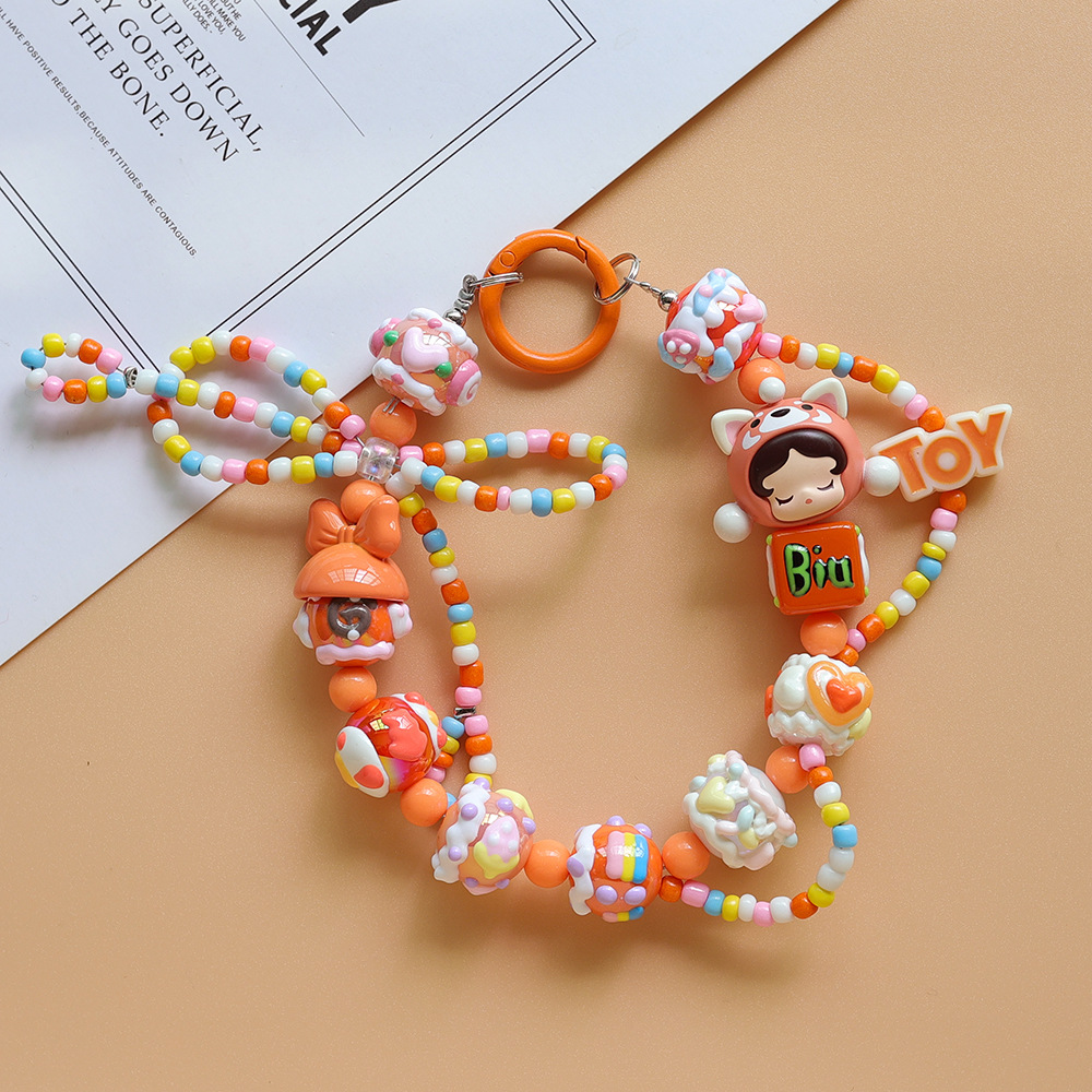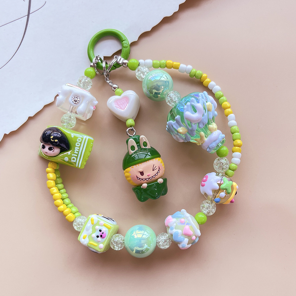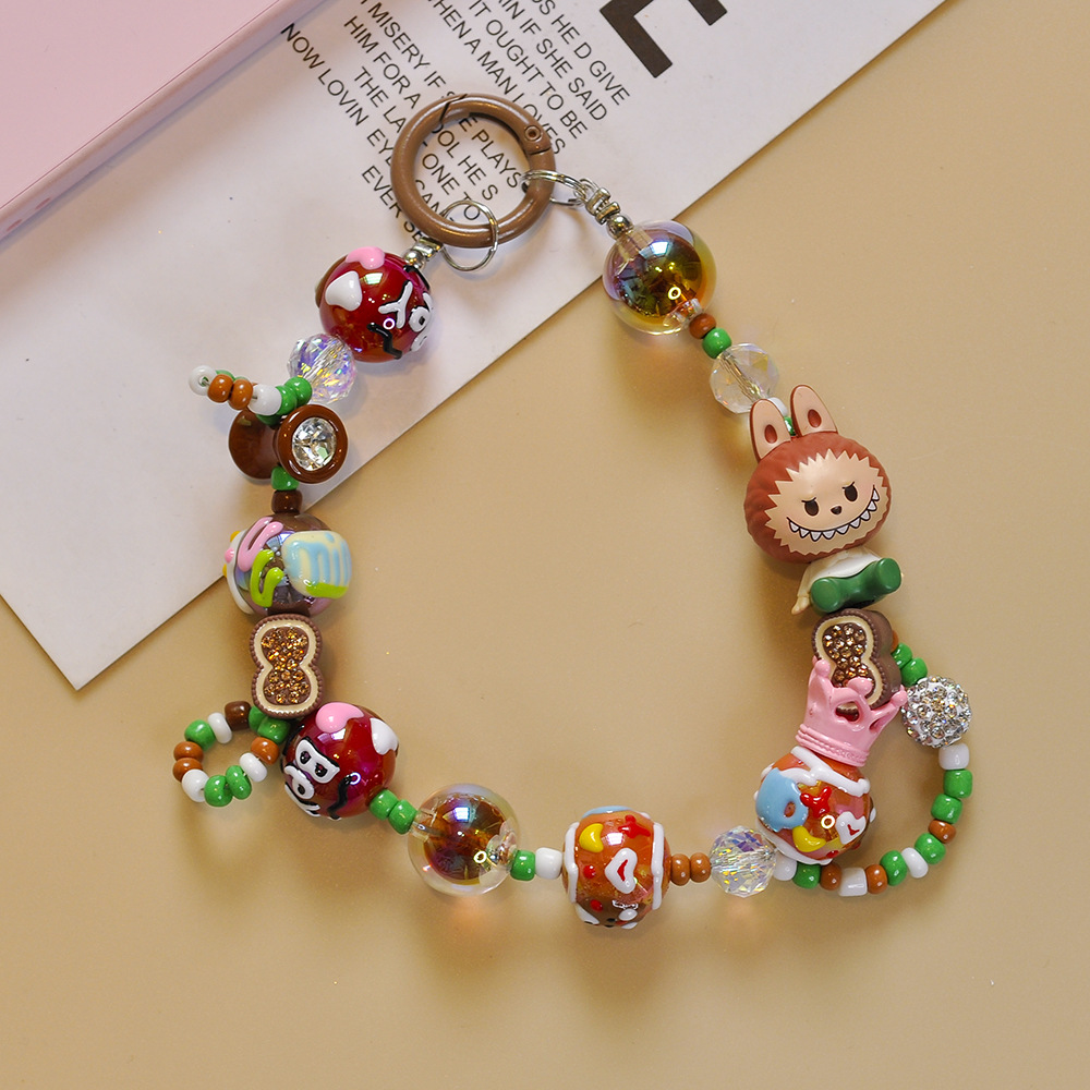 泡泡玛特萌粒坐姿卡通串珠手机链彩色手绘珠钥匙扣包包挂件饰品潮