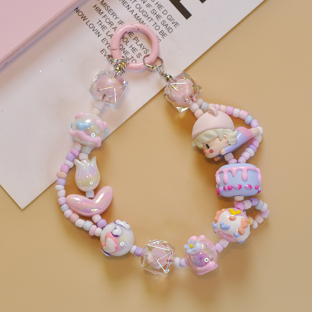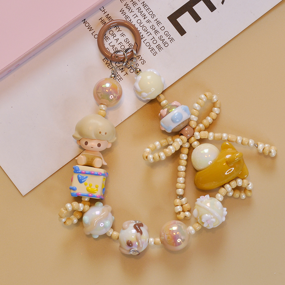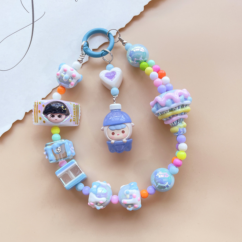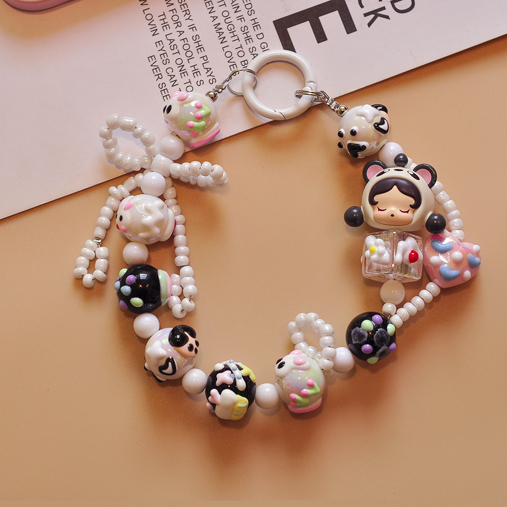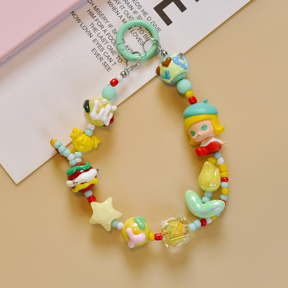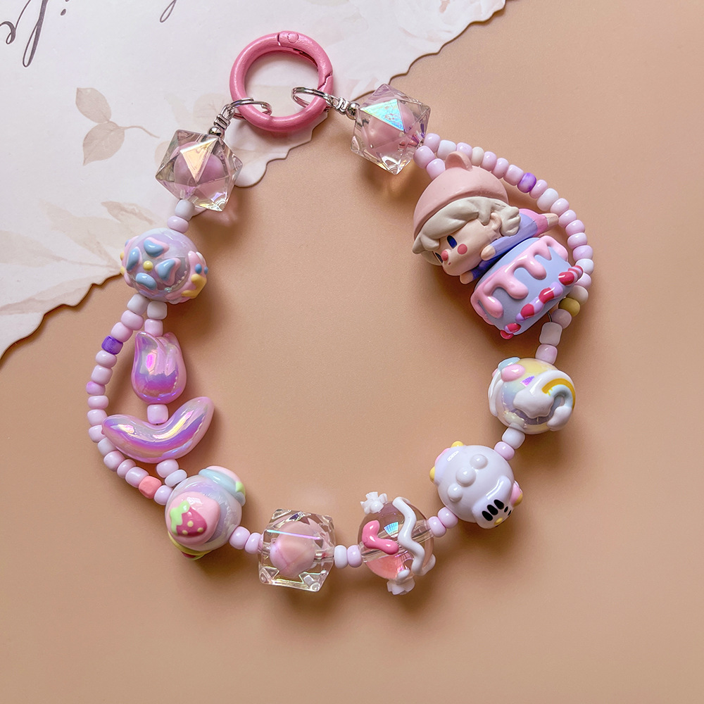 泡泡玛特萌粒坐姿卡通串珠手机链彩色手绘珠钥匙扣包包挂件饰品潮