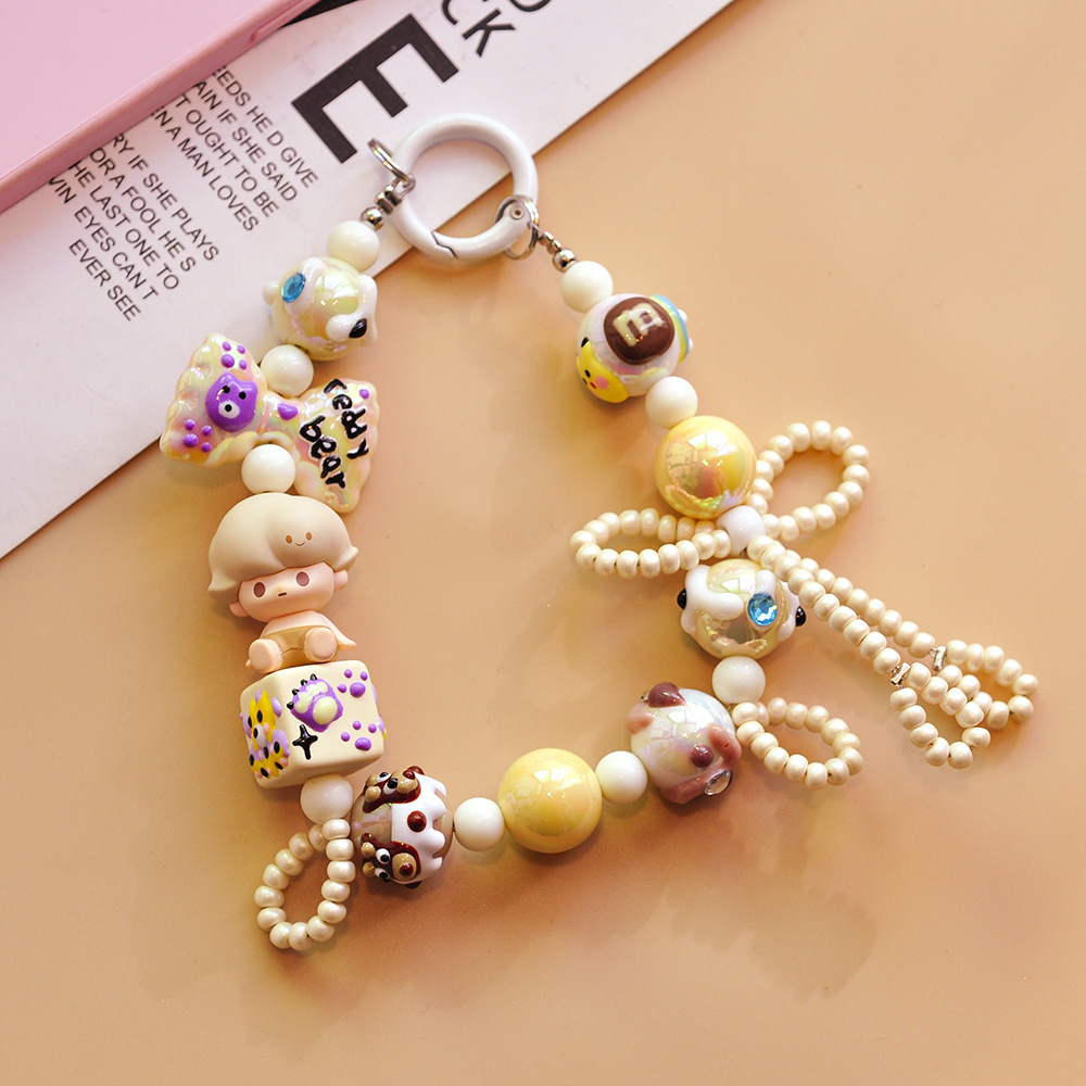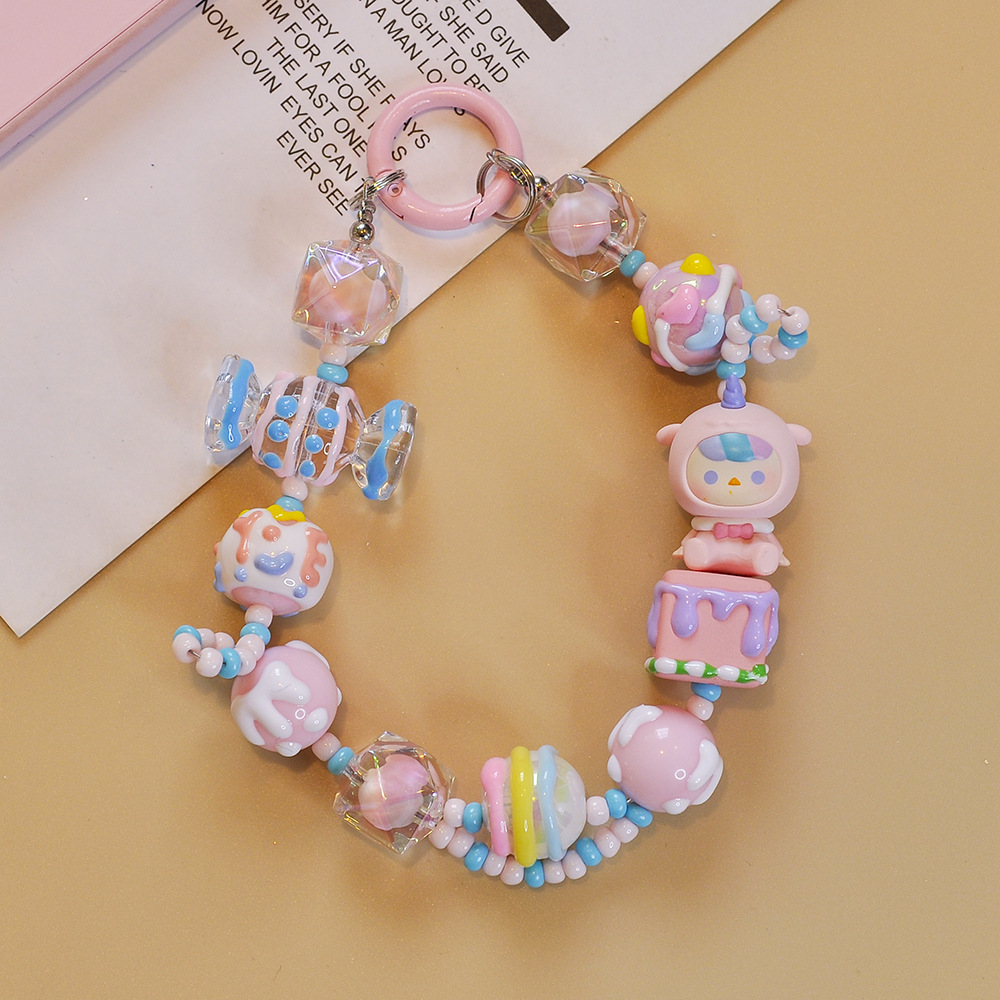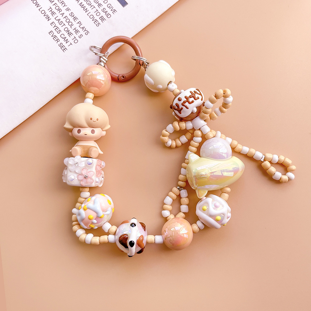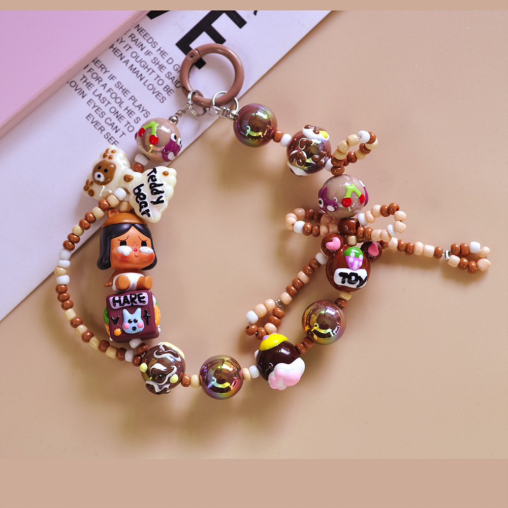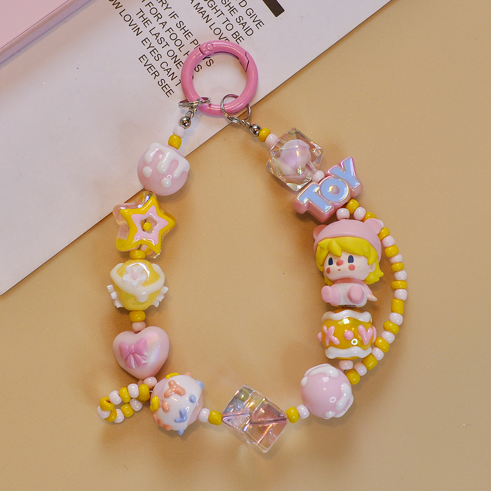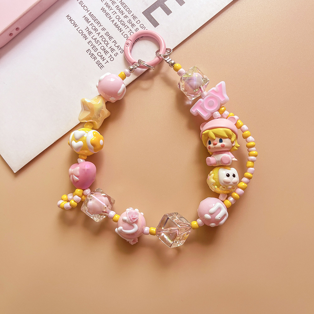 泡泡玛特萌粒坐姿卡通串珠手机链彩色手绘珠钥匙扣包包挂件饰品潮