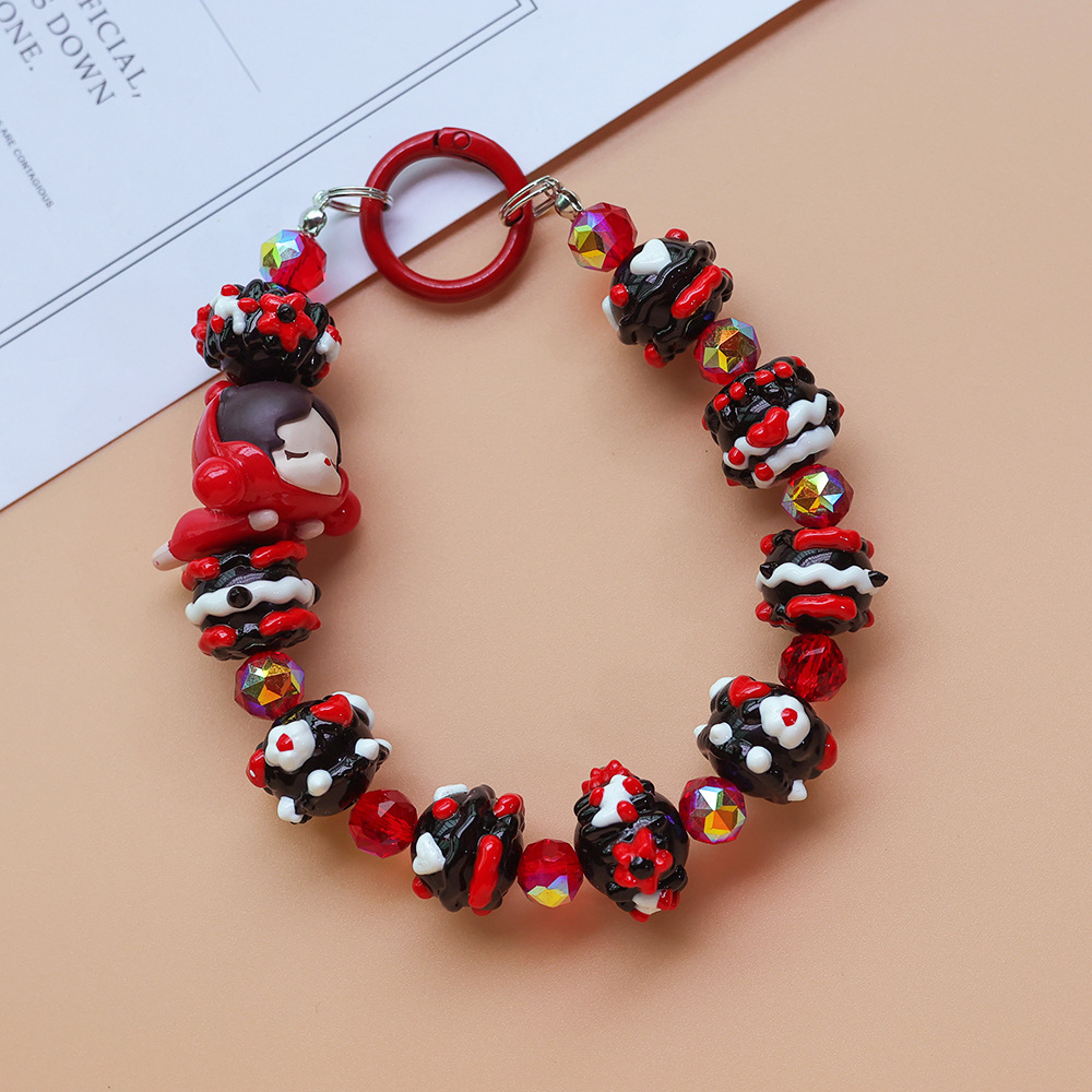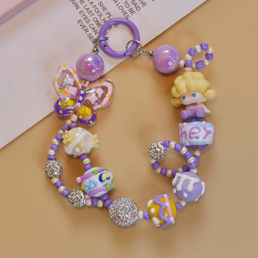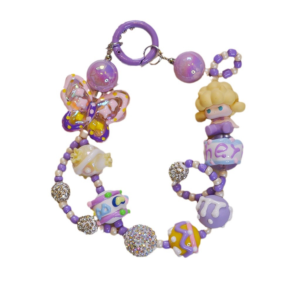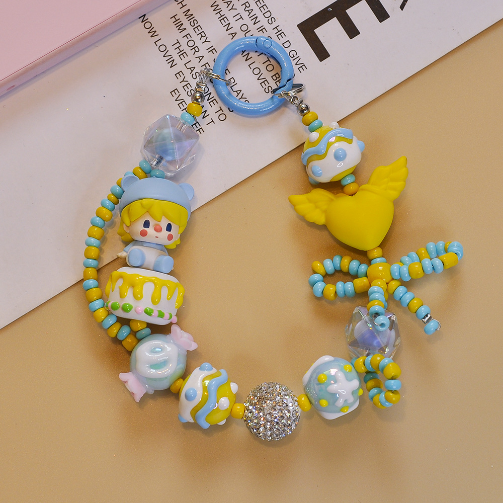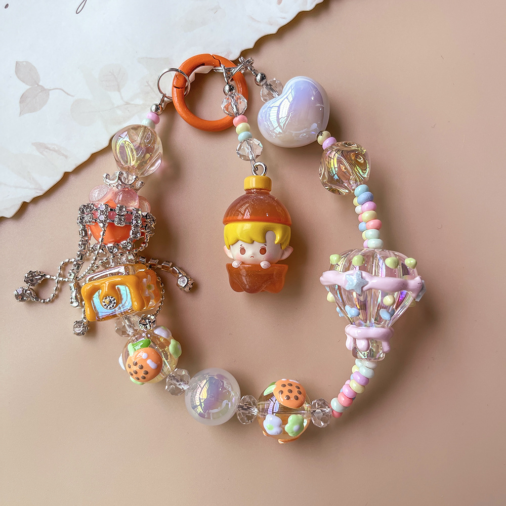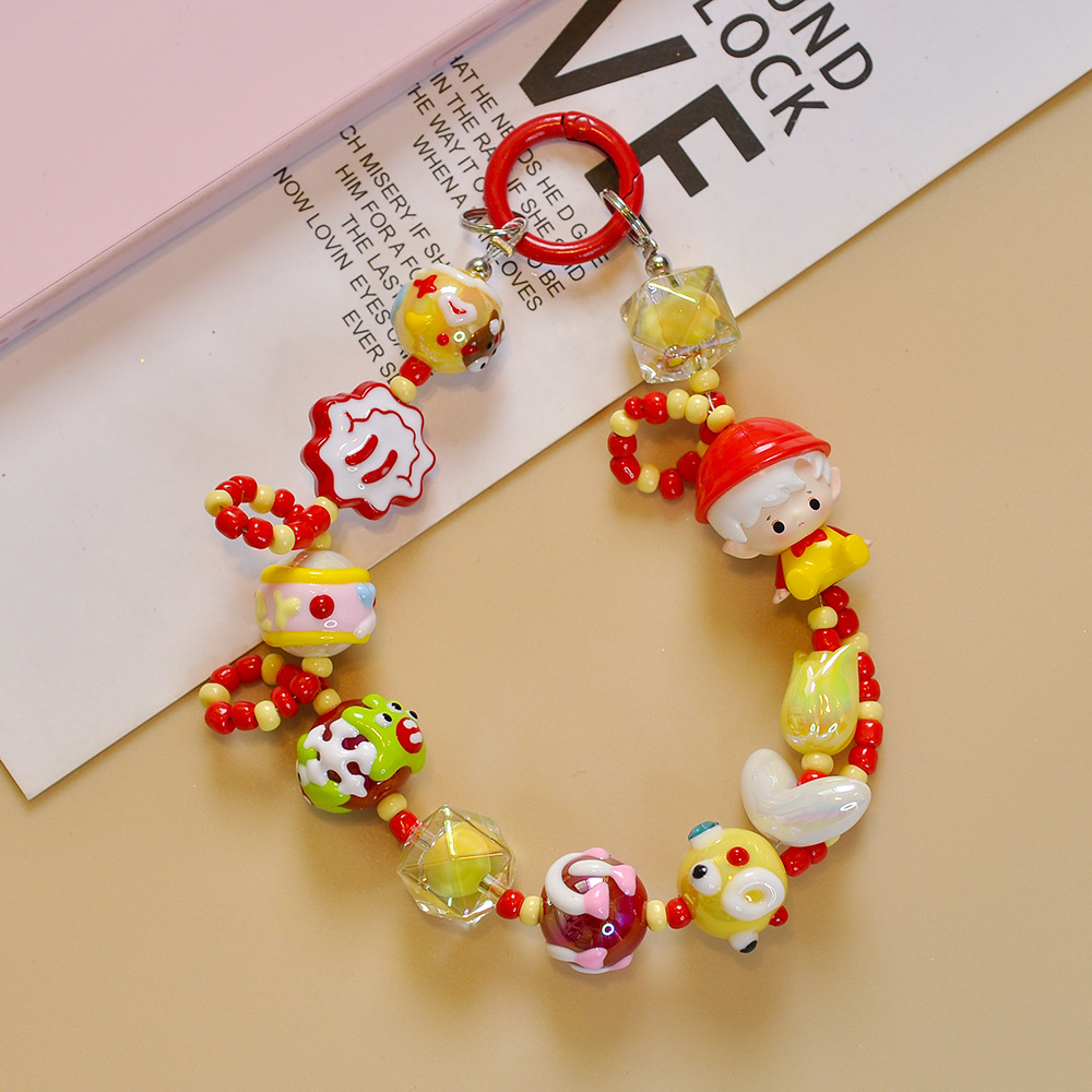 泡泡玛特萌粒坐姿卡通串珠手机链彩色手绘珠钥匙扣包包挂件饰品潮