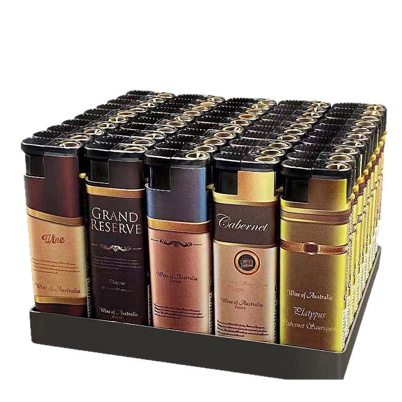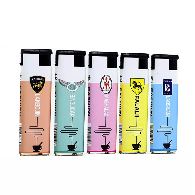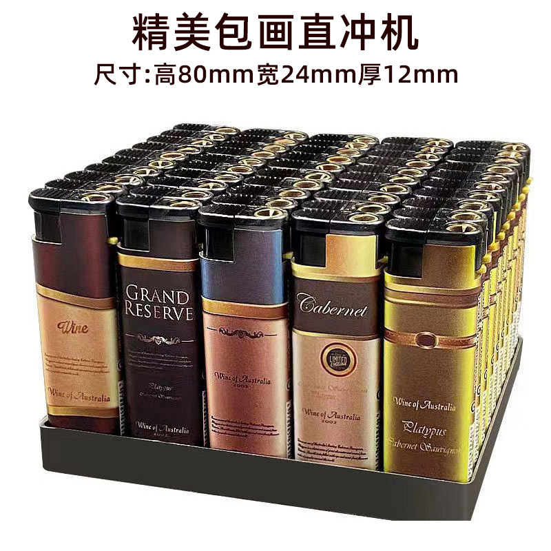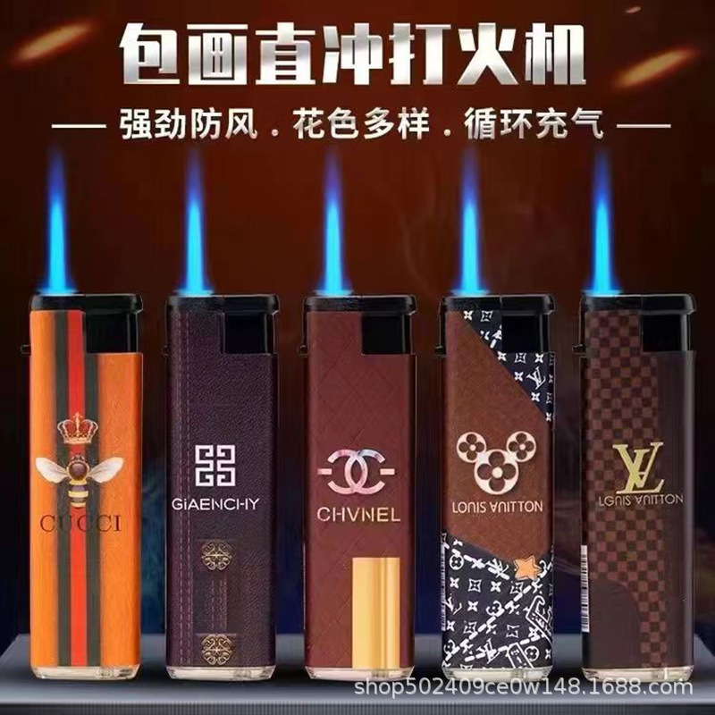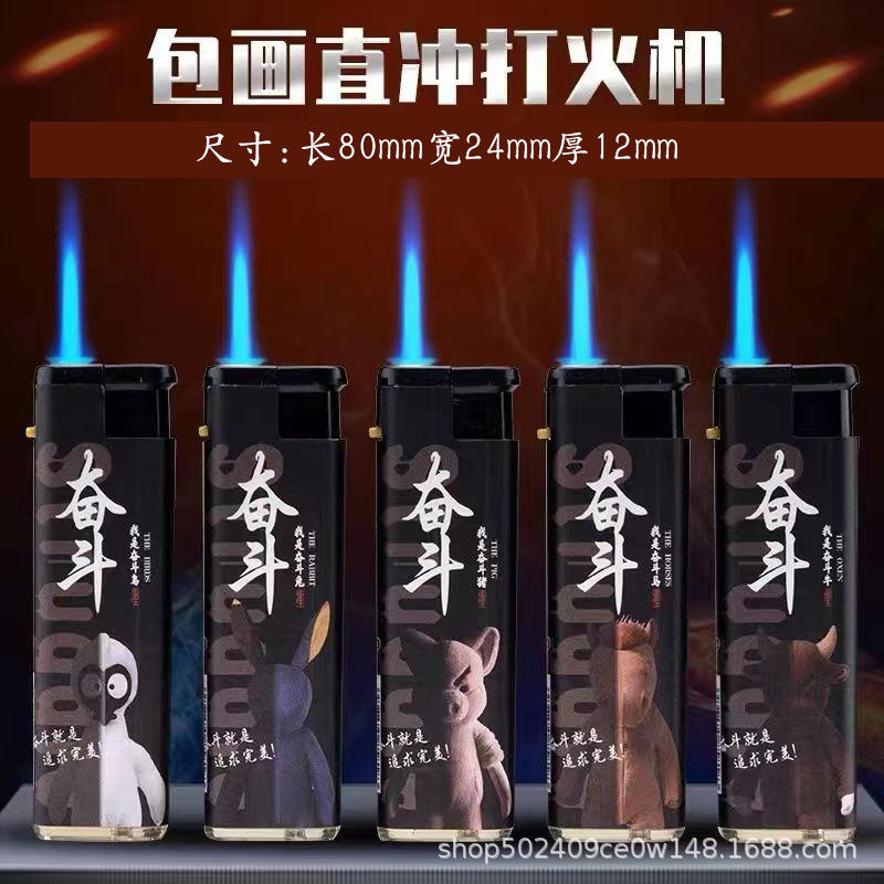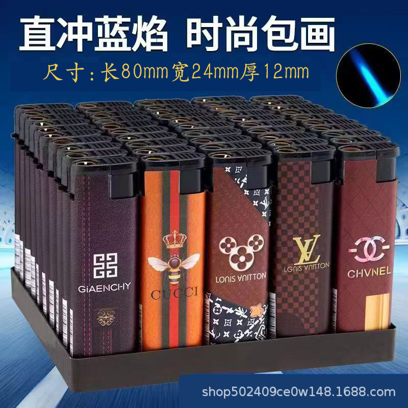 厂家批发防风打火机蓝焰直冲包画超市家用50支加厚创意电子打火机