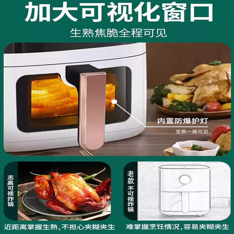 新款免翻面空气炸锅家用5l多功能智能全自动大容量可视电炸锅批发