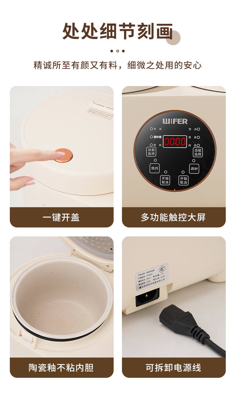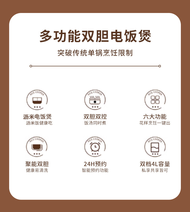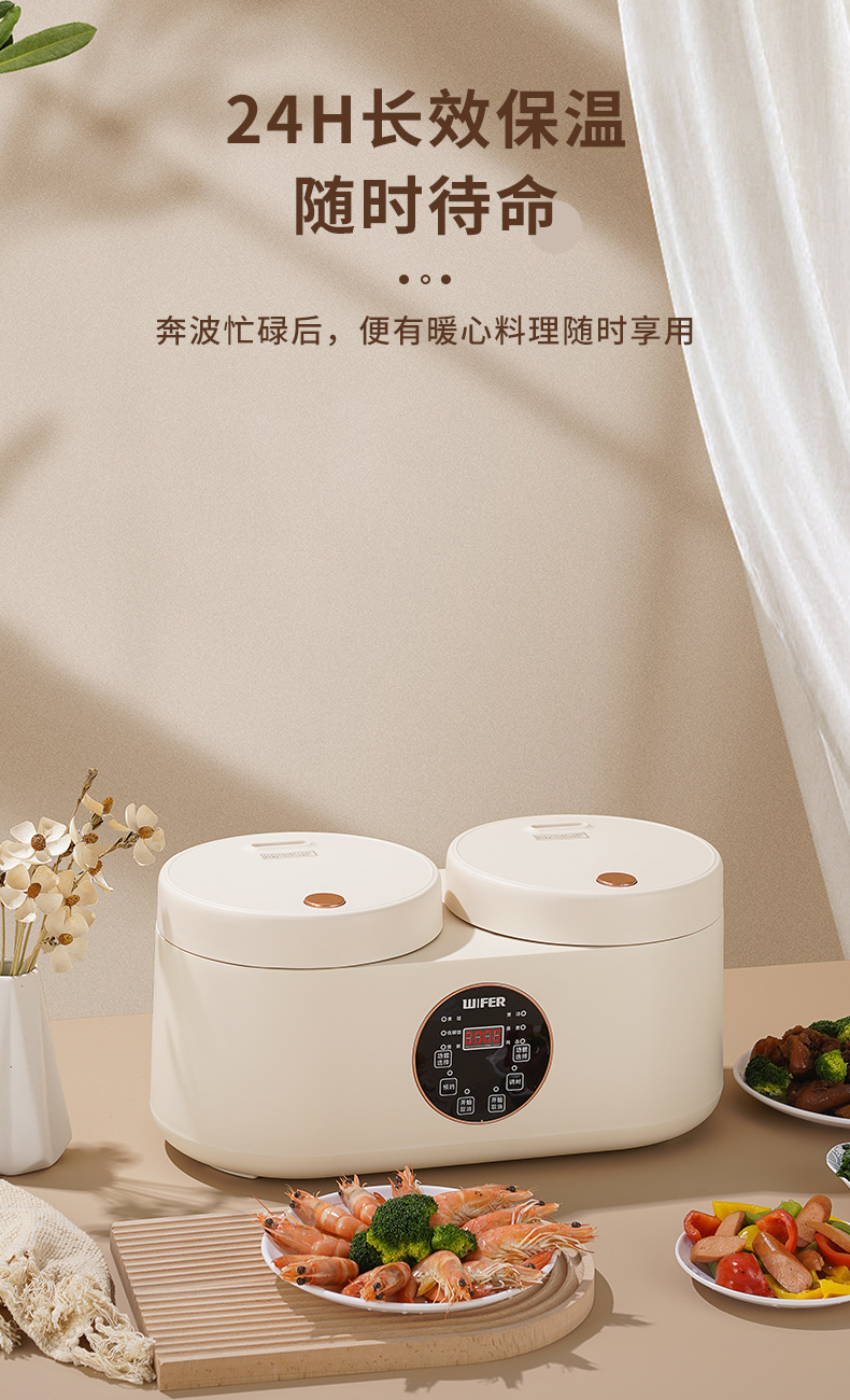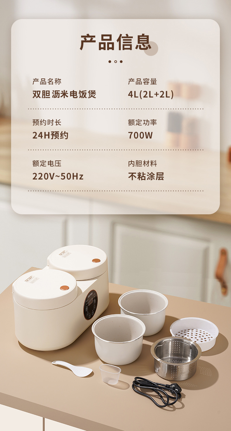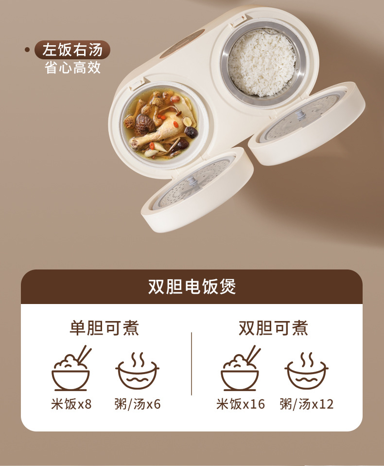 智能触屏双胆电饭煲4L大容量一体家用多功能双控二合一鸳鸯饭煲