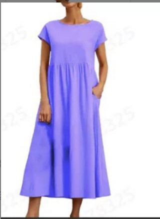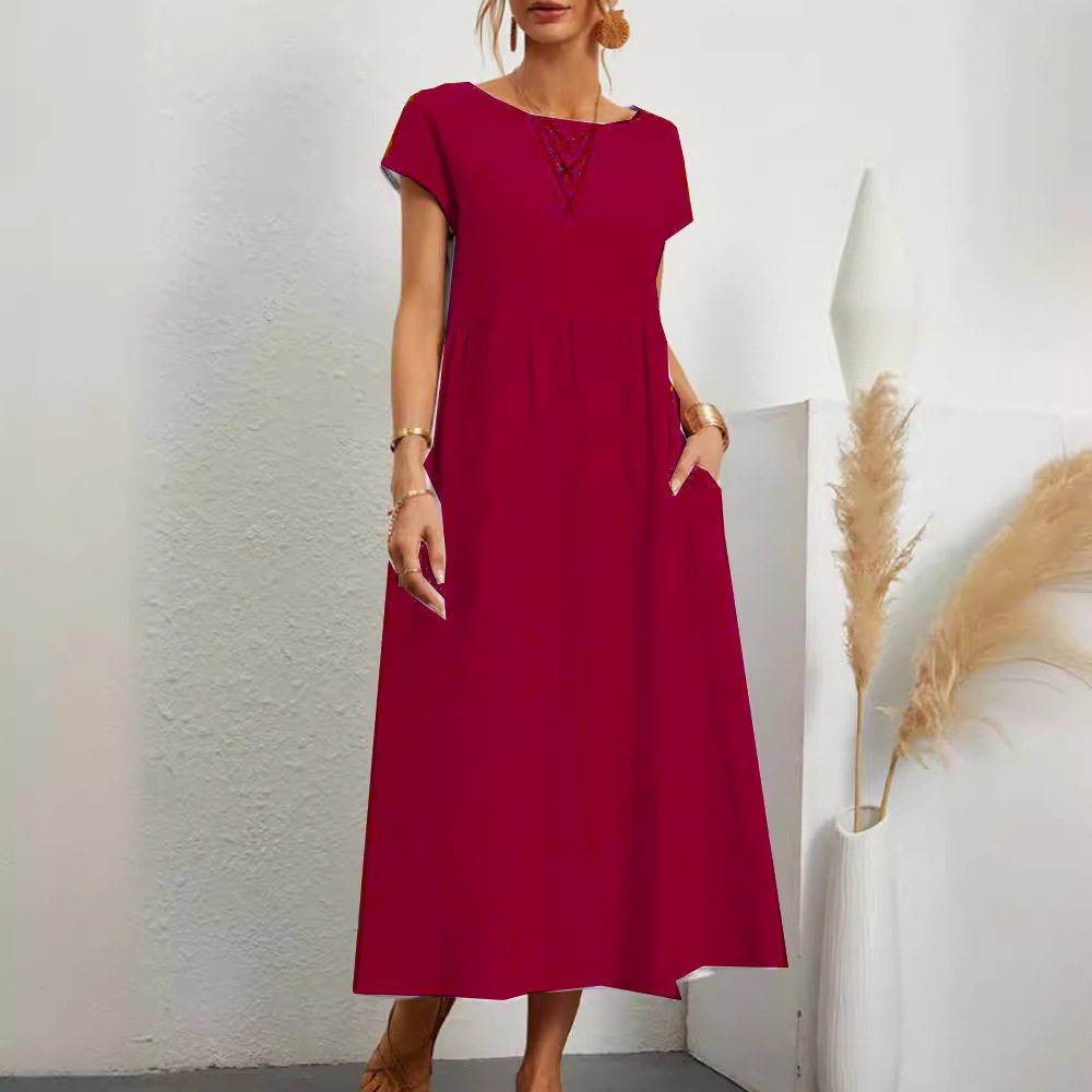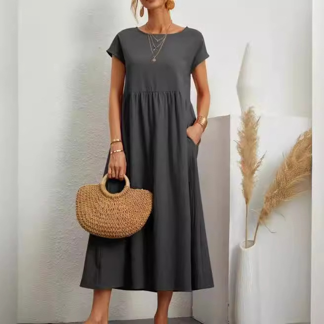 亚马逊 速卖通 2024ebay欧美纯色无袖宽松棉麻插口袋 连衣裙 现货