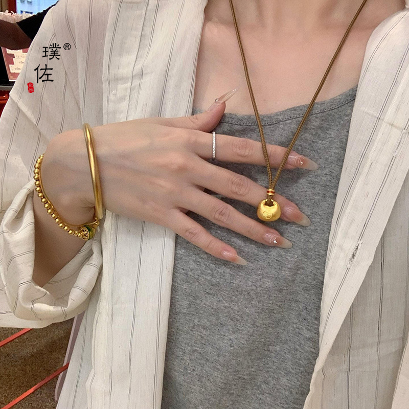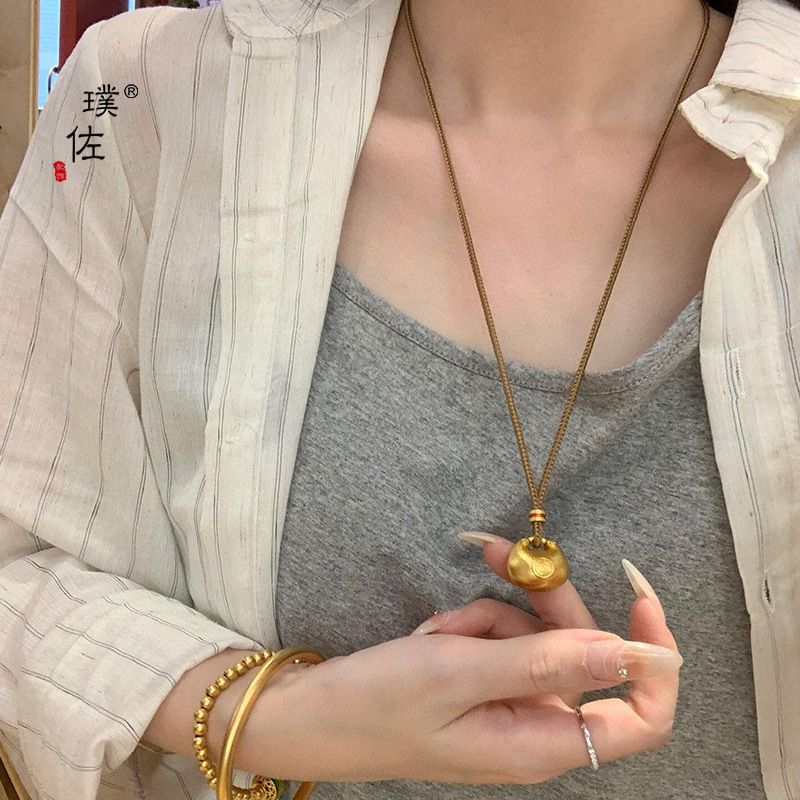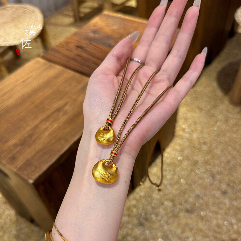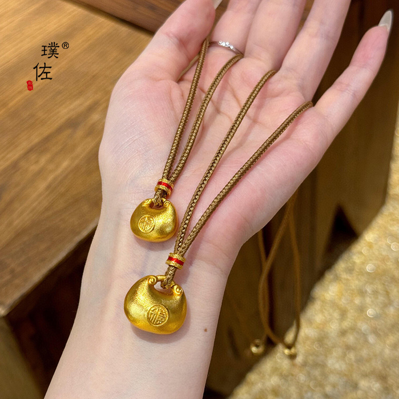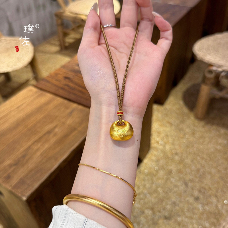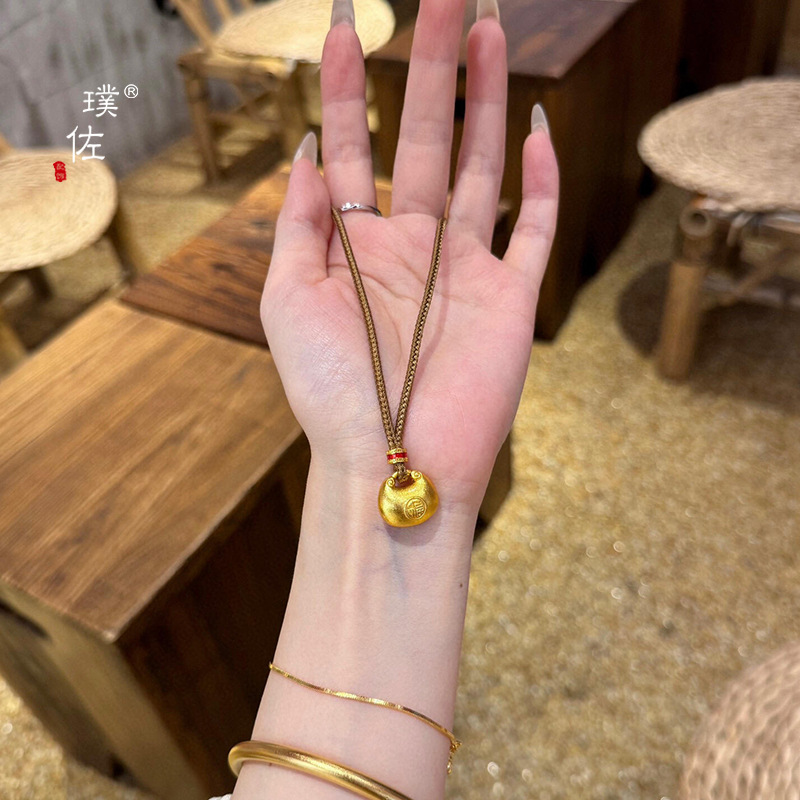金店同款沙金福字小钱袋项链小胖福金坨吊坠锁包项链女