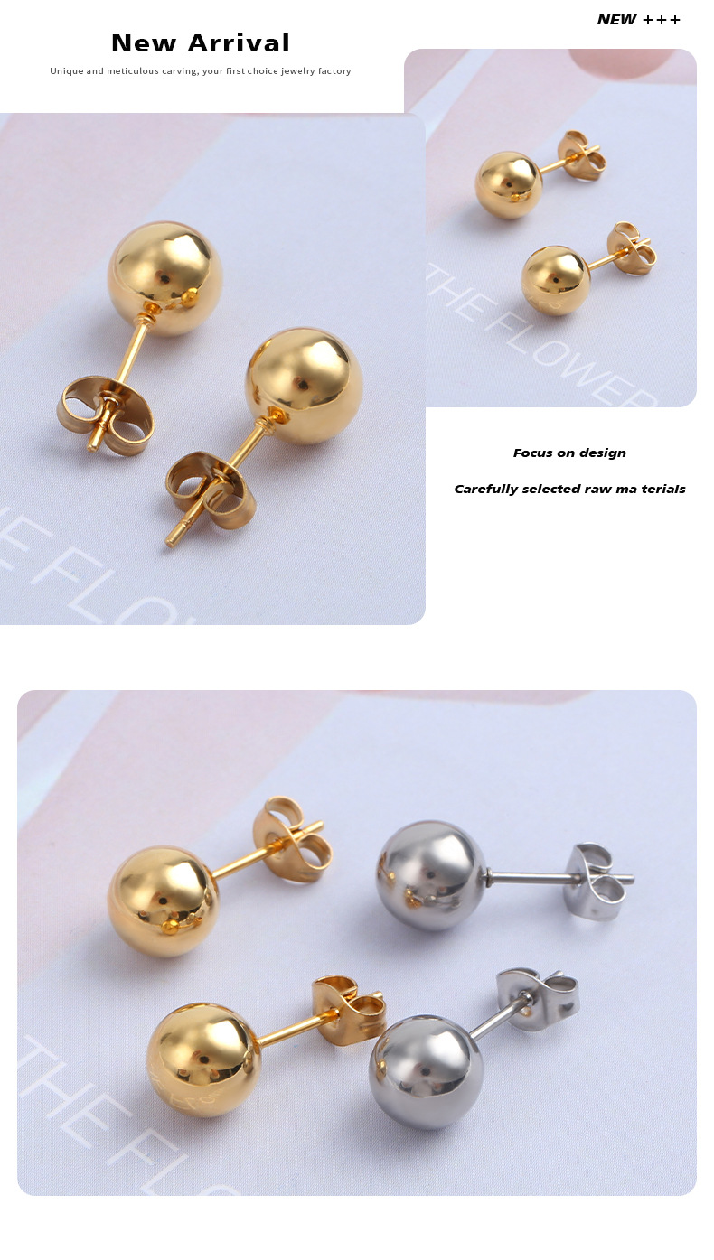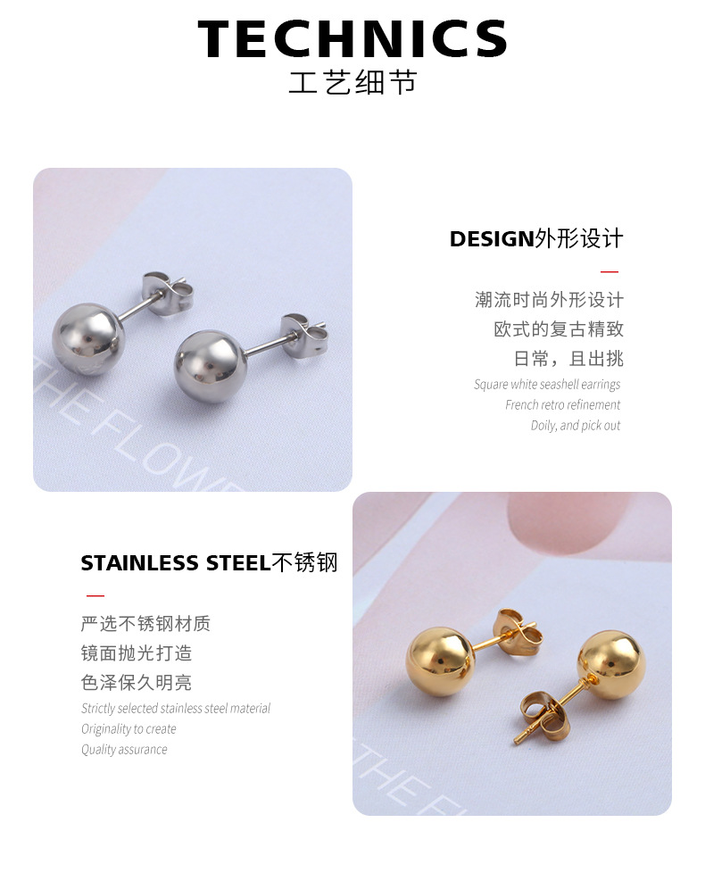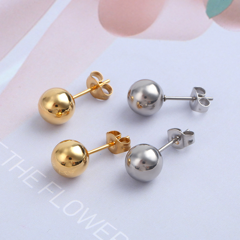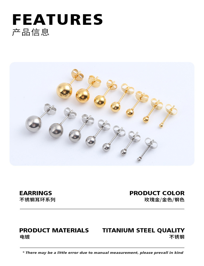 时尚情侣不锈钢圆珠耳钉欧美个性钛钢耳饰百搭不锈钢豆豆耳钉定制