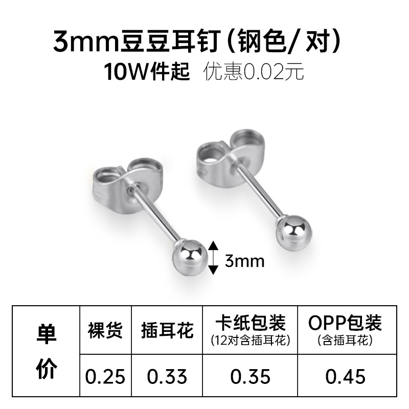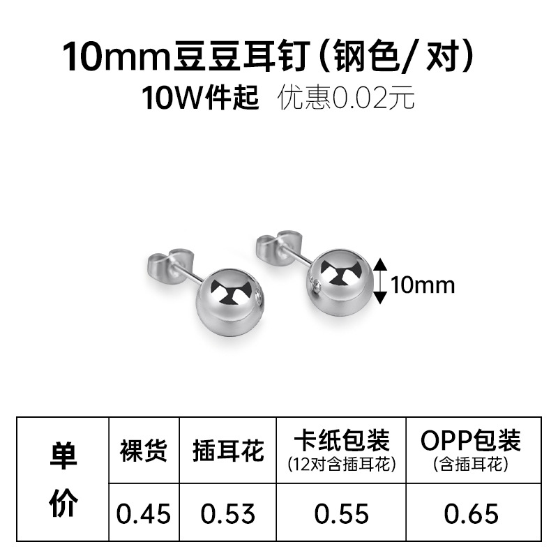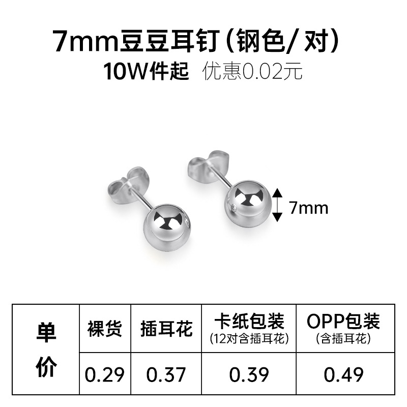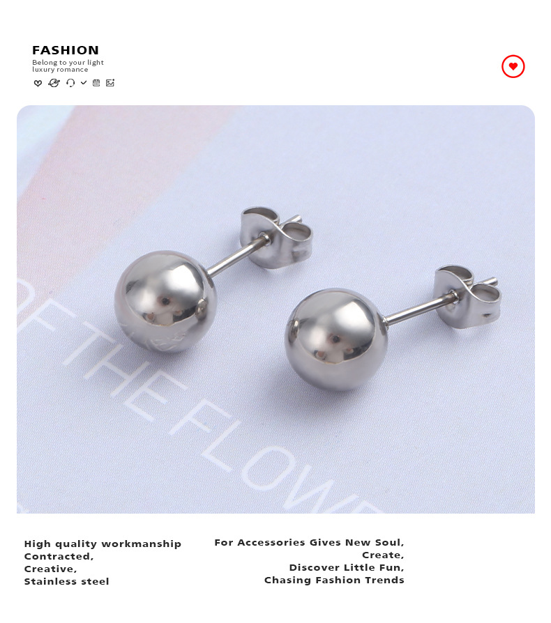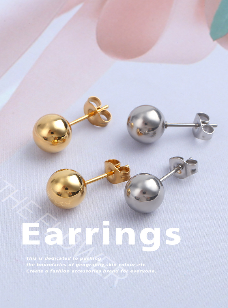 时尚情侣不锈钢圆珠耳钉欧美个性钛钢耳饰百搭不锈钢豆豆耳钉定制