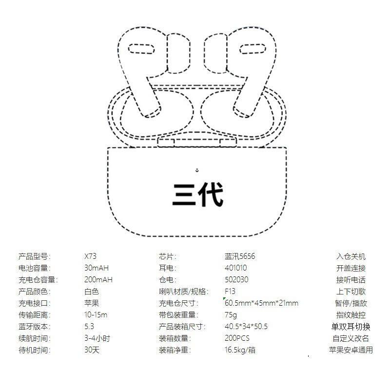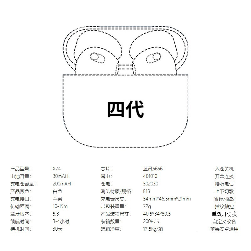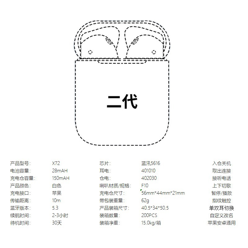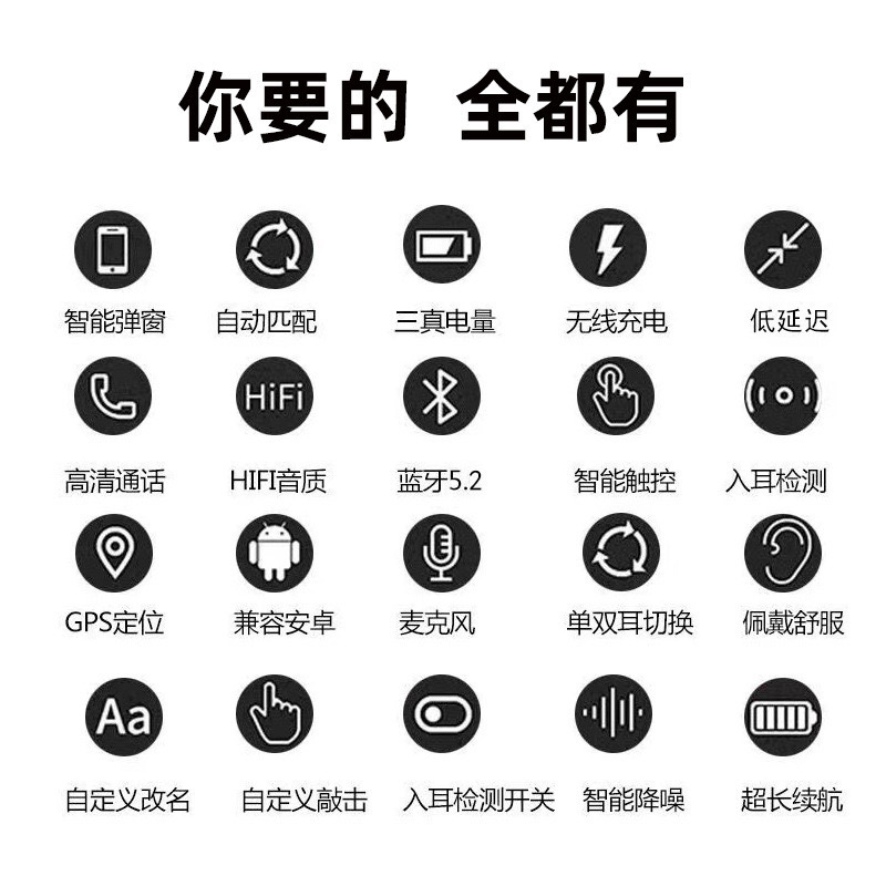 蓝牙耳机适用于苹果跨境专供华强北无线耳机超长续航安卓手机通用