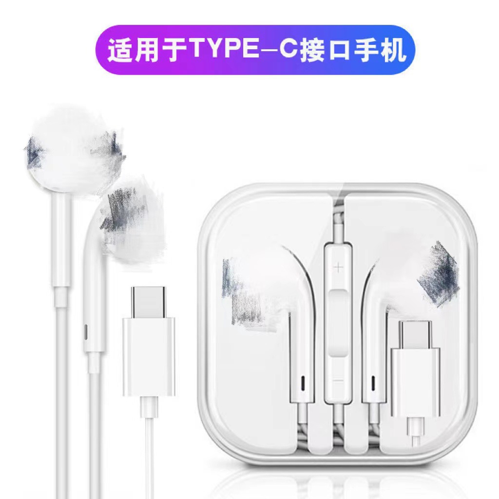 适用iPhone线控蓝牙耳机苹果/安卓/华为有线直插耳机type-c入耳式