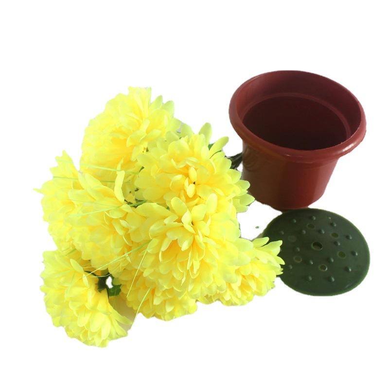 仿真花清明花假花龙祥菊12头花盆栽祭祀追思节日绢花花艺热卖摆件