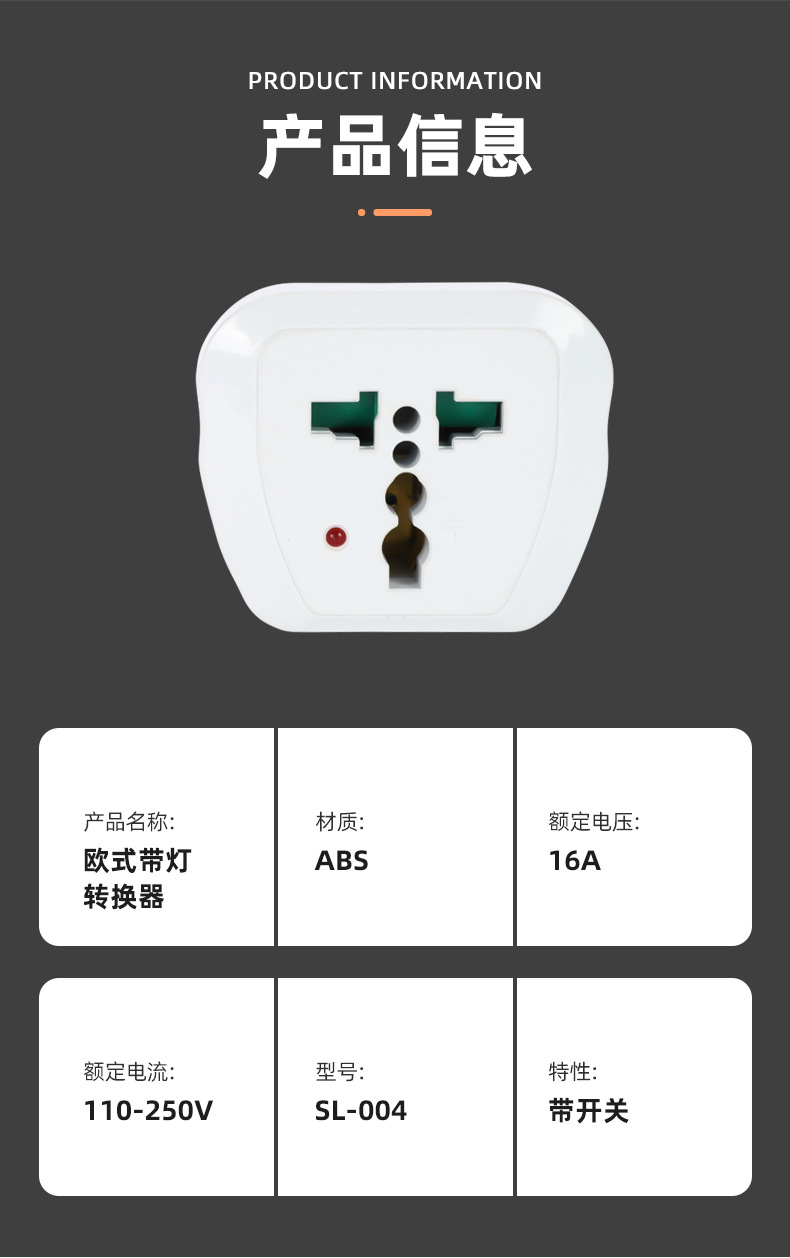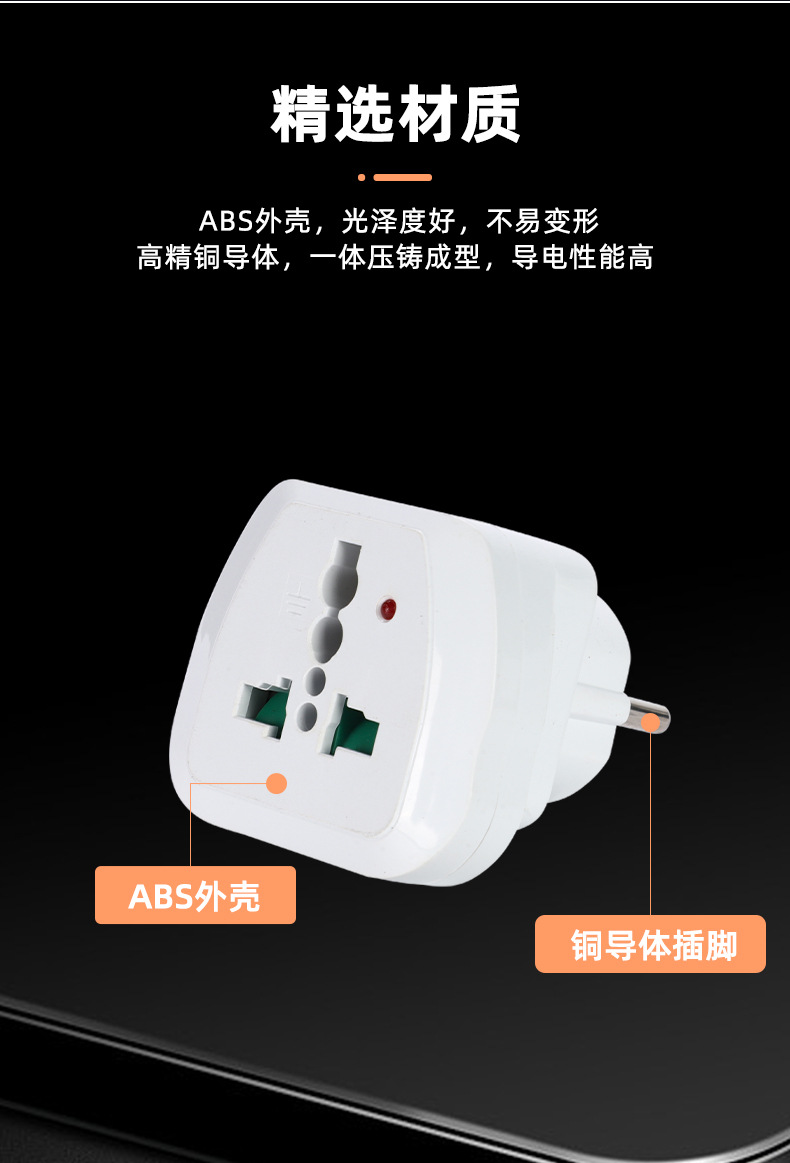 厂家供应 欧标带灯转换插头 欧规电源转接头 旅行家用商用转换头