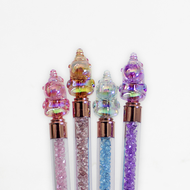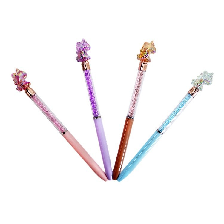 新款水晶独角兽造型圆珠笔 跨境外贸批发ins碎钻电镀uv时尚签字笔