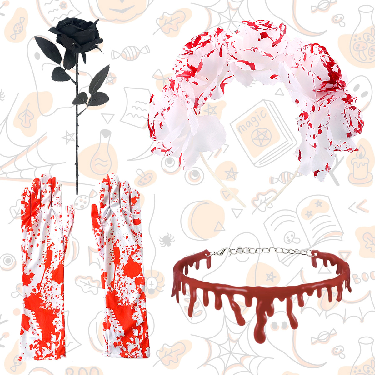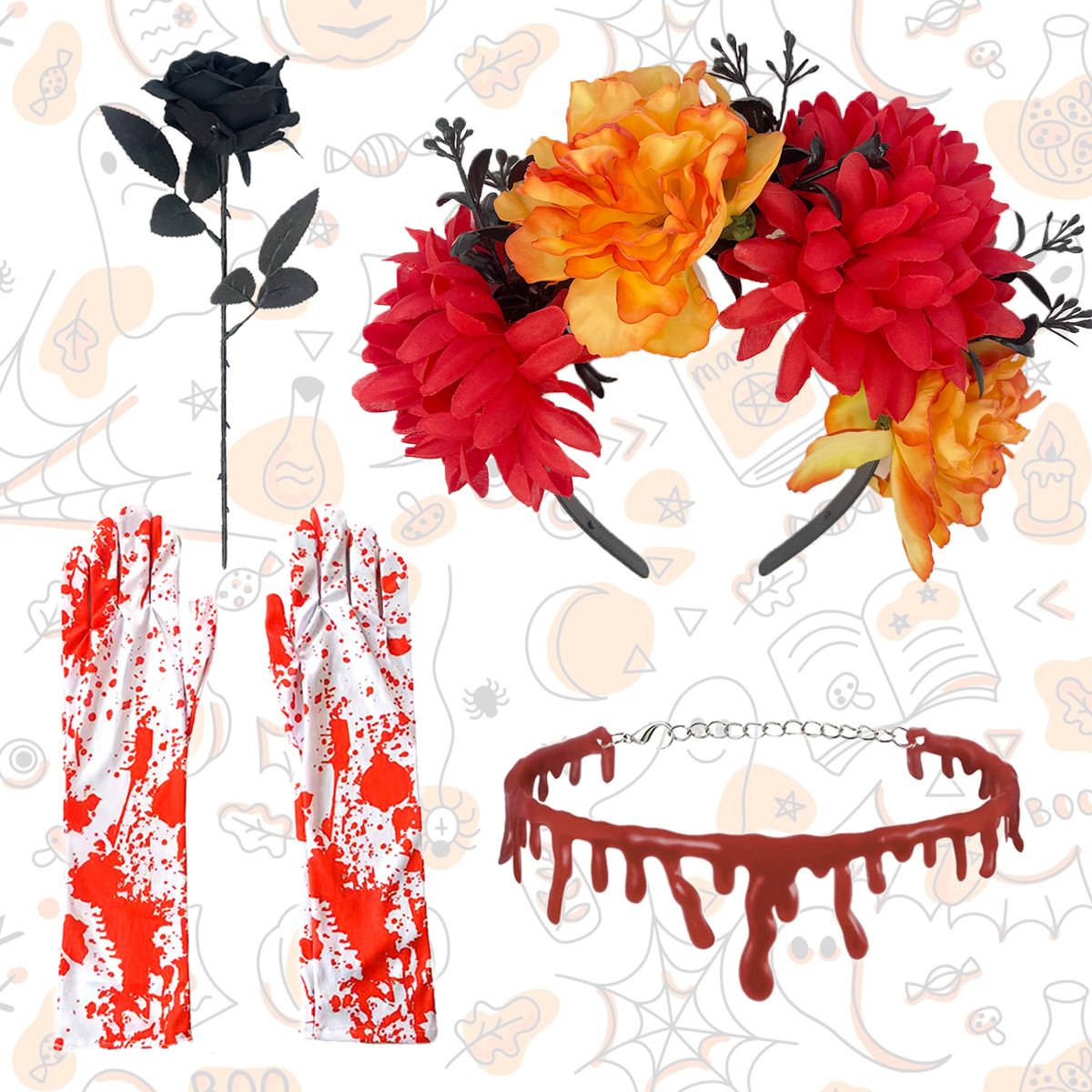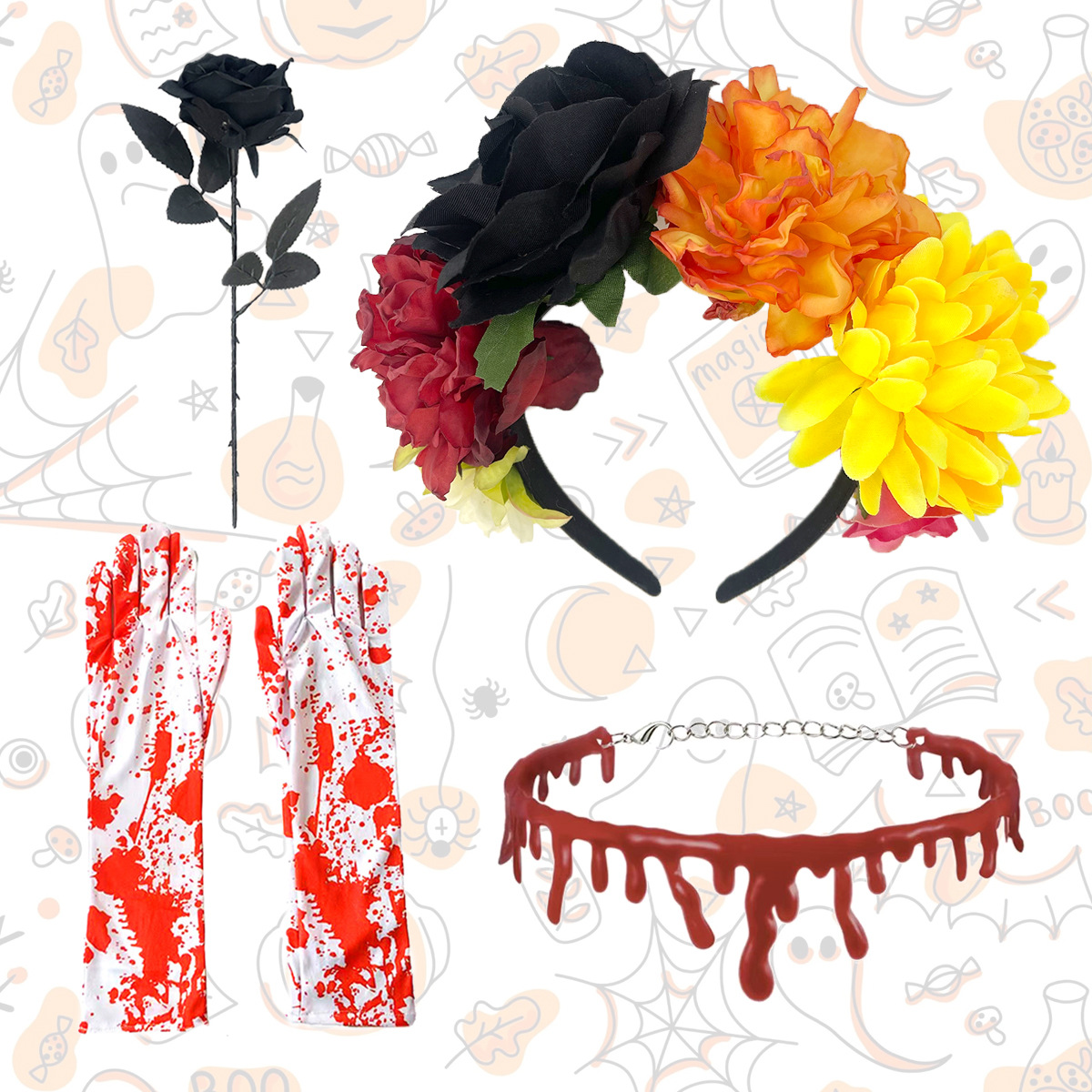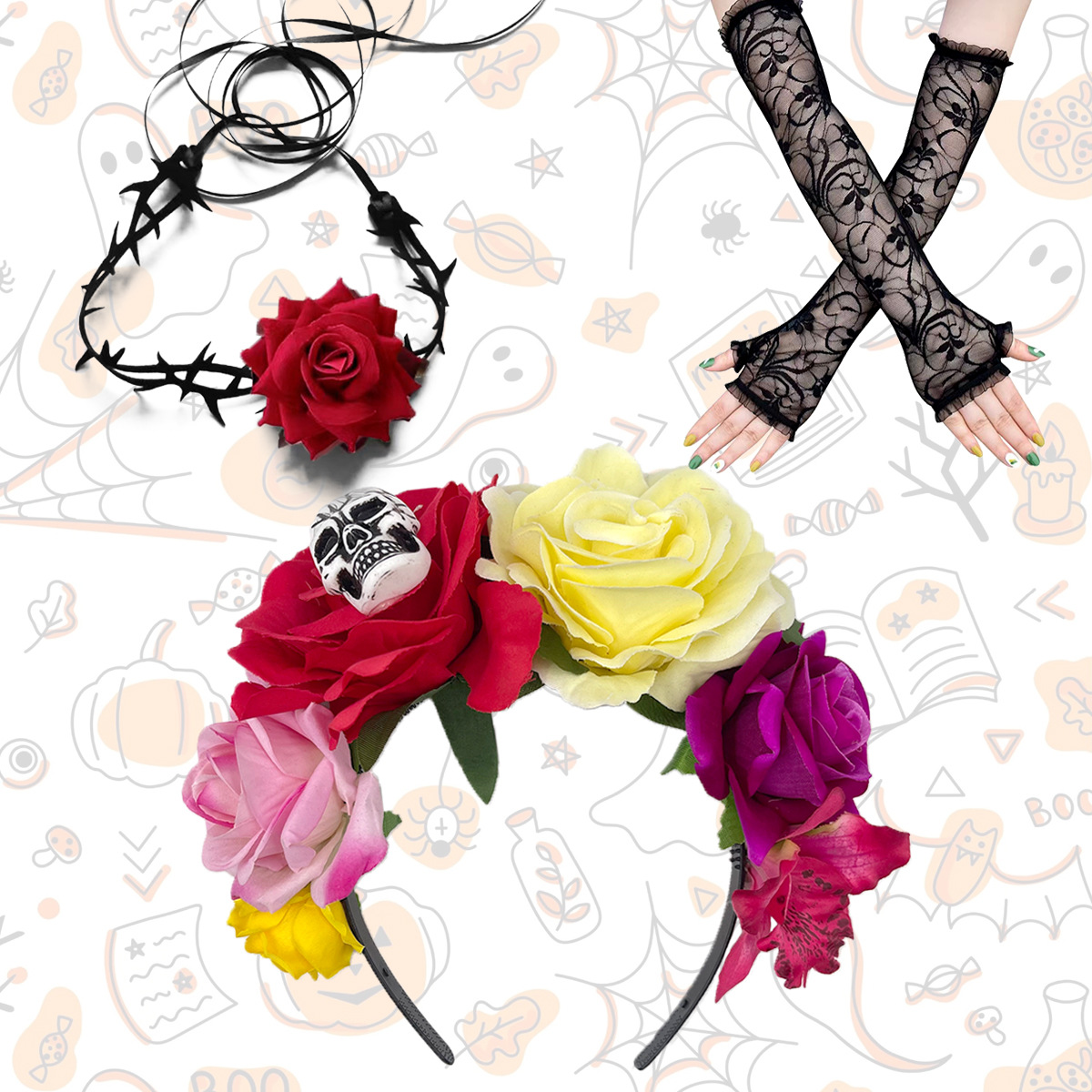 跨境热销万圣节搞怪发箍项链套装玫瑰花头箍女骷髅头发饰恐怖道具