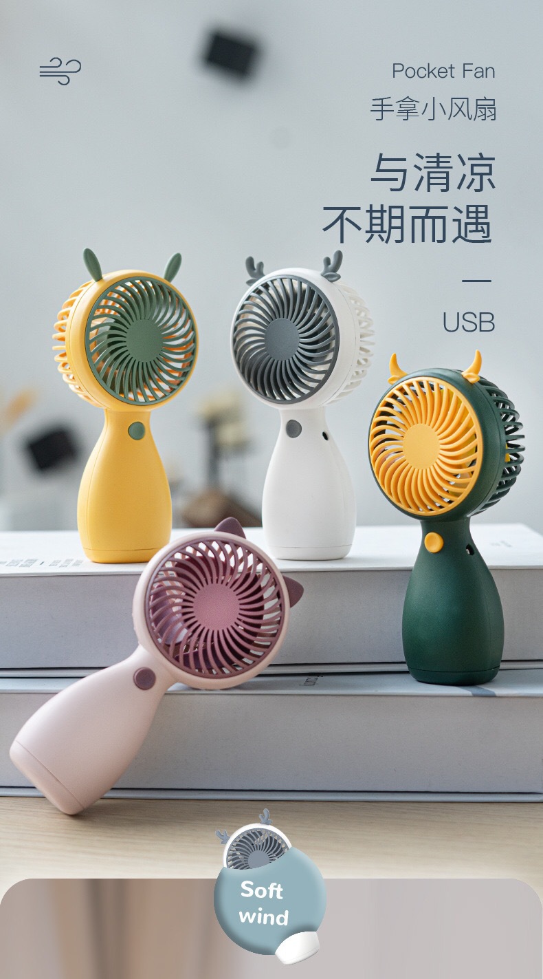 新款动物耳朵卡通手持风扇学生儿童USB充电迷你小风扇礼品批发