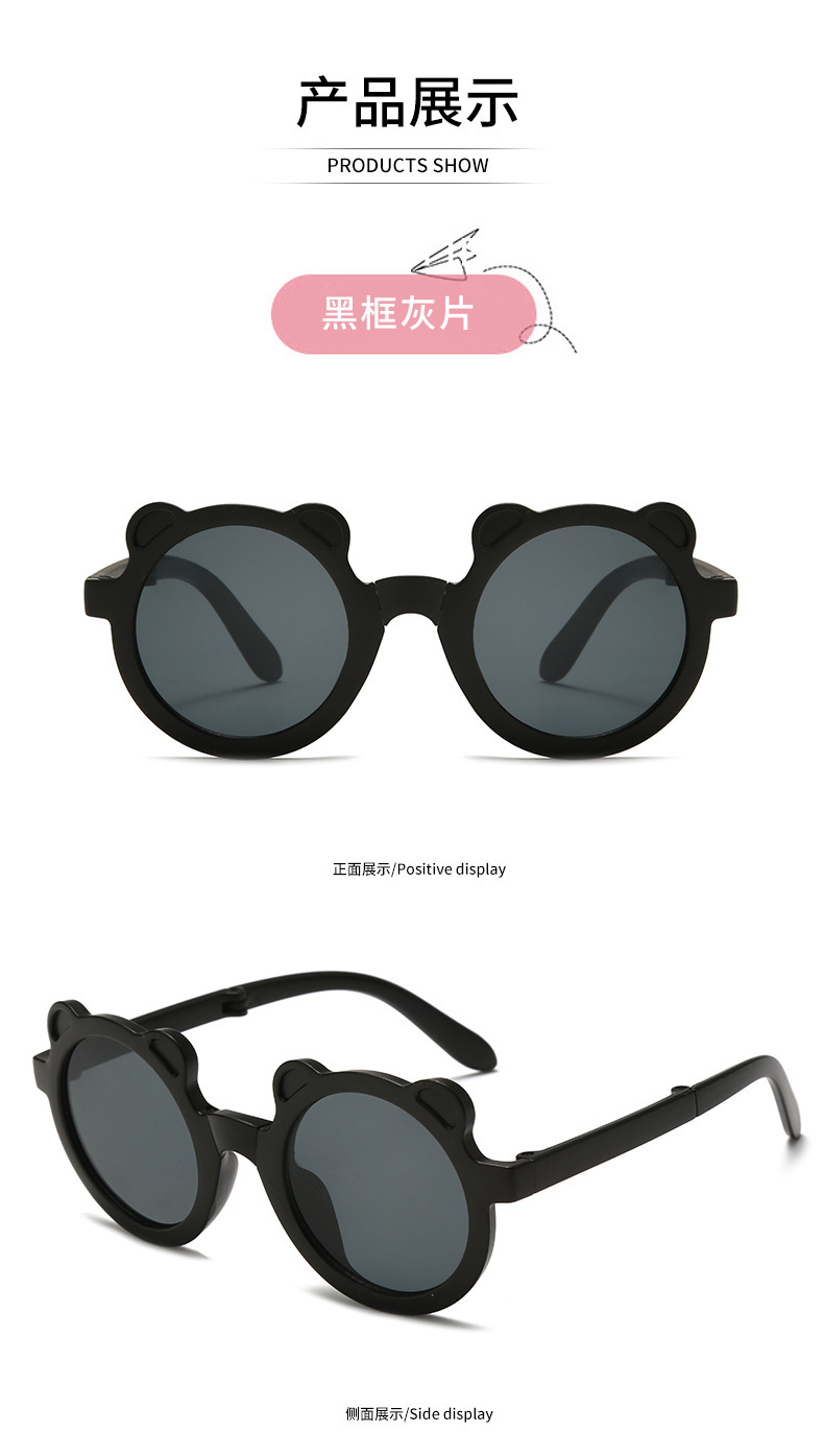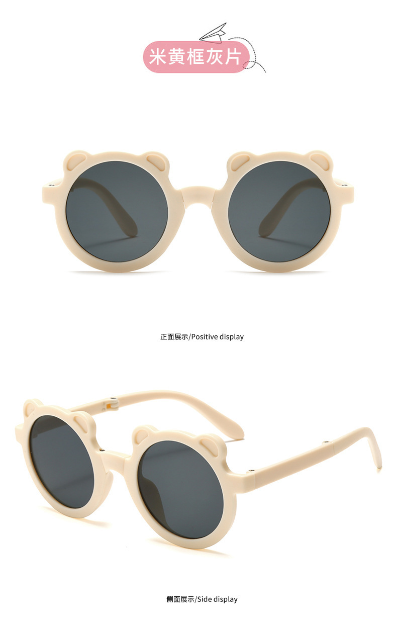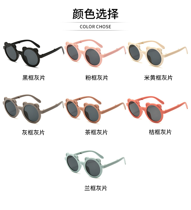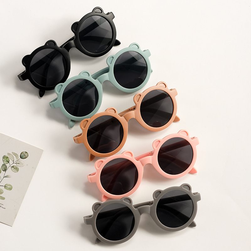 儿童小熊耳朵折叠墨镜批发新款男女宝宝防晒眼镜可爱卡通小孩眼镜