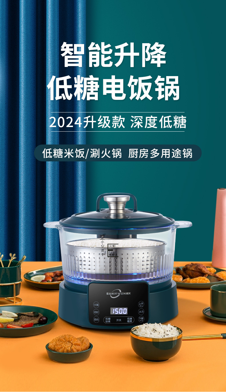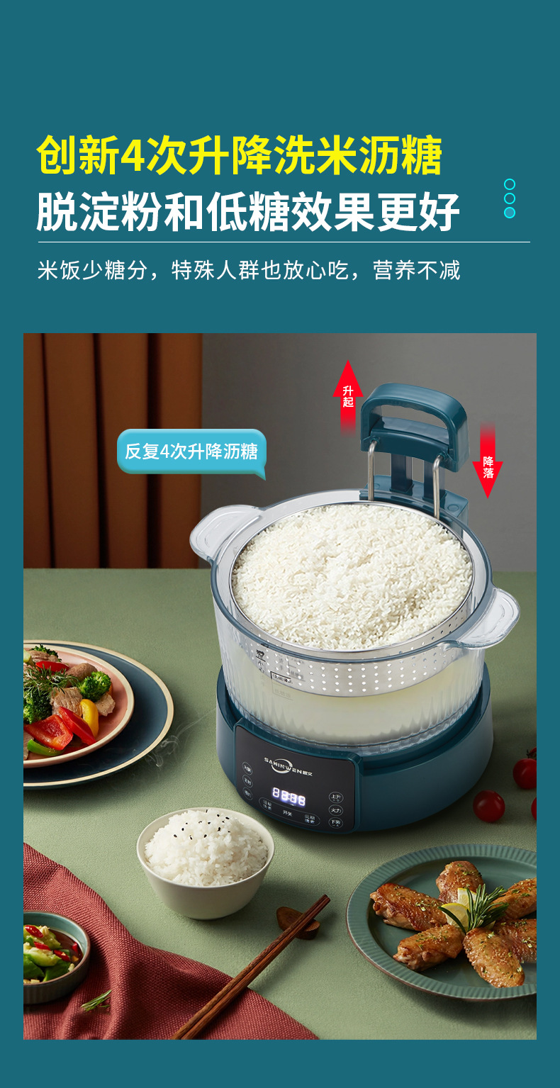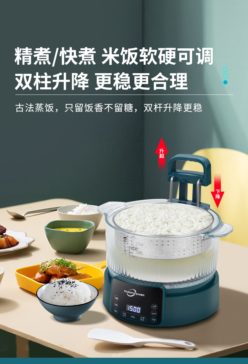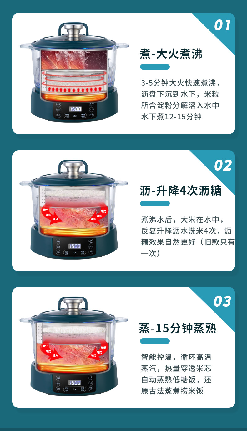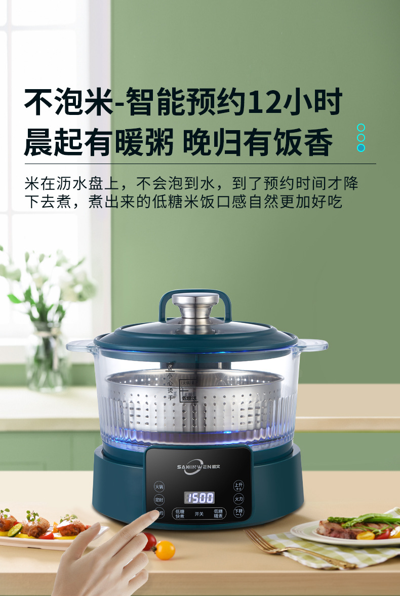 【加工定制】控糖智能升降电饭煲米汤分离自动沥水煮捞饭锅玻璃胆