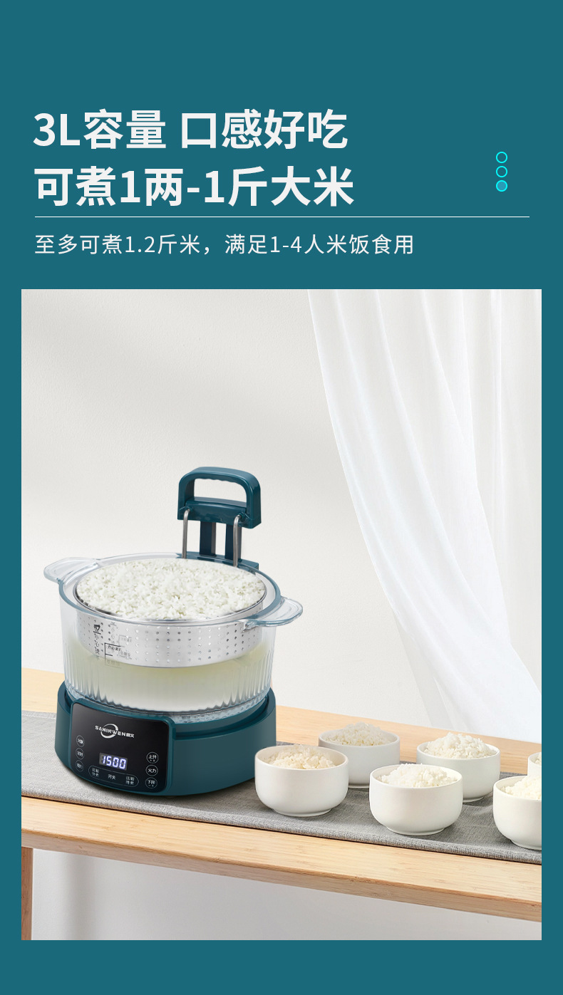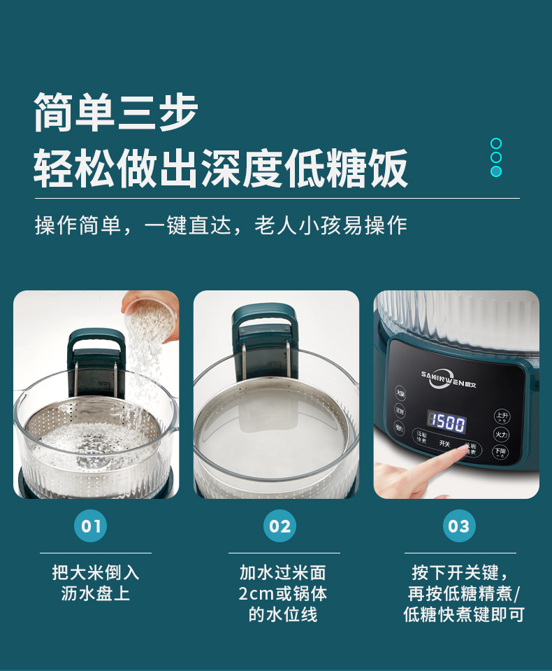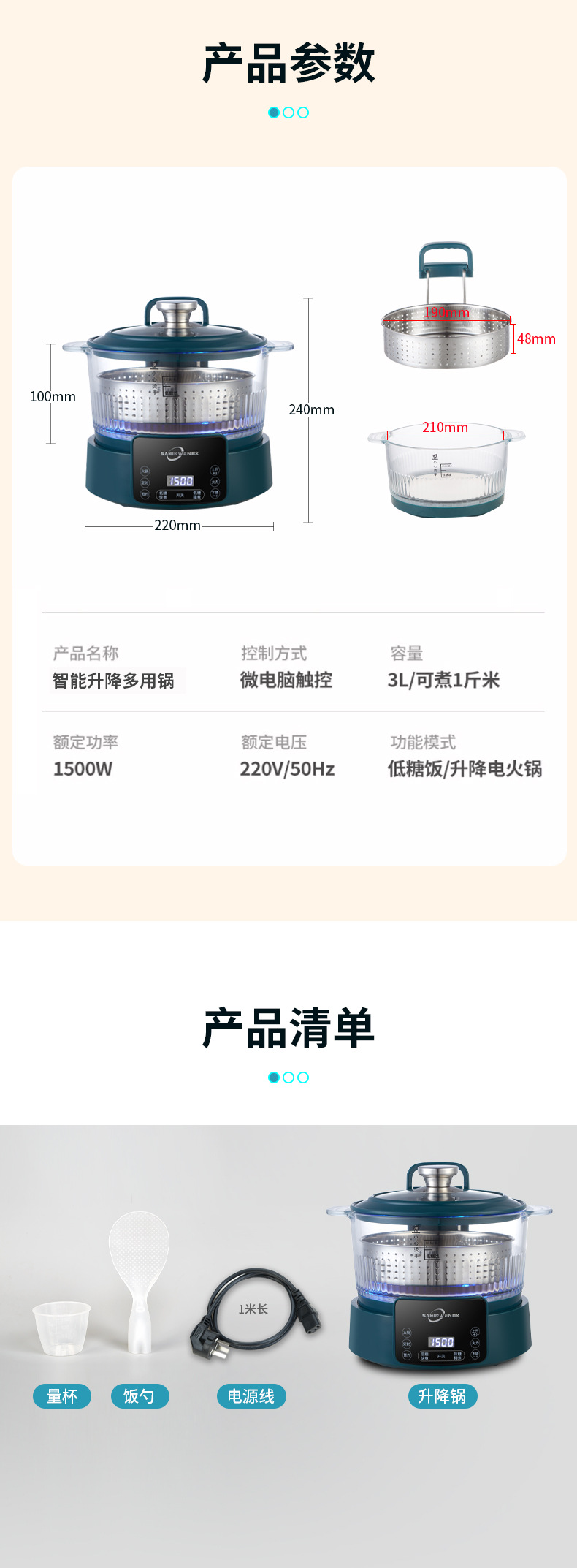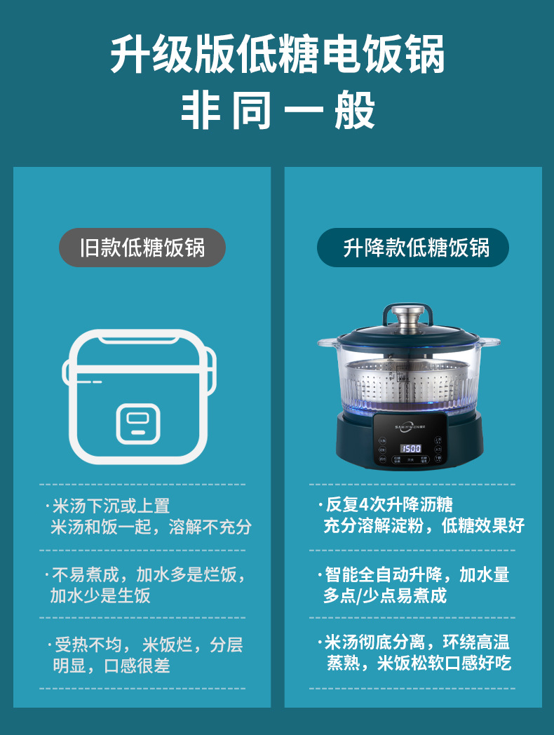 【加工定制】控糖智能升降电饭煲米汤分离自动沥水煮捞饭锅玻璃胆
