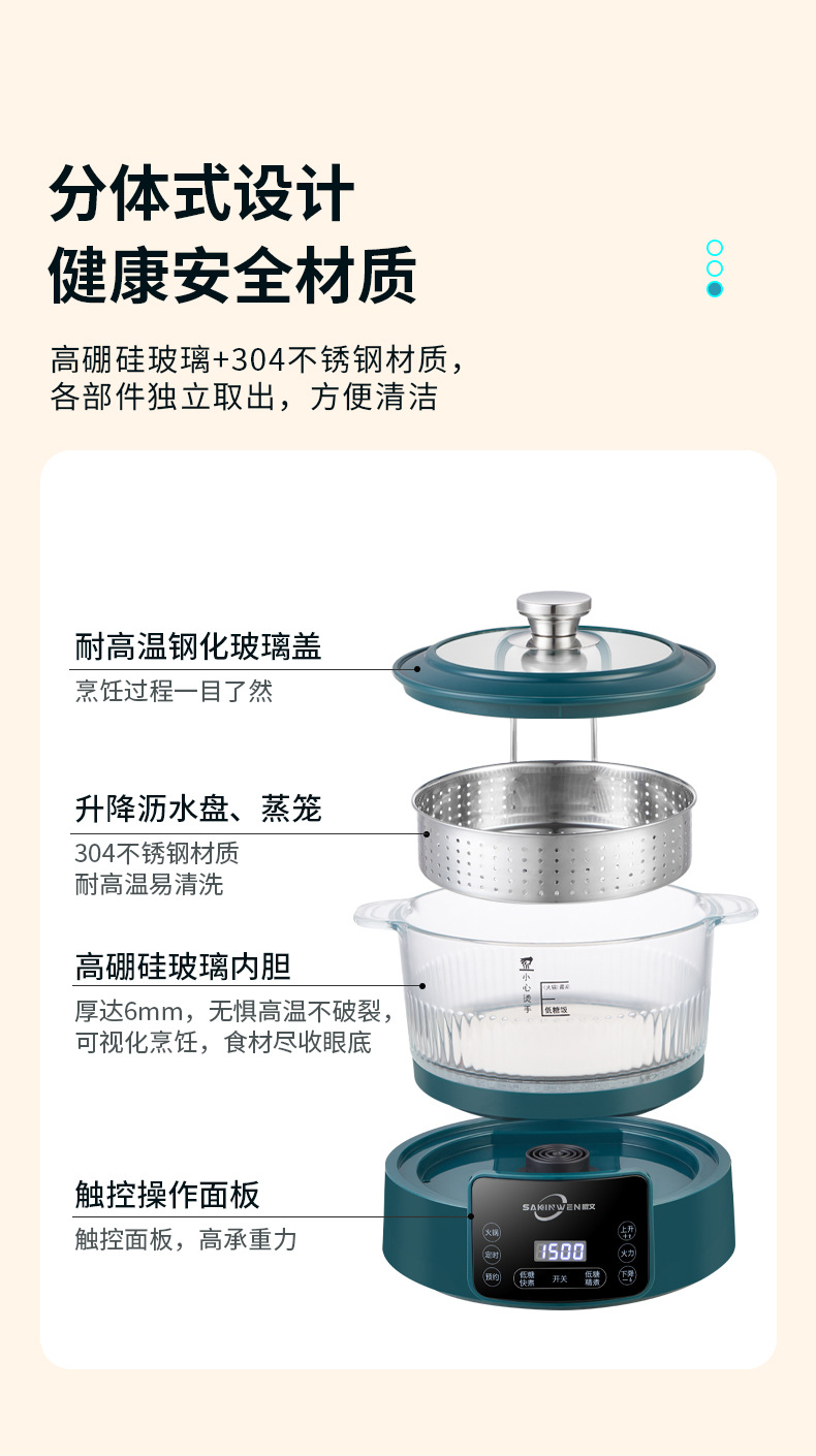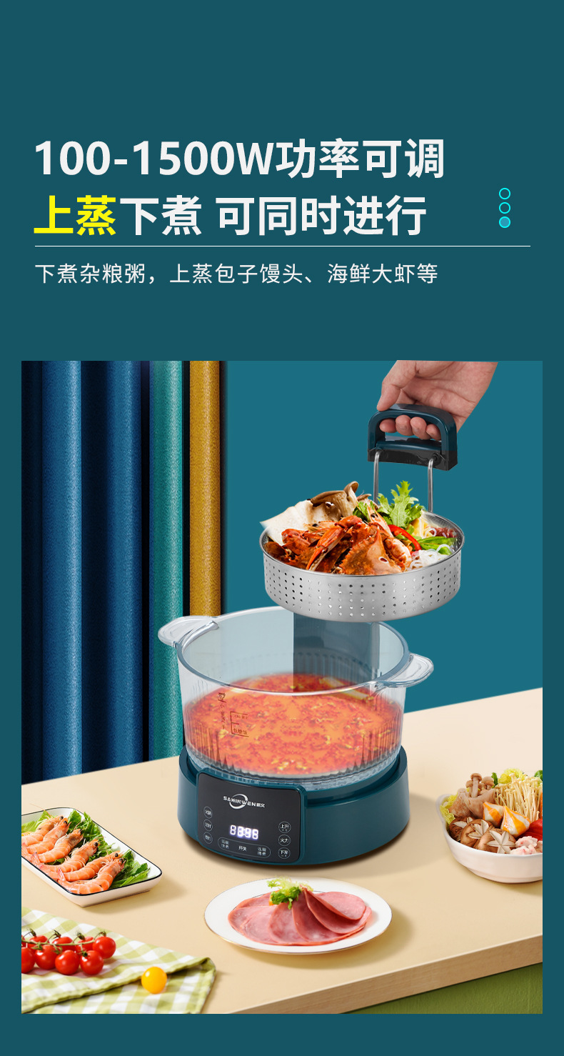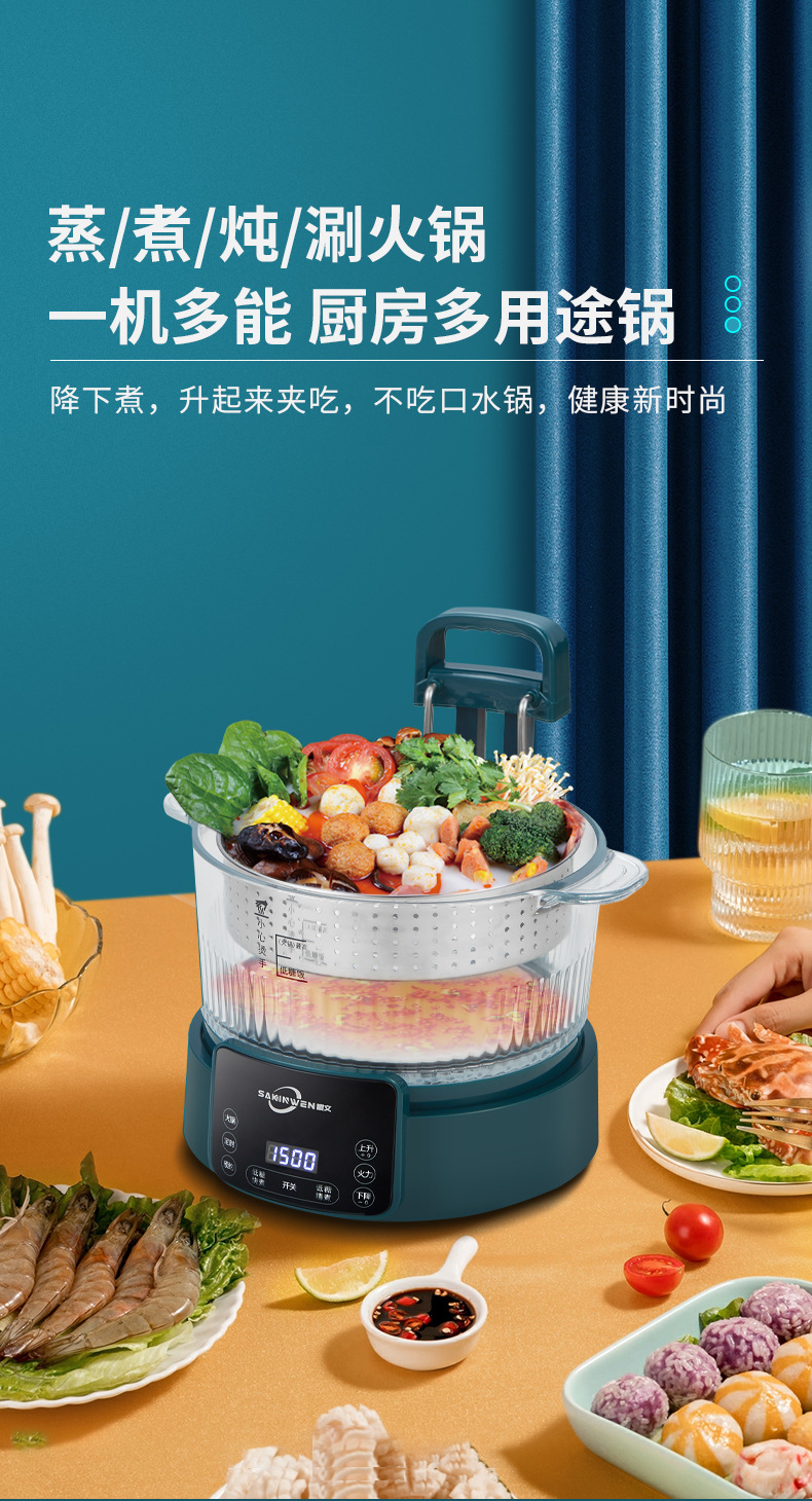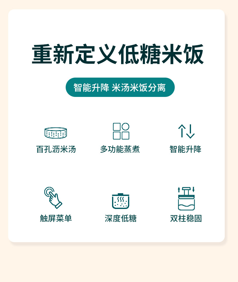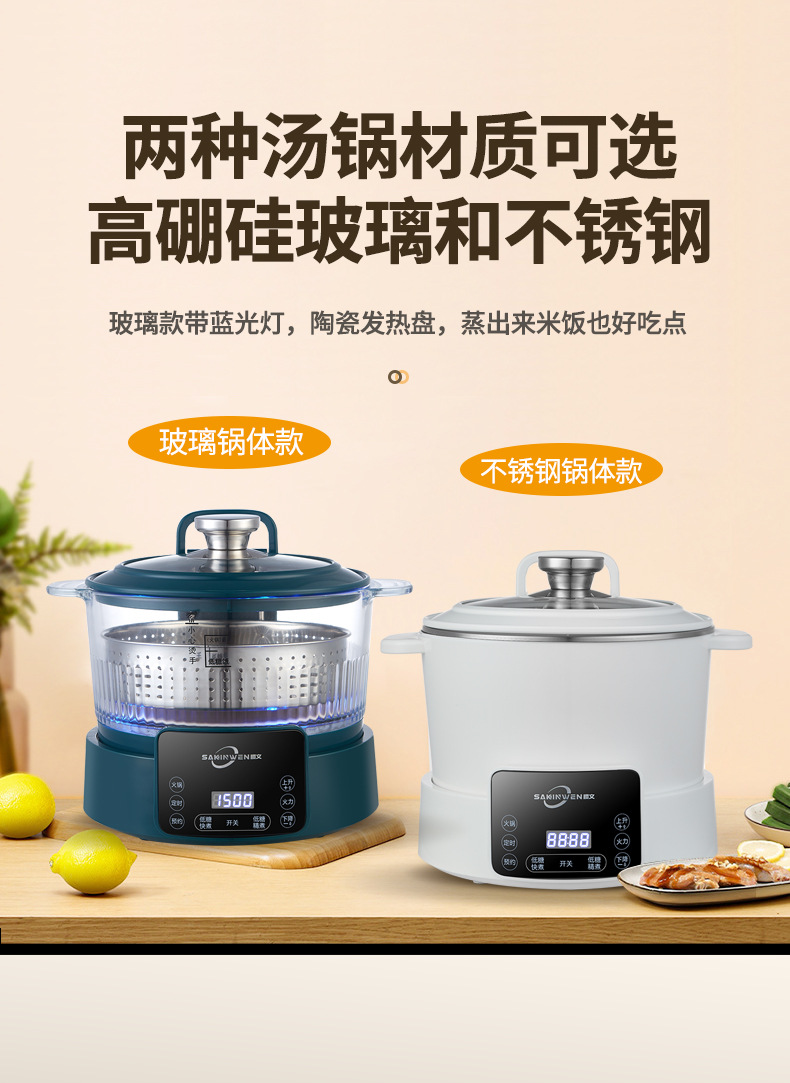 【加工定制】控糖智能升降电饭煲米汤分离自动沥水煮捞饭锅玻璃胆