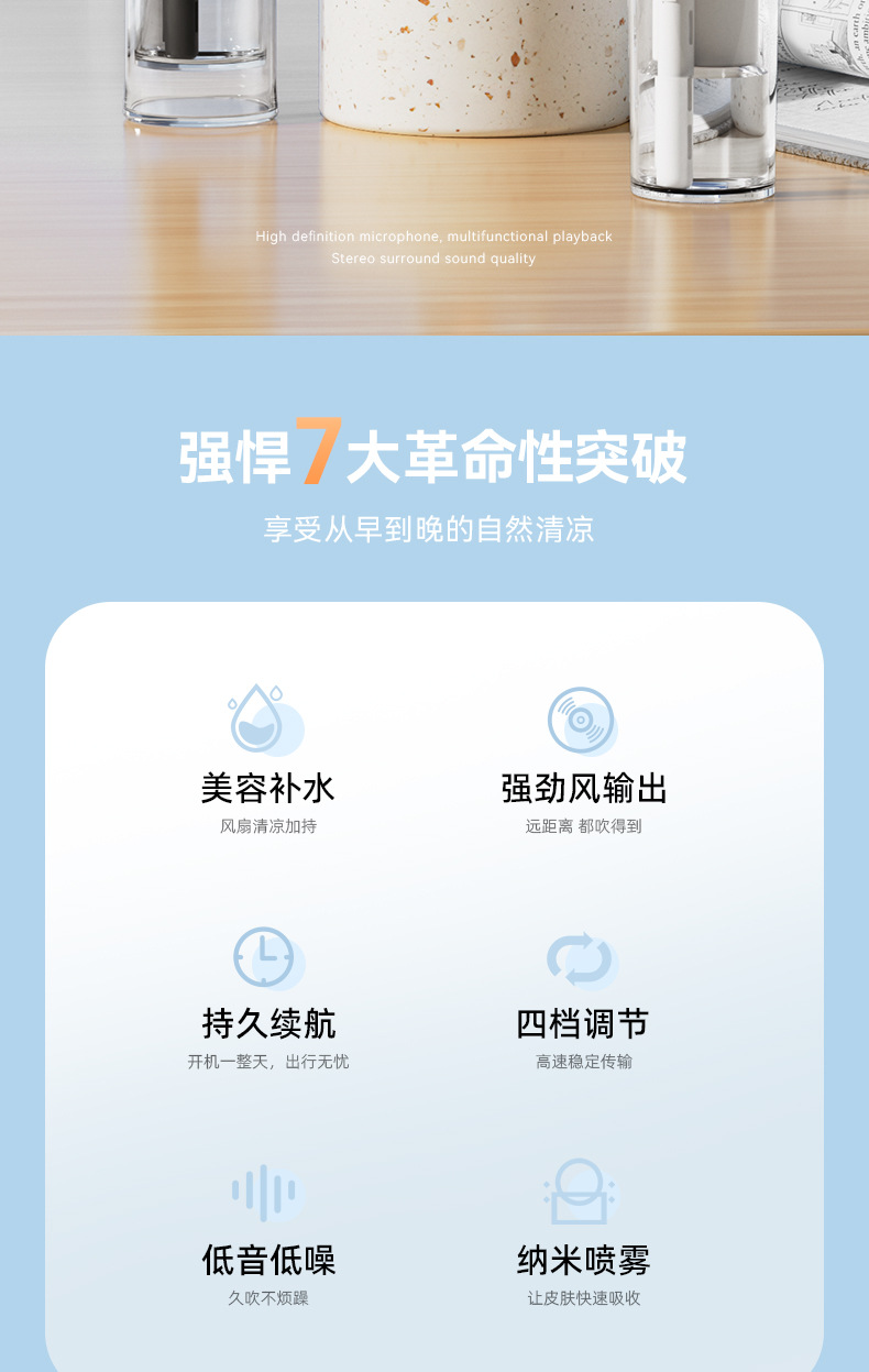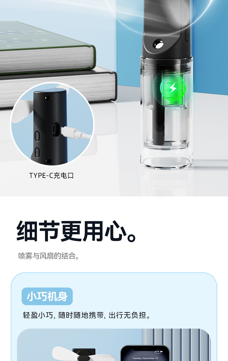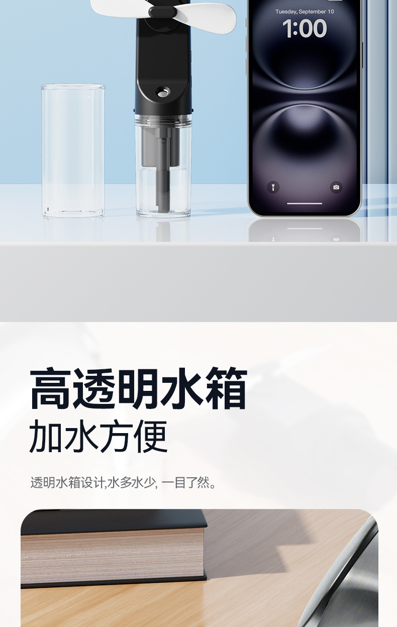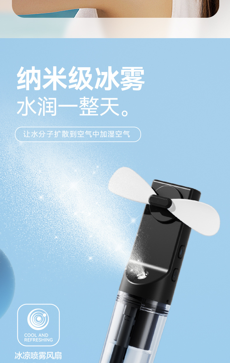 简约跨境补水风扇便携式加湿降温充电款长续航迷你F9手持喷雾风扇