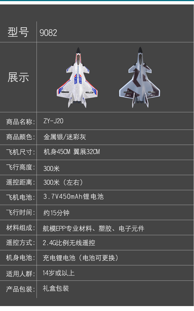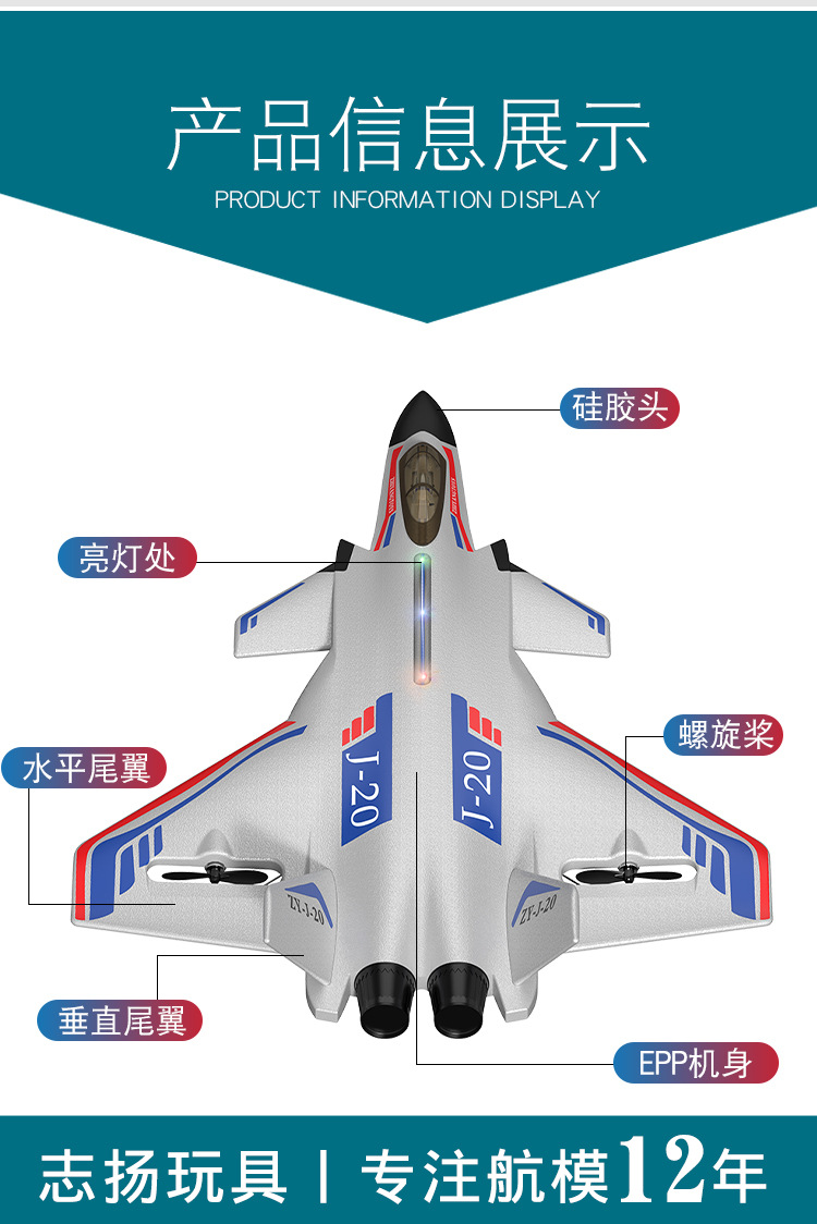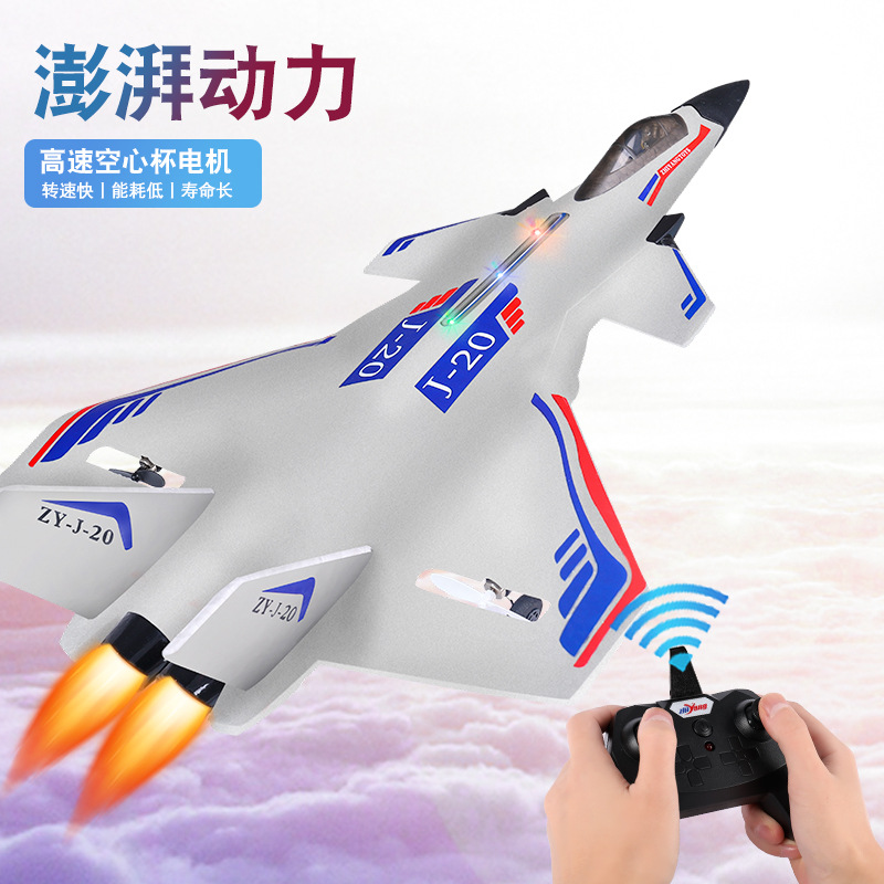 志扬玩具歼ZY-J20遥控飞机滑翔机航模发光泡沫地摊固定翼耐摔仿真
