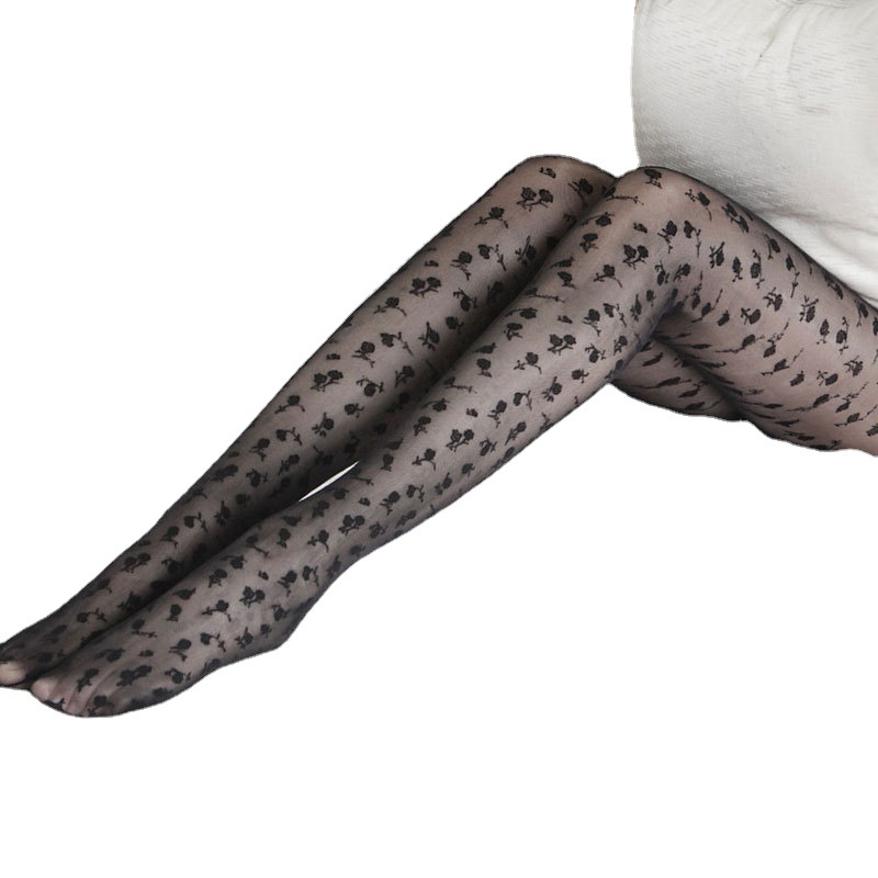 出口欧美时尚连裤丝袜ins风提花潮袜女士打底丝袜提玫瑰花防勾