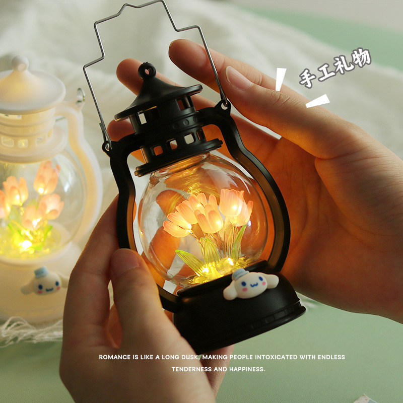 跨境创意手提小马灯手工diy装饰送女友闺蜜孩子礼物郁金香小夜灯