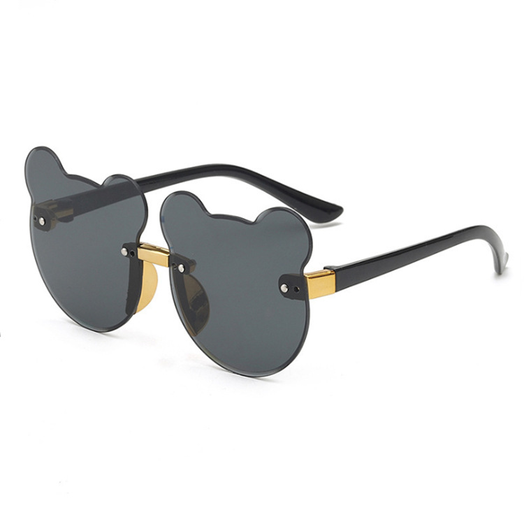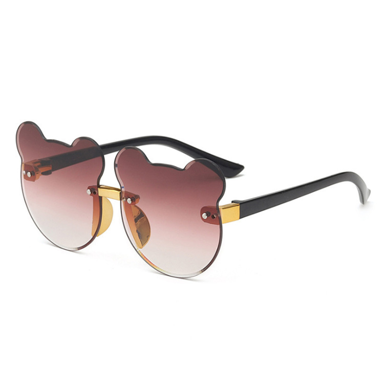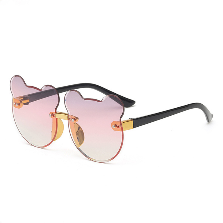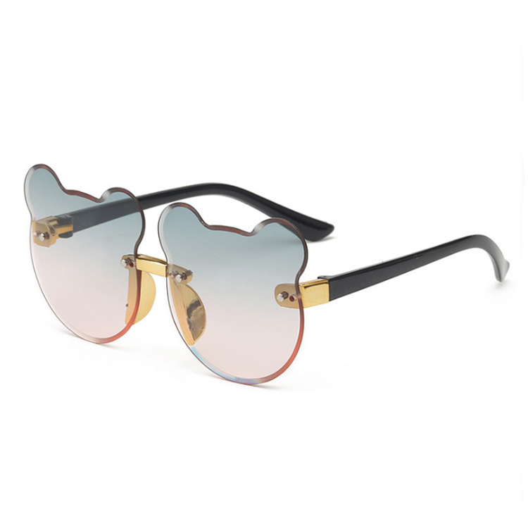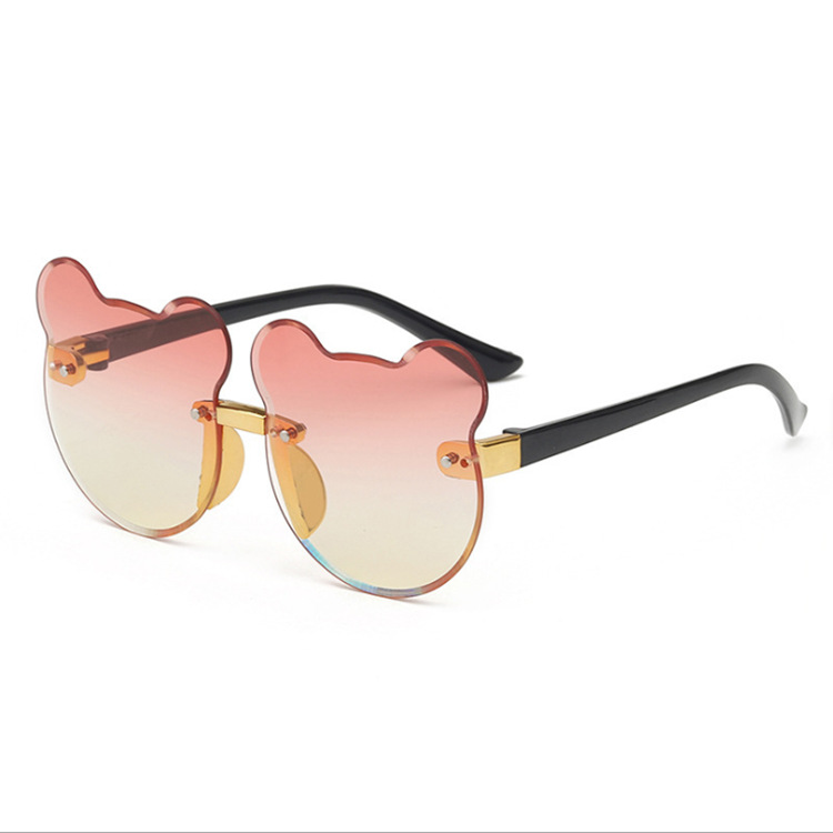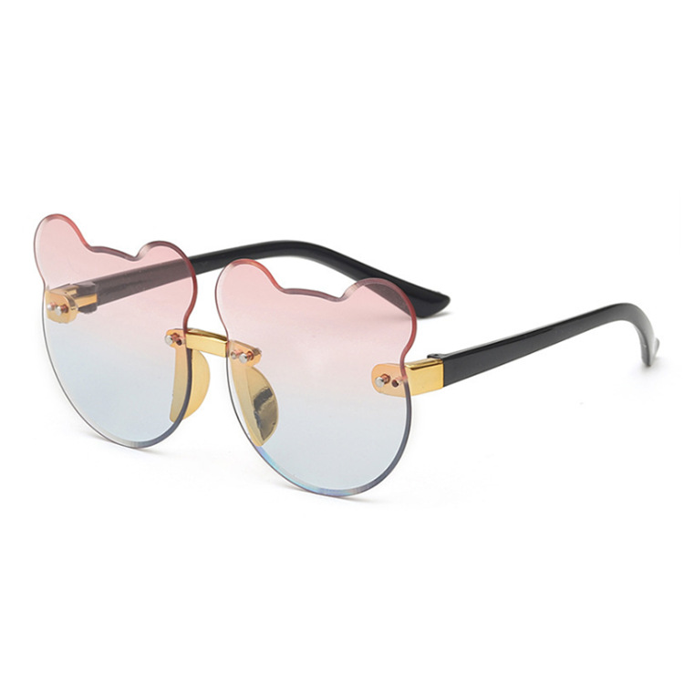 2024新款猫耳朵小熊猫无边框儿童太阳镜渐进海洋片墨镜现货批发