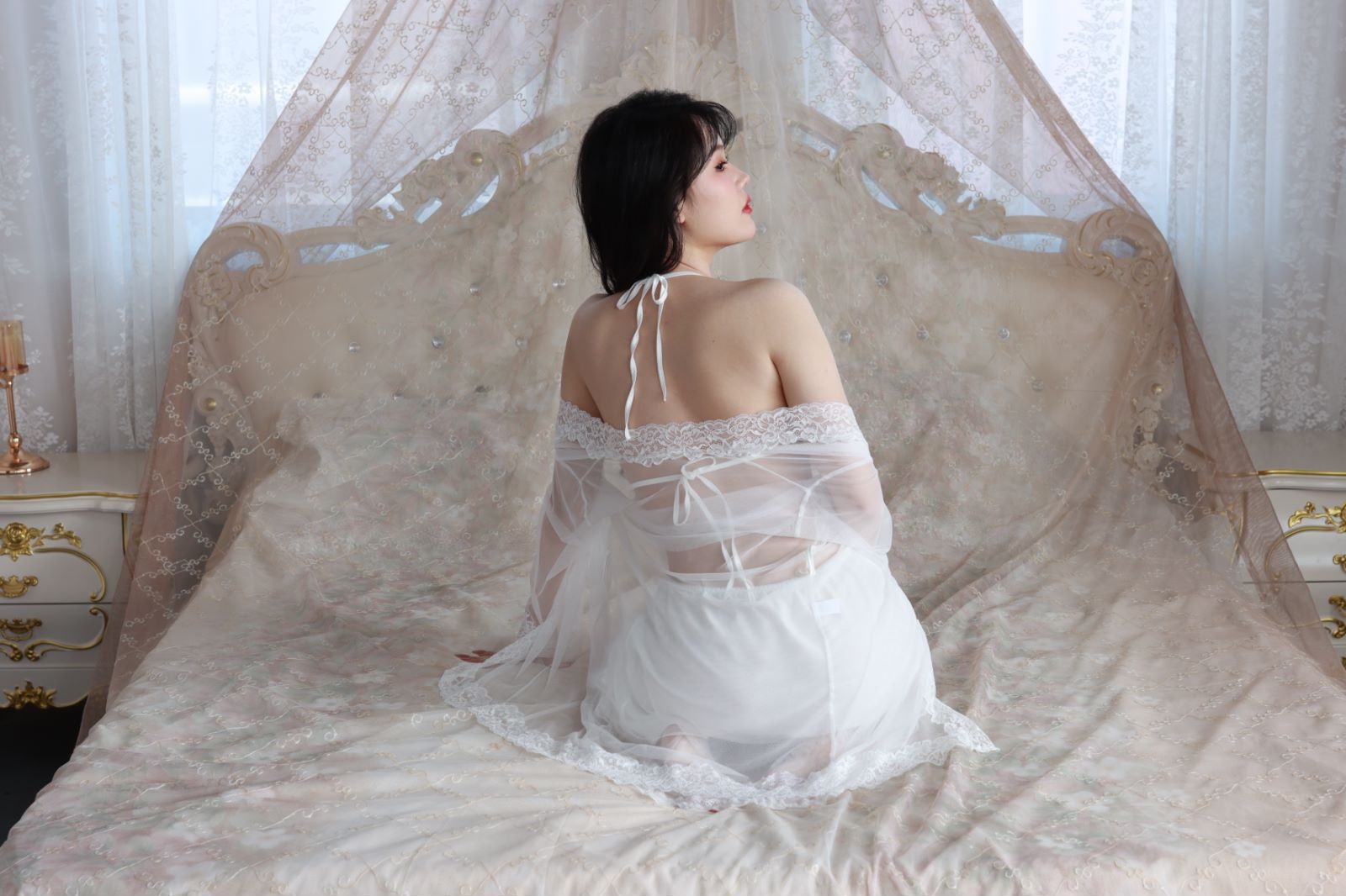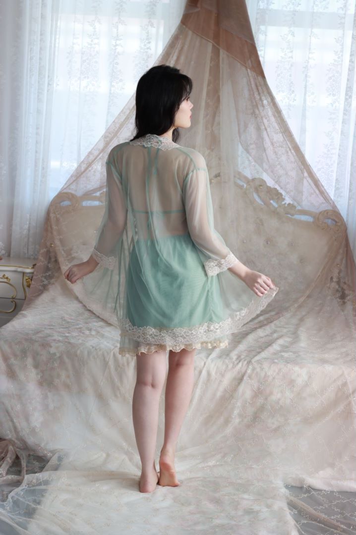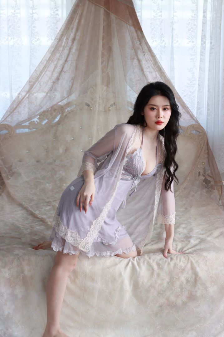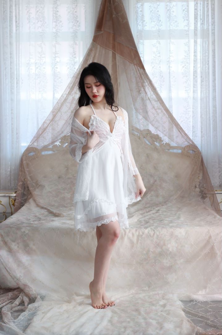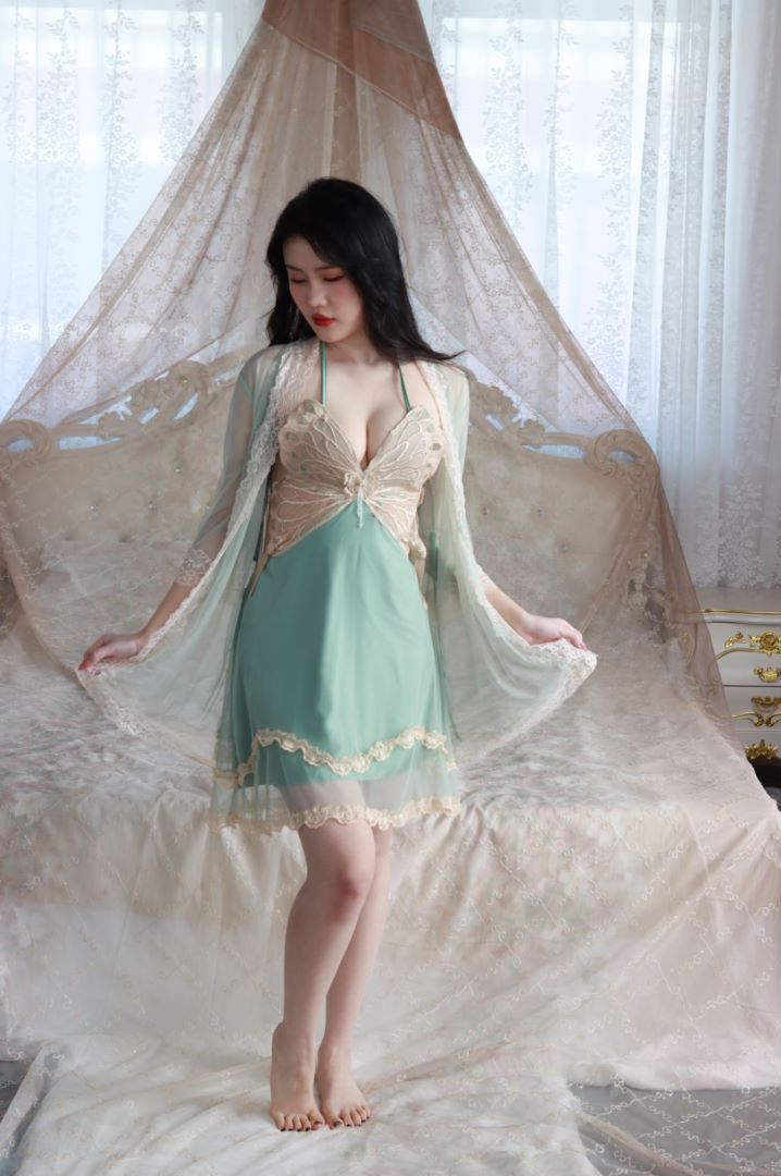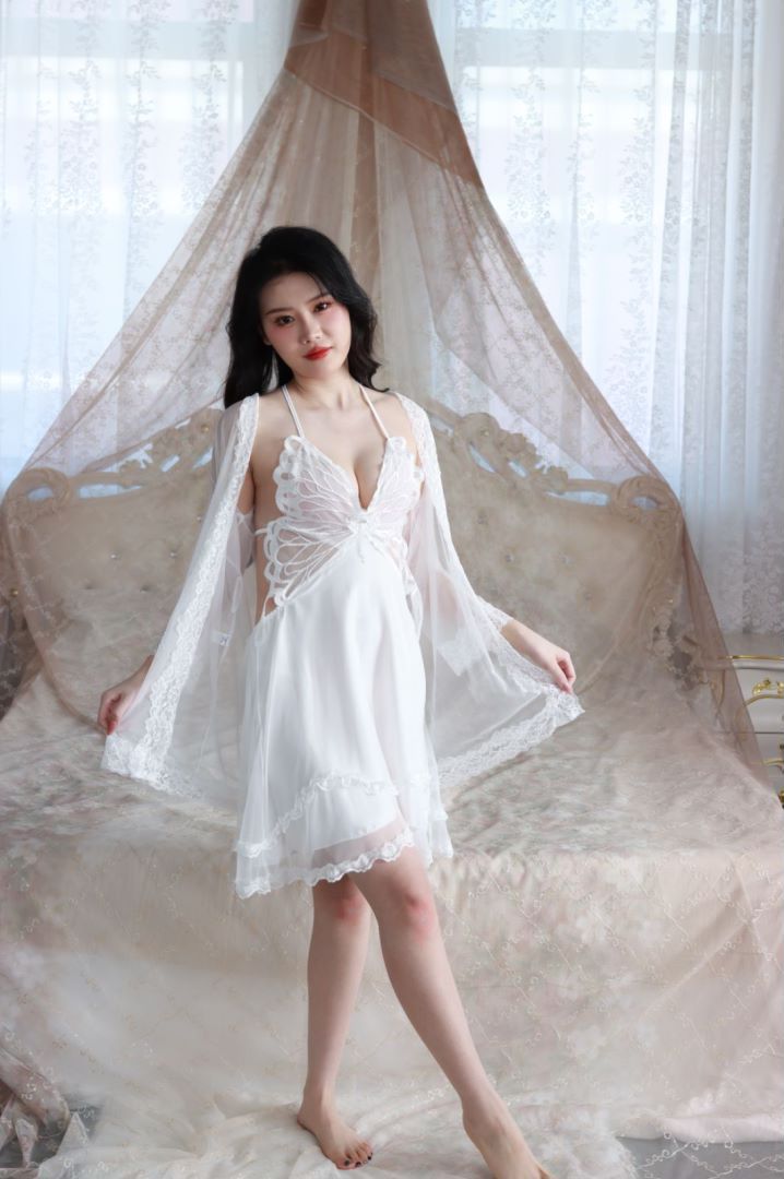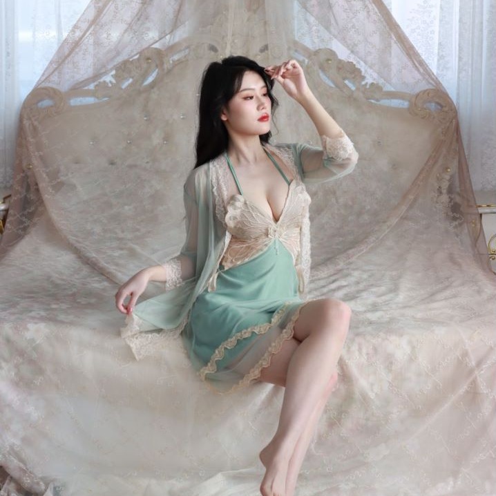 抖音爆款蝴蝶睡衣女蕾丝带胸垫聚拢奢华法式吊带纯欲风睡裙网纱外