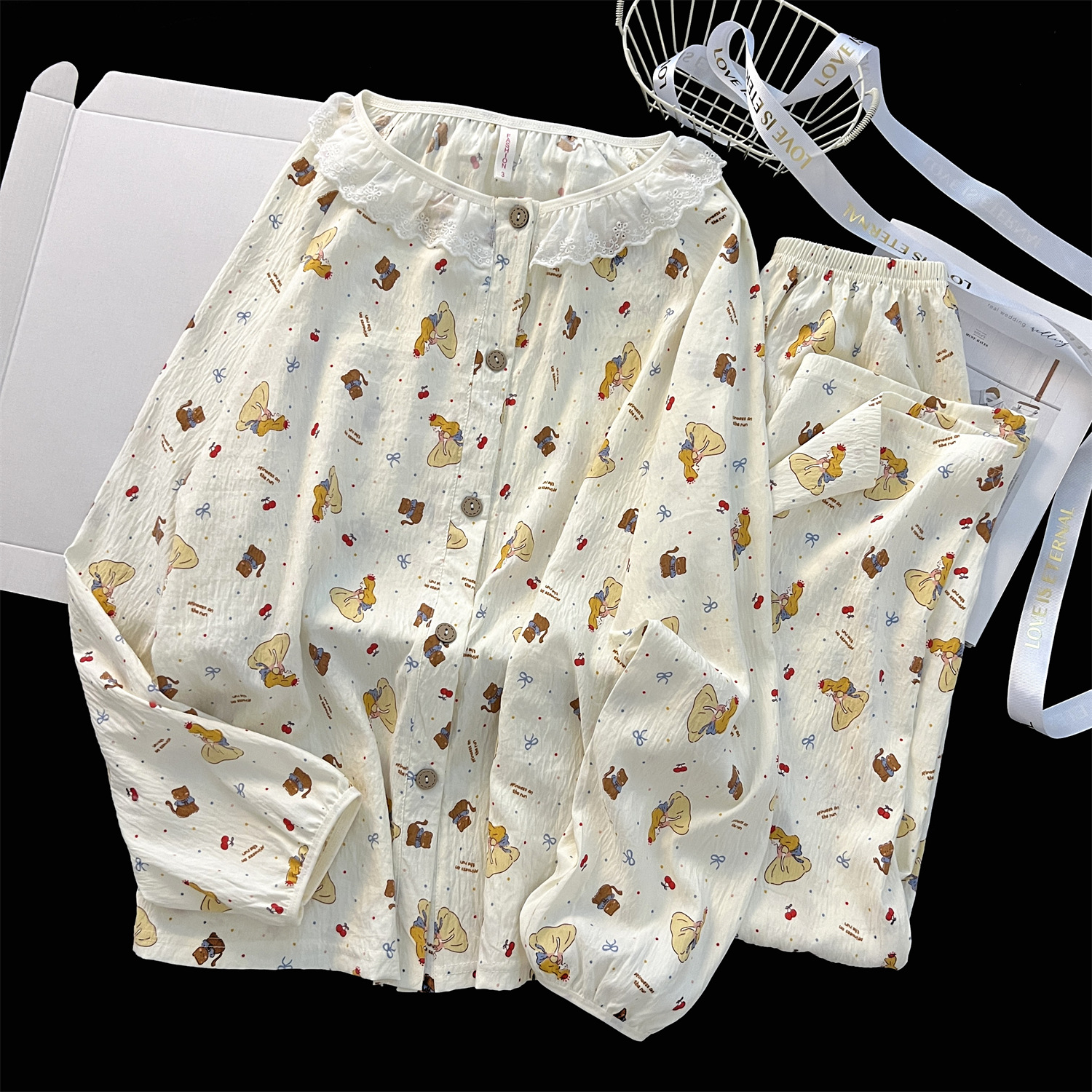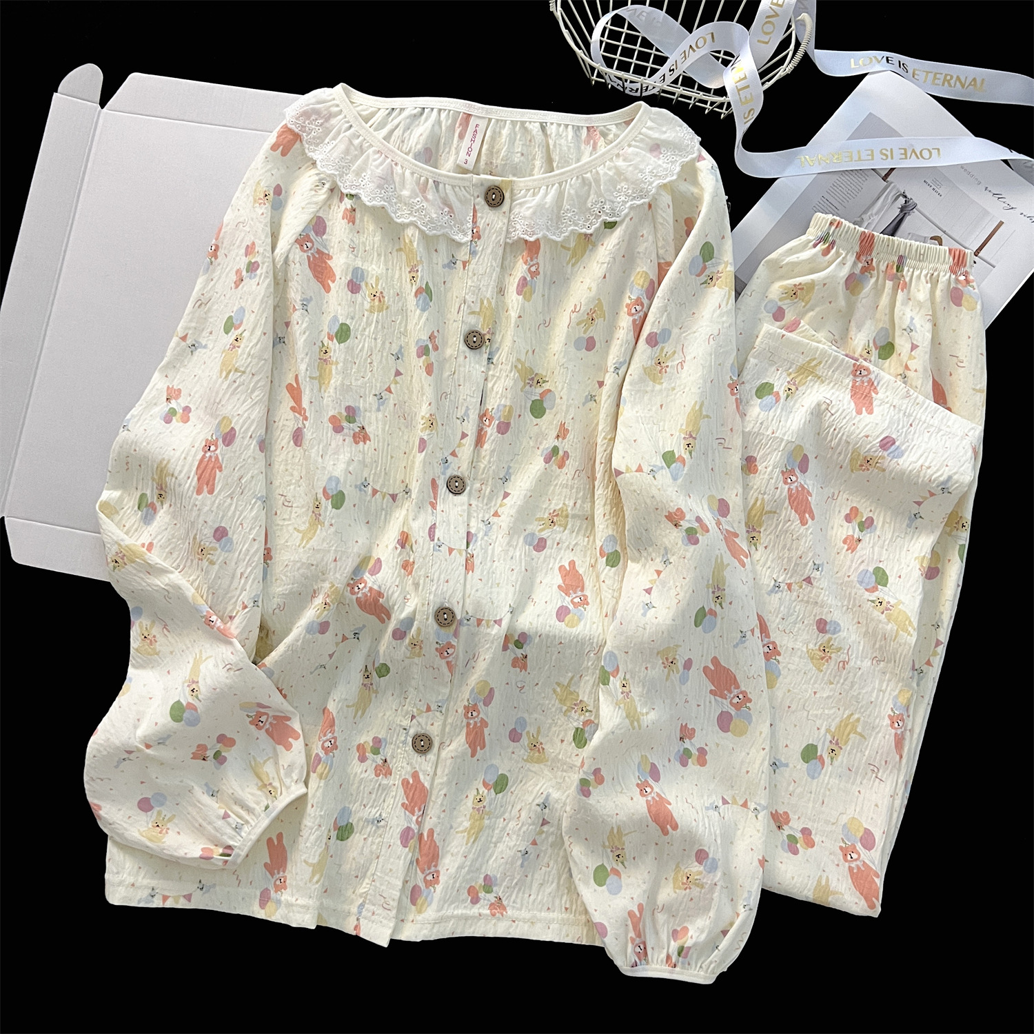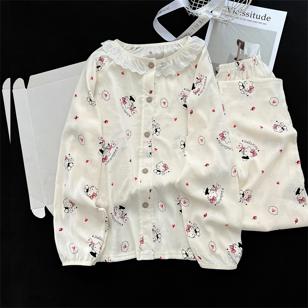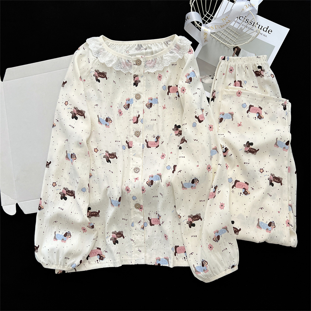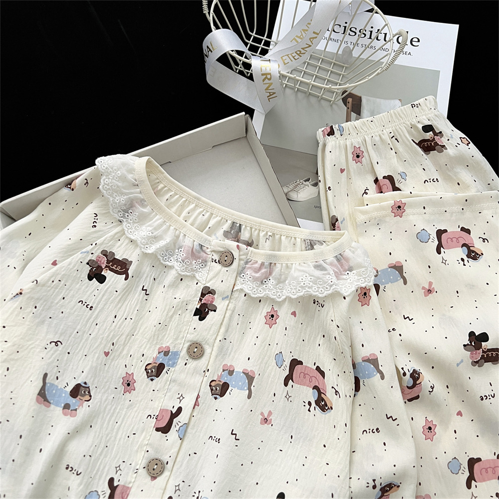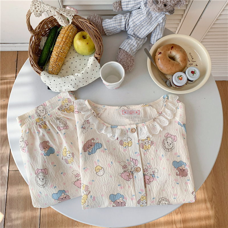 云朵棉睡衣女秋季长袖公主风碎花开衫两件套可爱甜美家居服可外穿