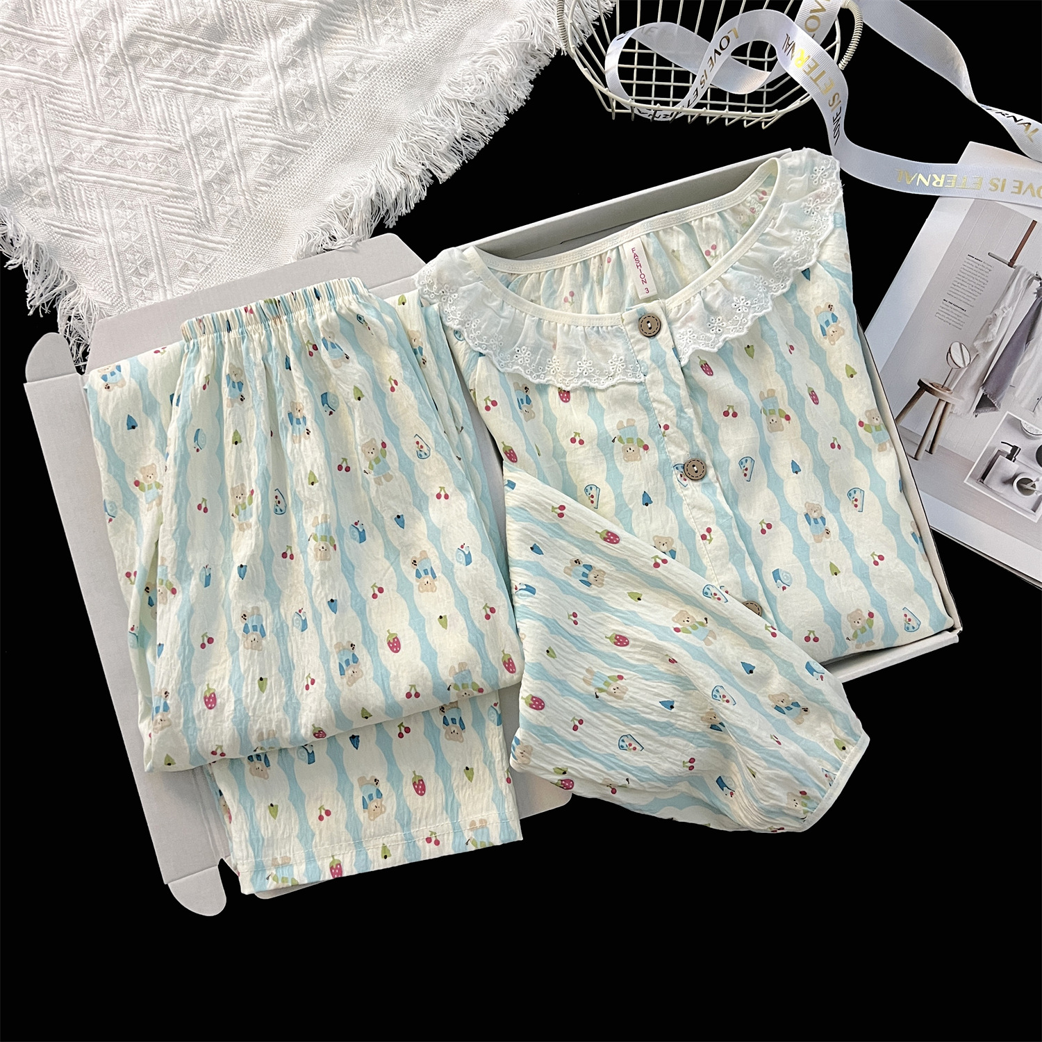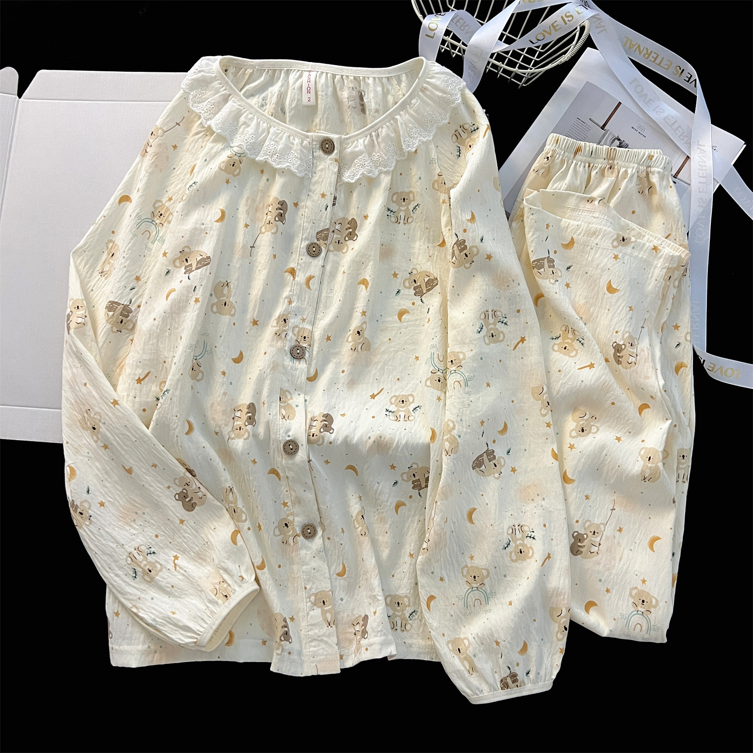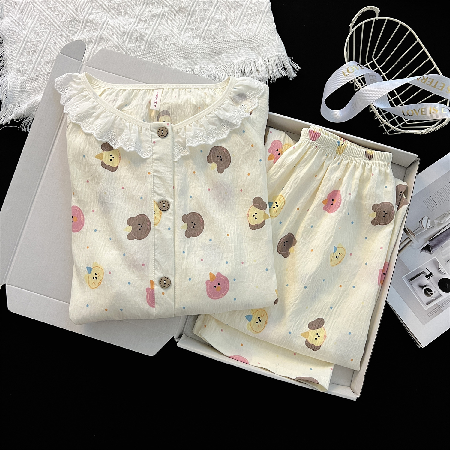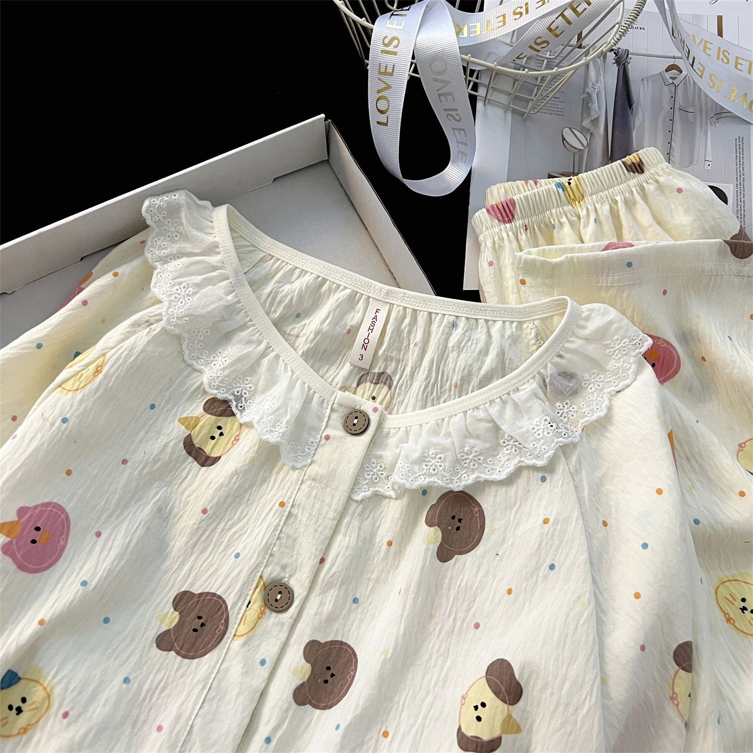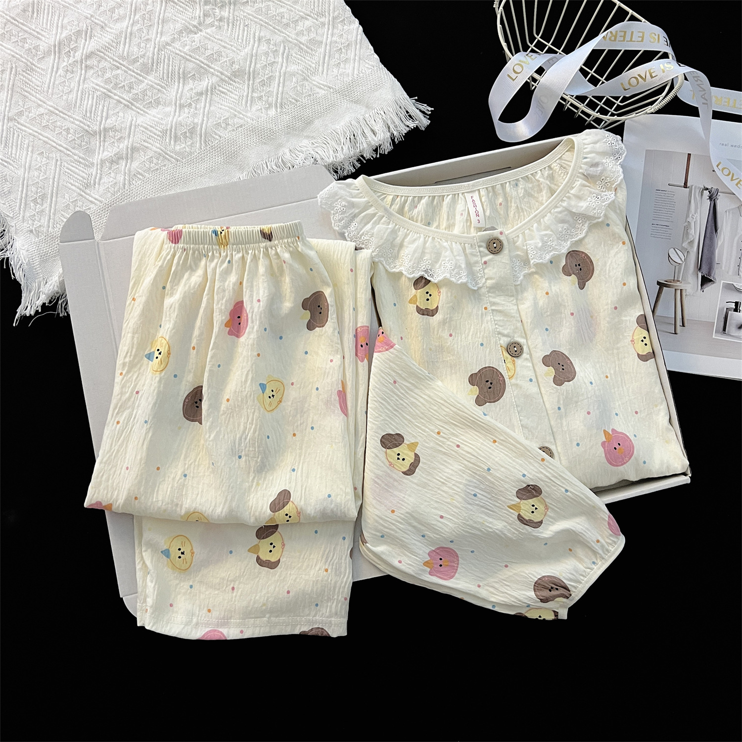 云朵棉睡衣女秋季长袖公主风碎花开衫两件套可爱甜美家居服可外穿