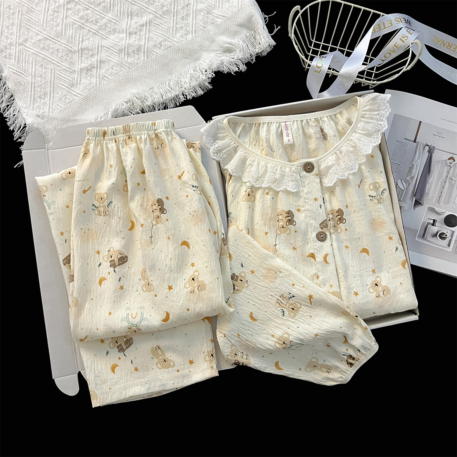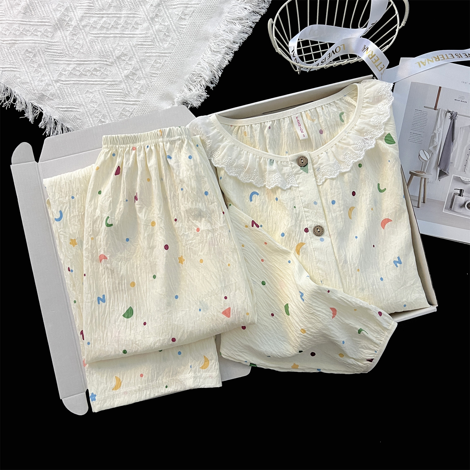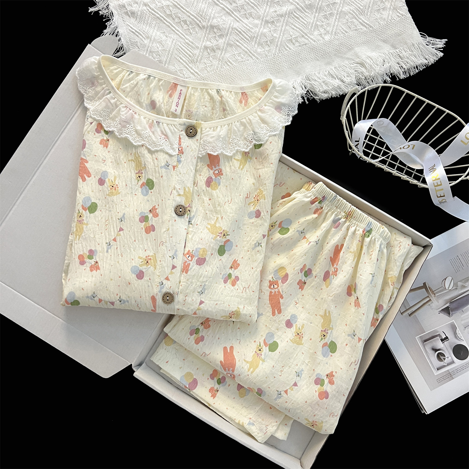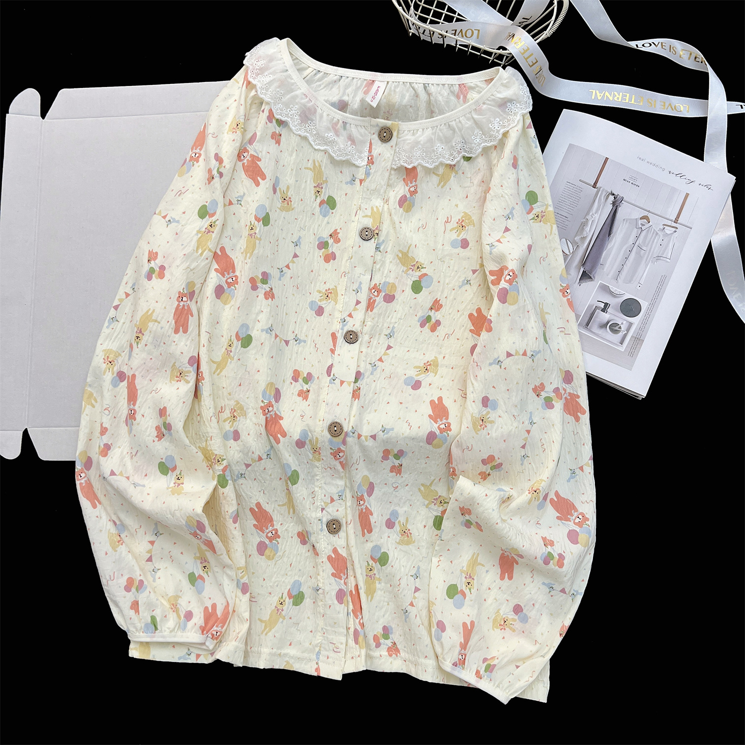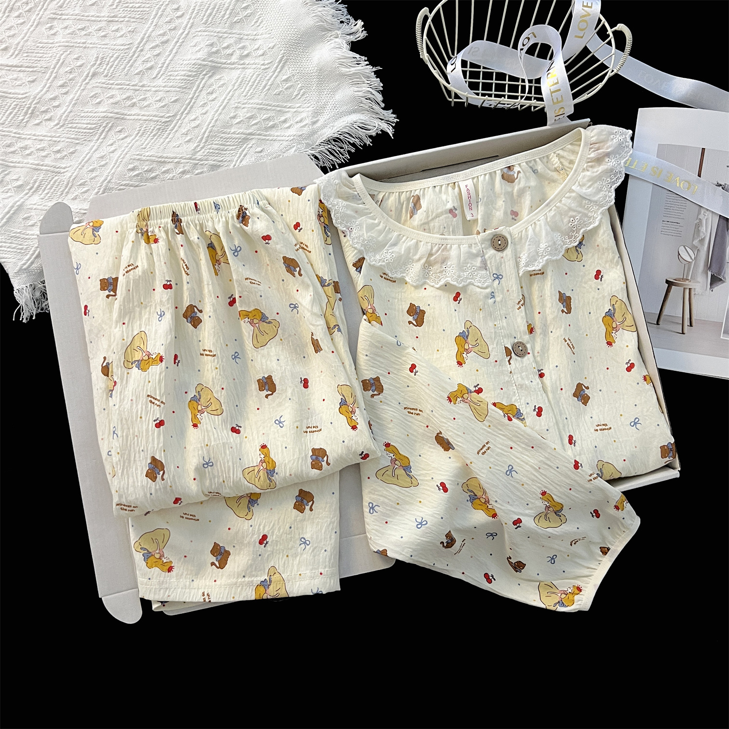 云朵棉睡衣女秋季长袖公主风碎花开衫两件套可爱甜美家居服可外穿