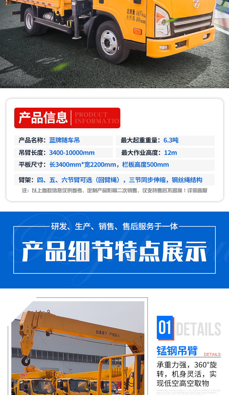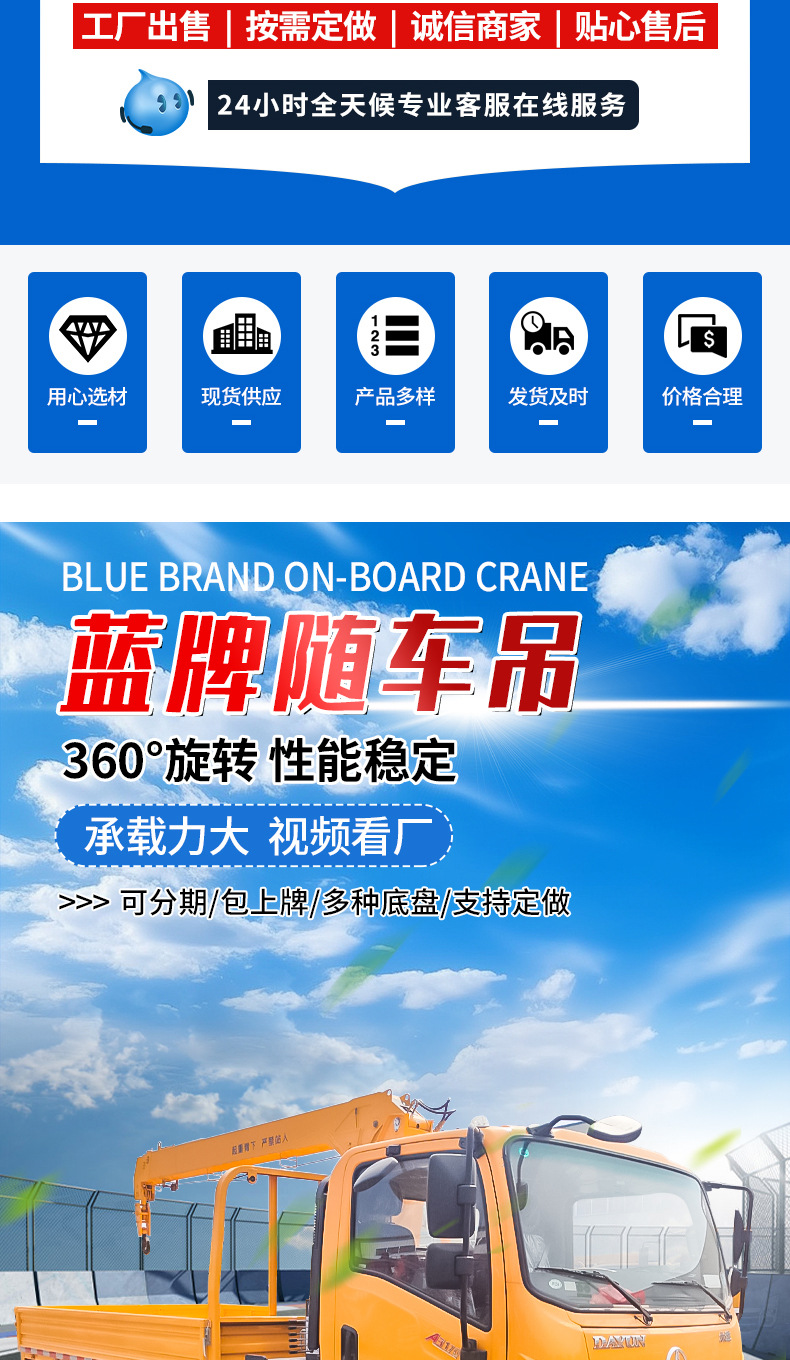 销售5吨8吨直臂式随车吊可分期蓝牌随车吊五节直臂式小型随车吊
