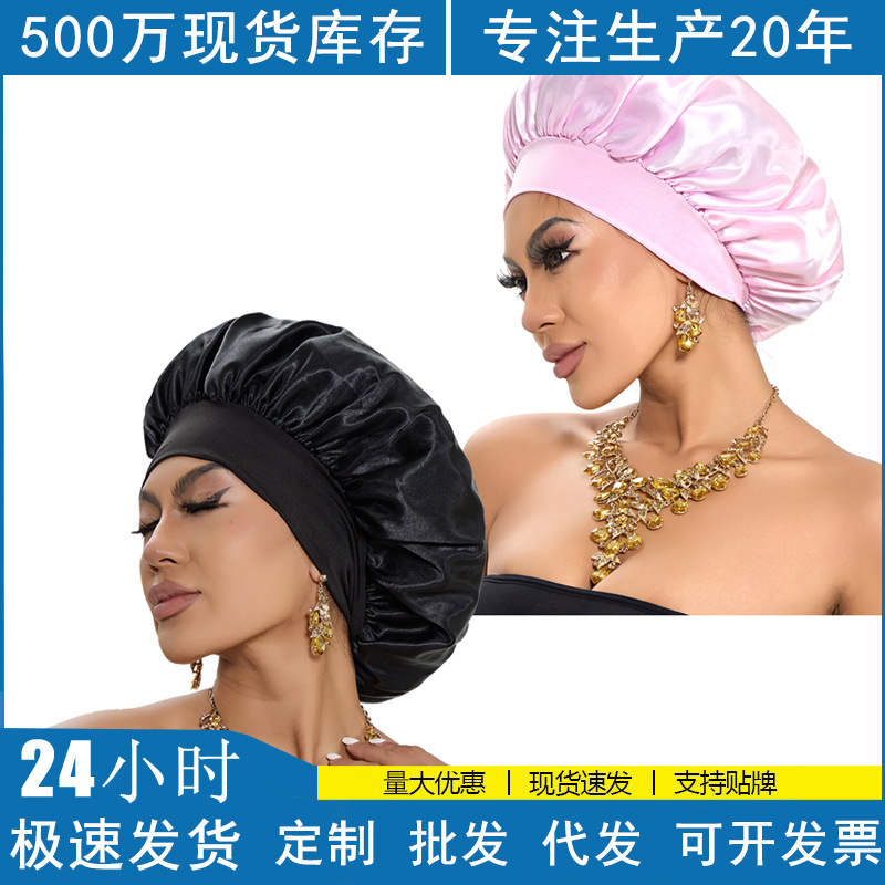 亚马逊跨境外贸宽边高弹力头巾美容帽浴帽护发帽子女护理色丁睡帽