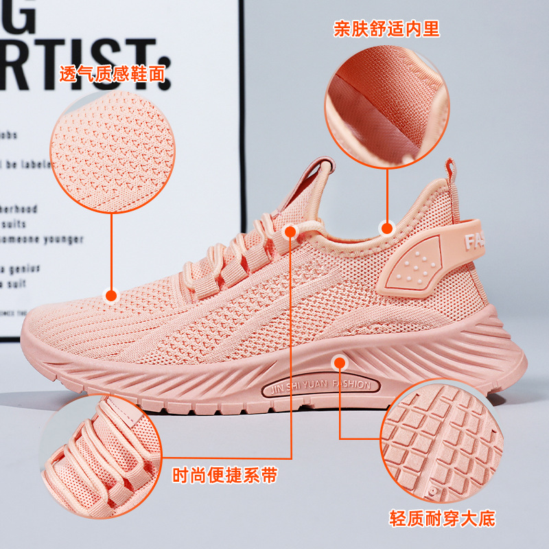 女鞋春秋季时尚休闲运动单鞋批发TEMU跨境代发潮流透气飞织布鞋女