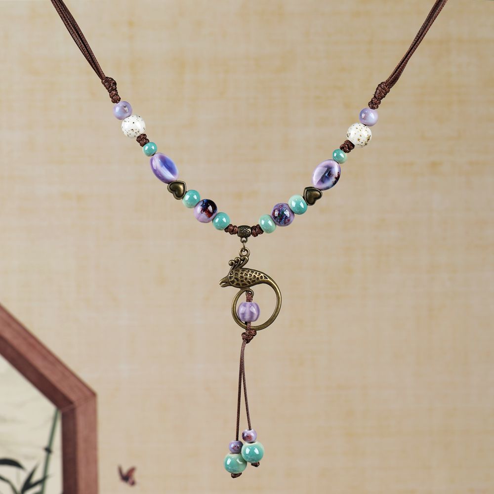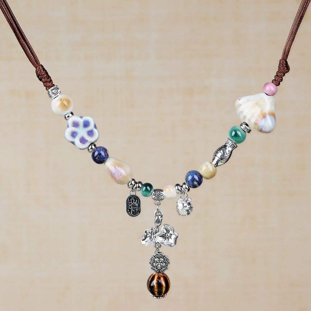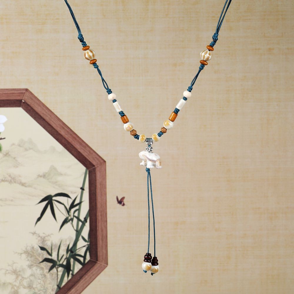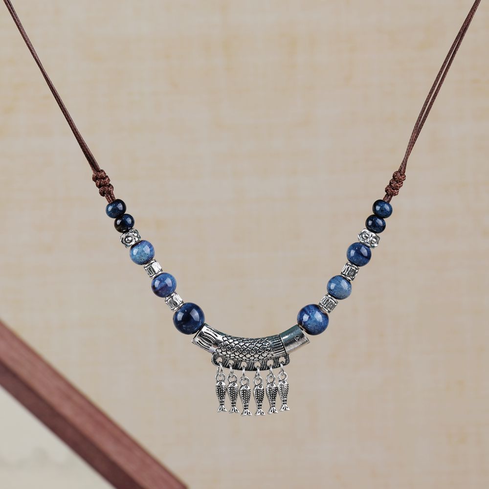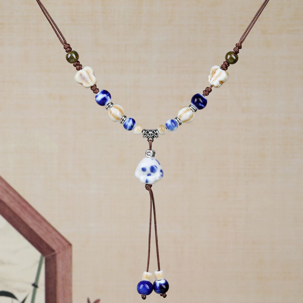 批发陶瓷毛衣链 复古民族风服装配饰 几何型秋冬毛衣项链地摊货源