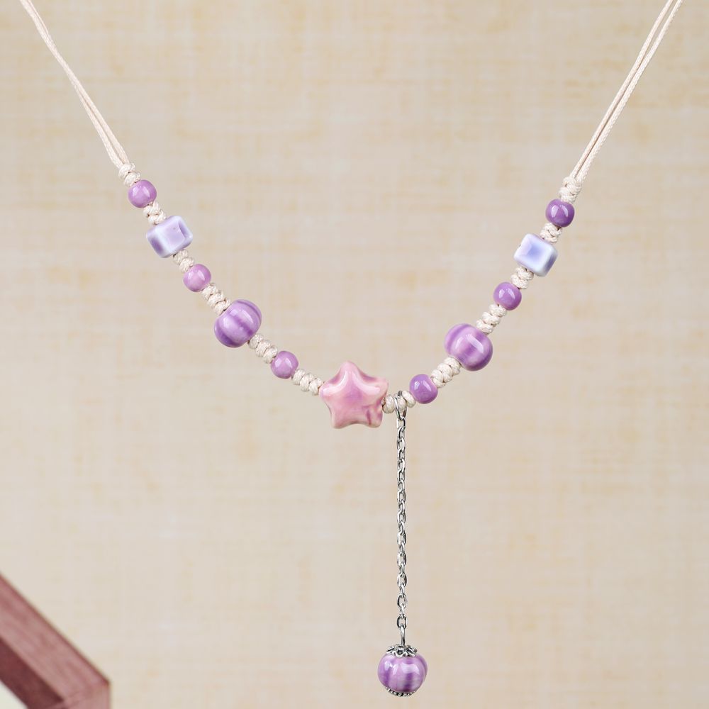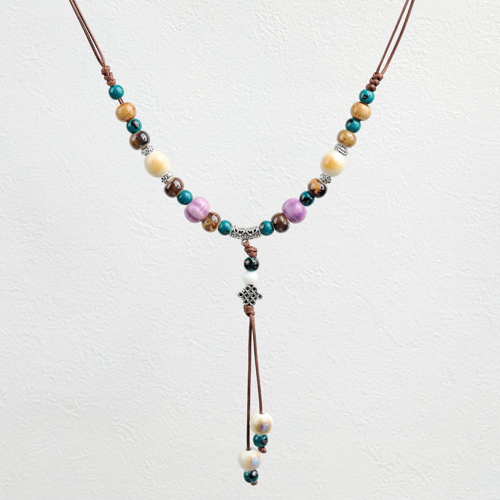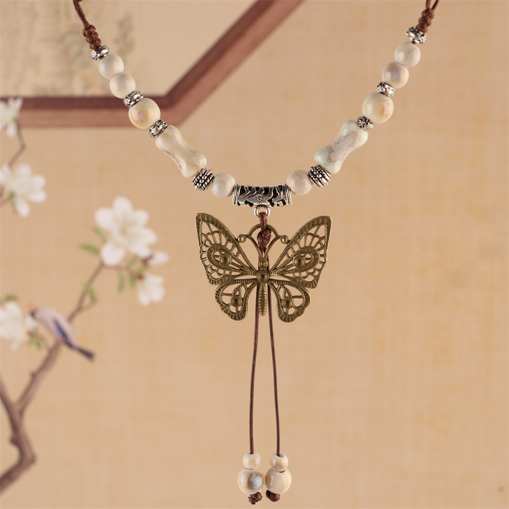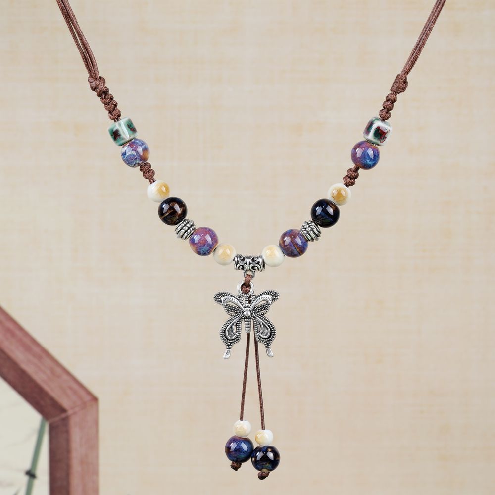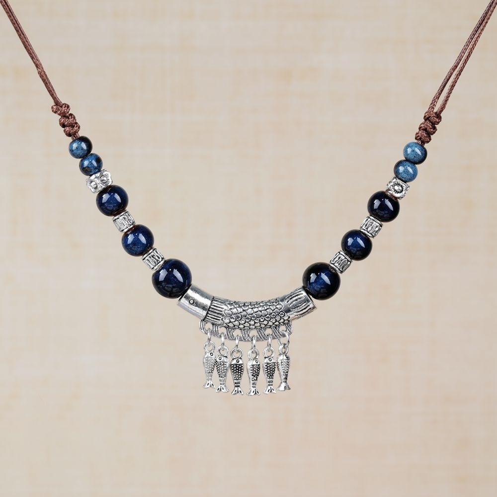 批发陶瓷毛衣链 复古民族风服装配饰 几何型秋冬毛衣项链地摊货源