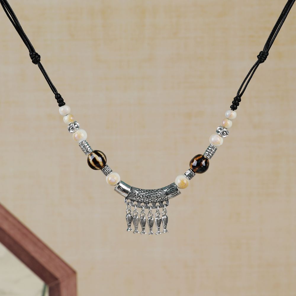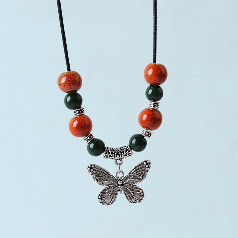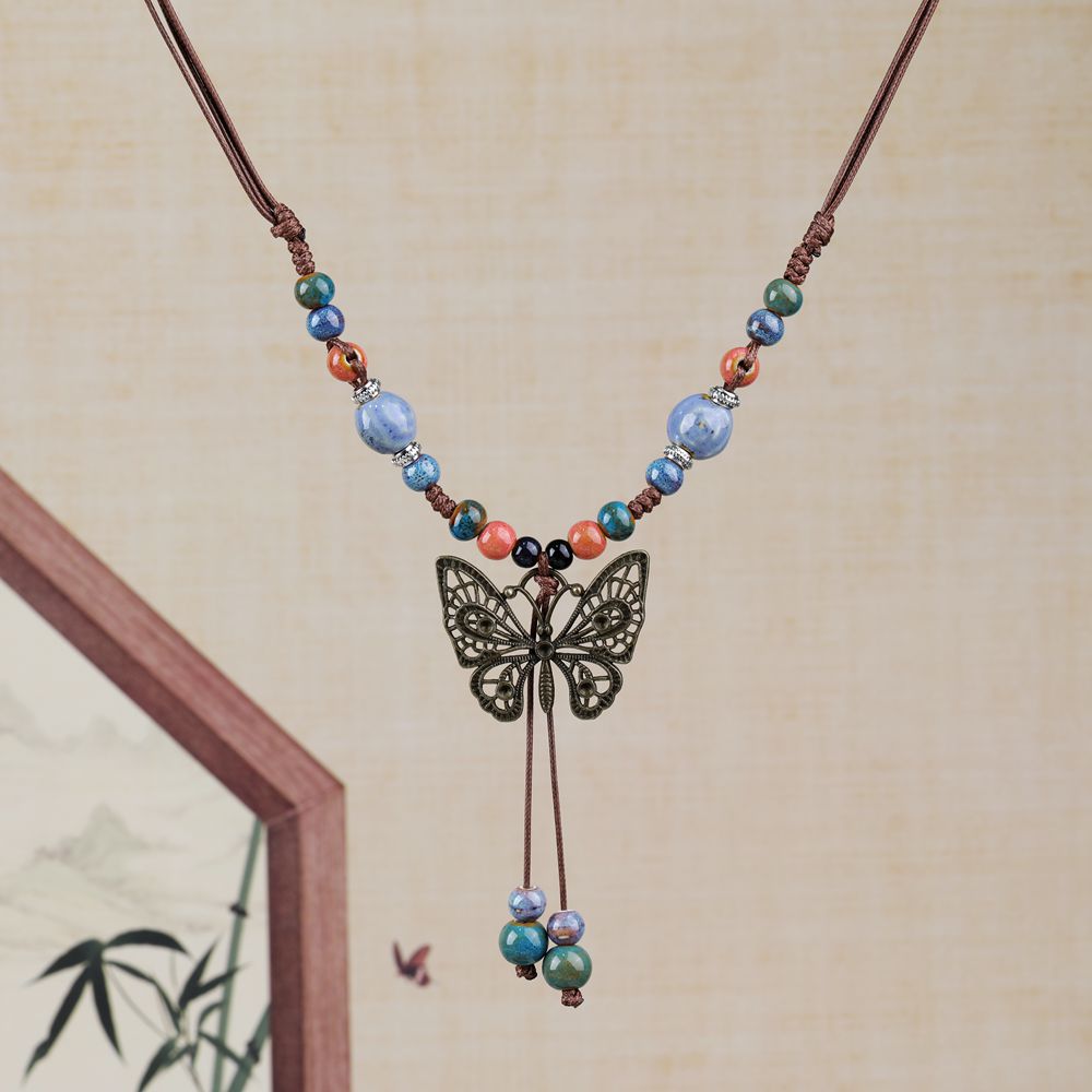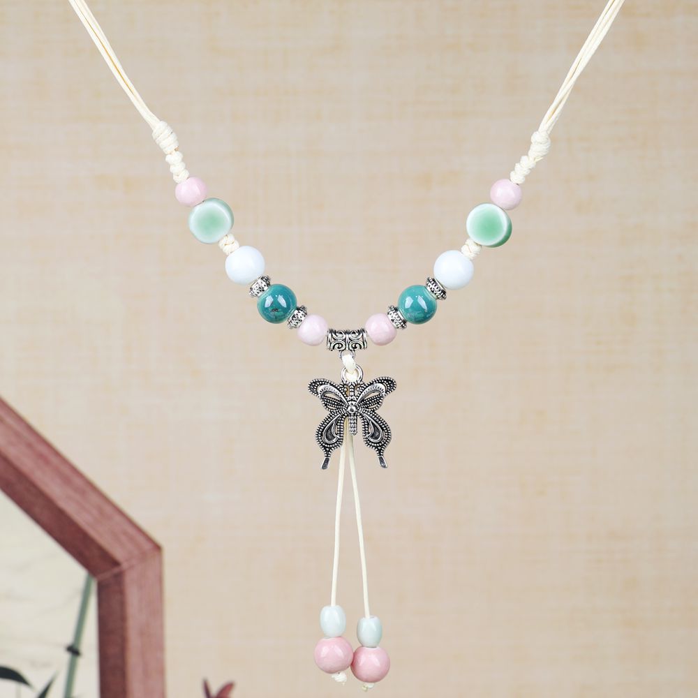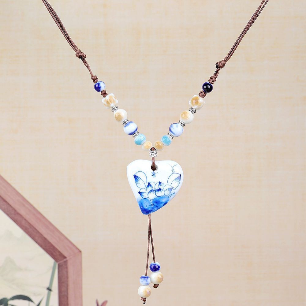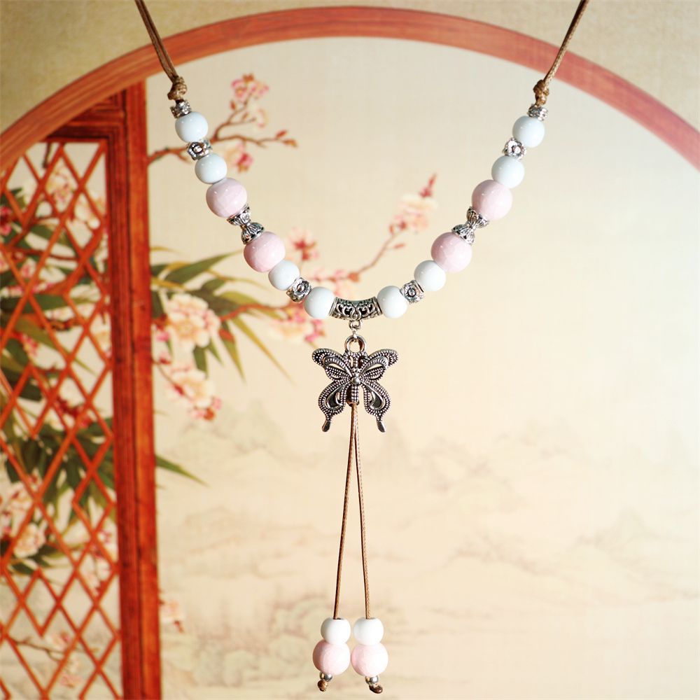 批发陶瓷毛衣链 复古民族风服装配饰 几何型秋冬毛衣项链地摊货源