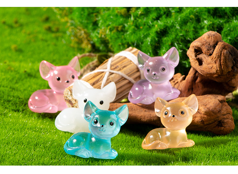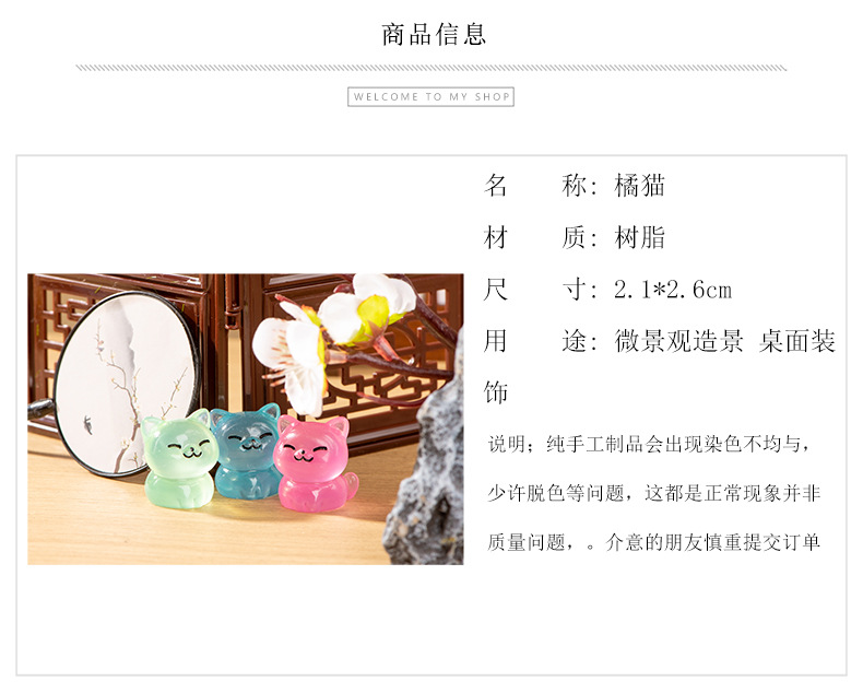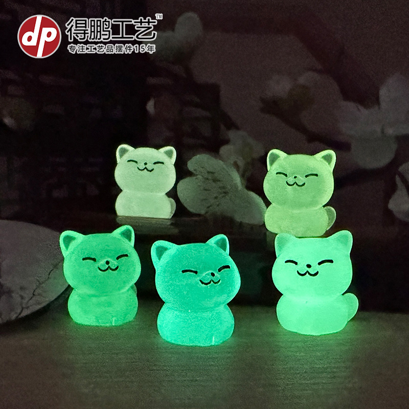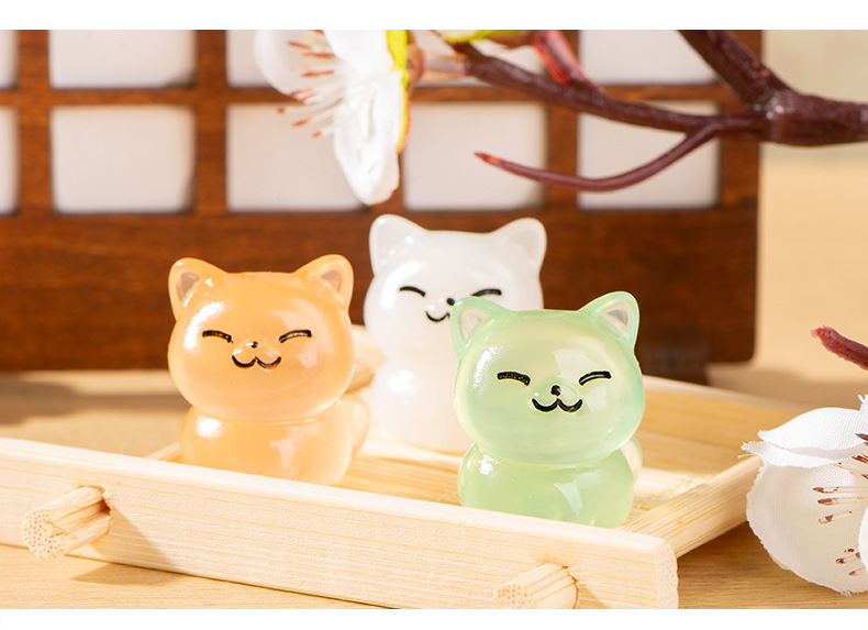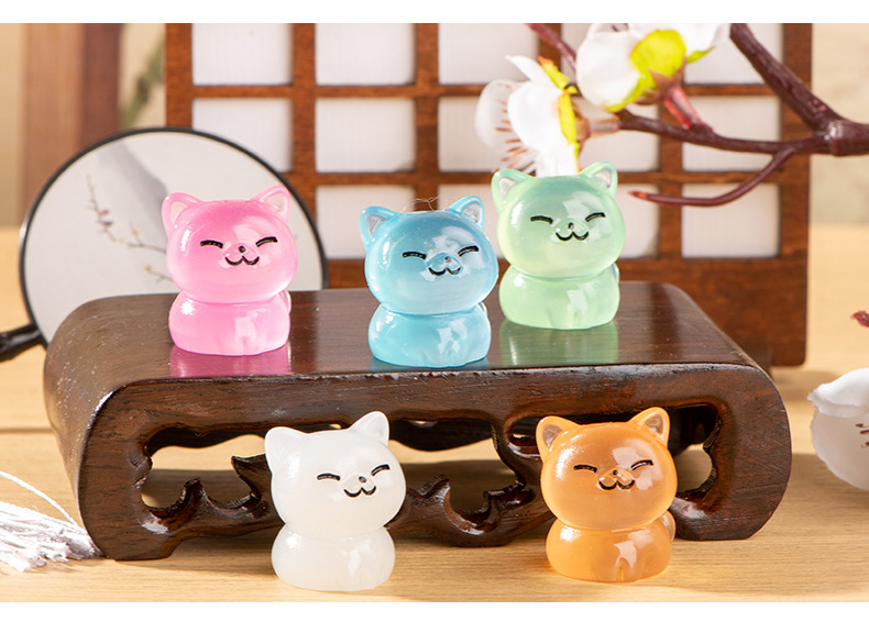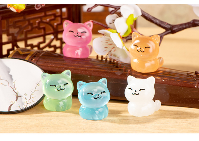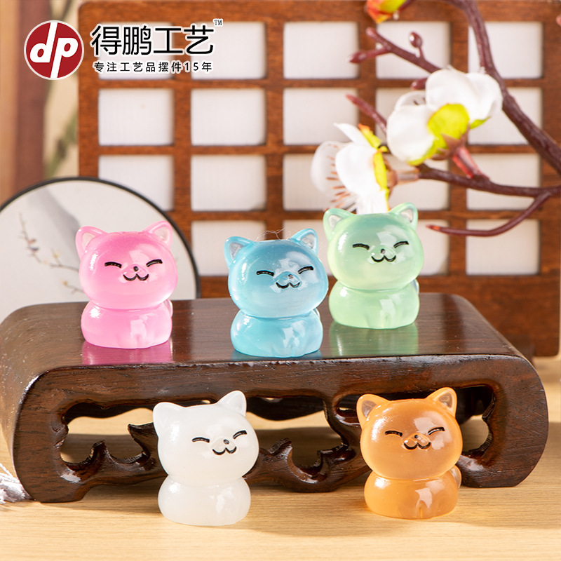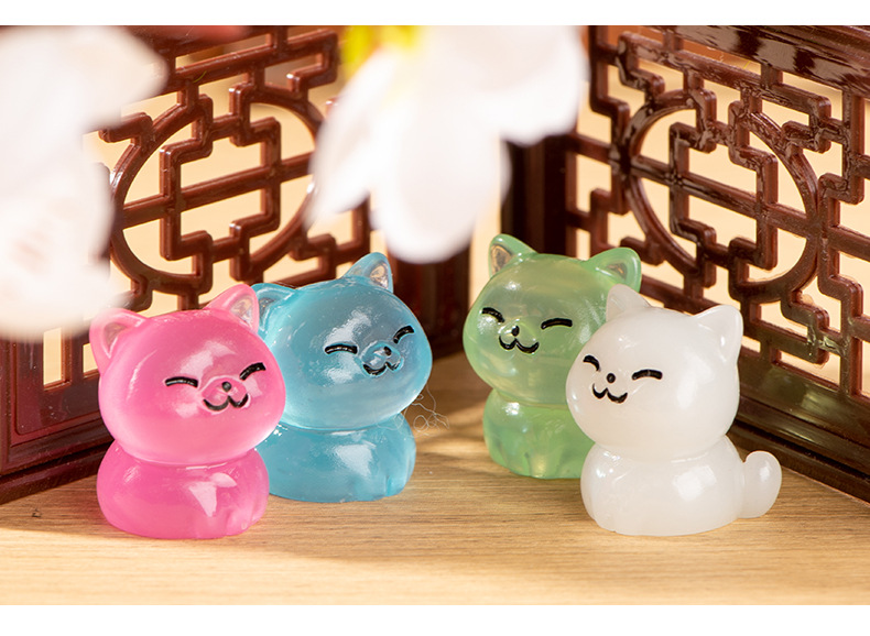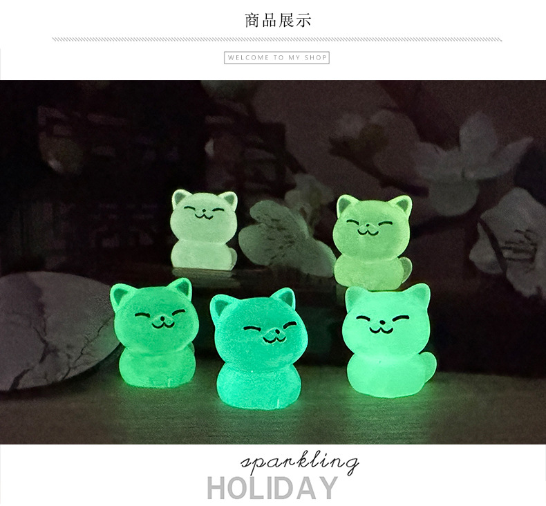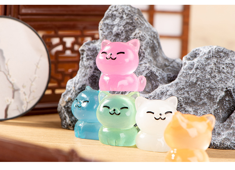 微景观树脂摆件卡通可爱夜光小猫动物摆件桌面汽车创意装饰品配件