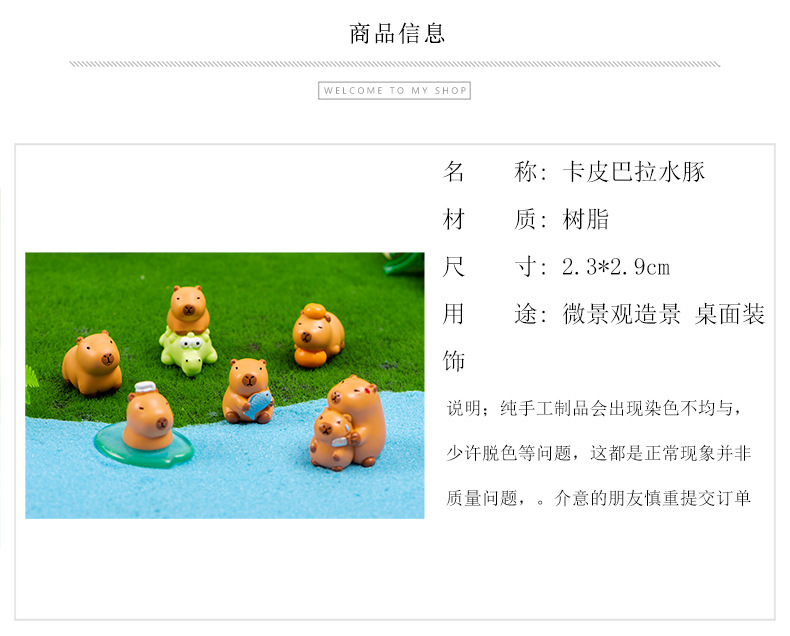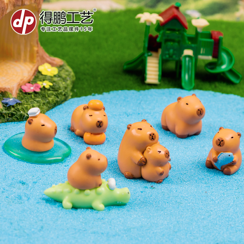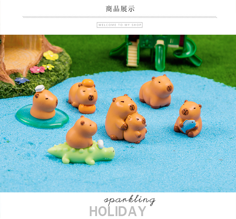 微景观摆件创意可爱卡皮巴拉水豚公仔手办树脂工艺品汽车桌面摆件