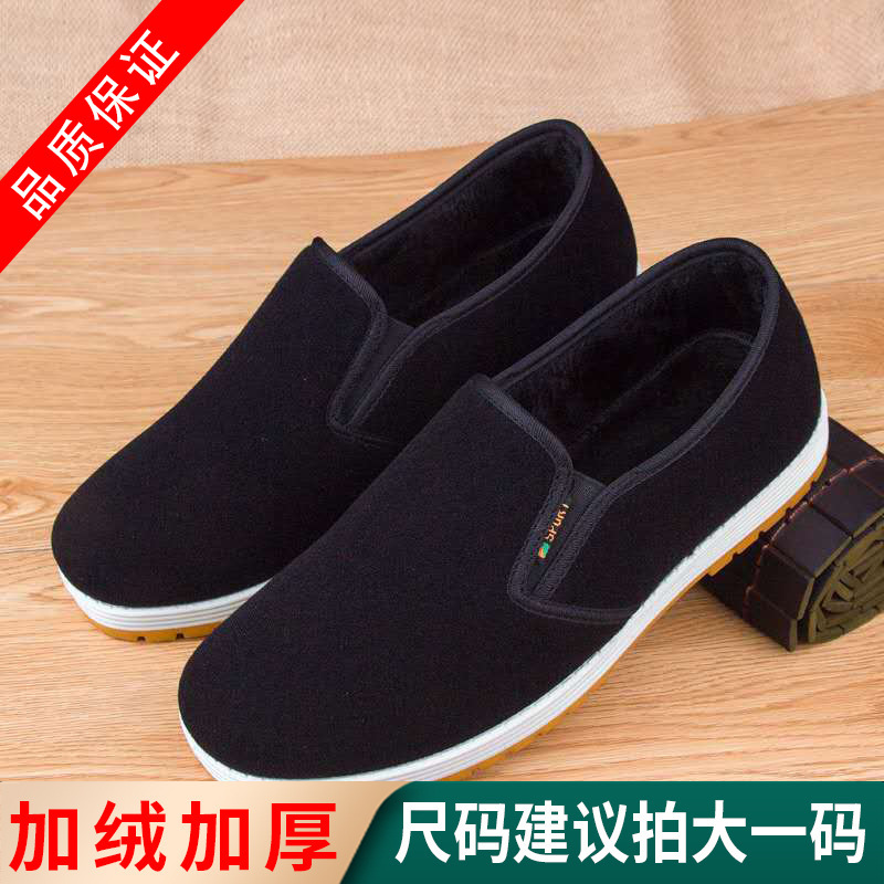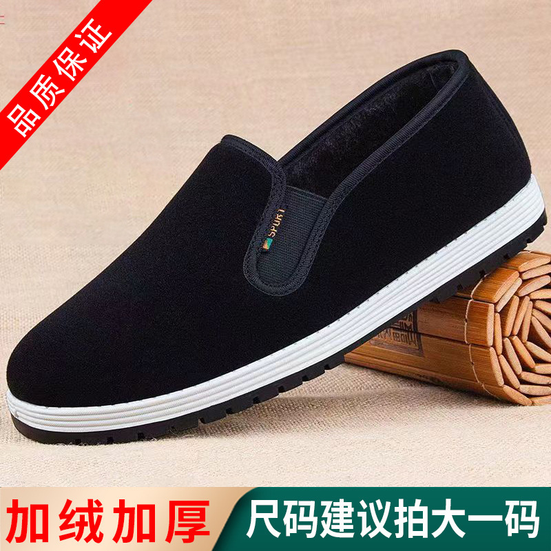 夏季男鞋老北京布鞋男士一脚蹬牛筋底批发中老年透气黑轮胎底布鞋