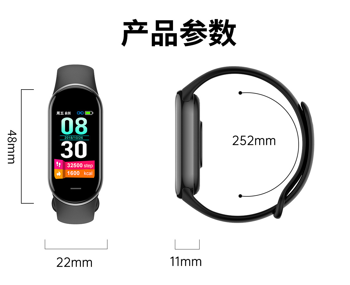 2025新款M8智能手环心率运动监测1.14英寸DIY易更换表带