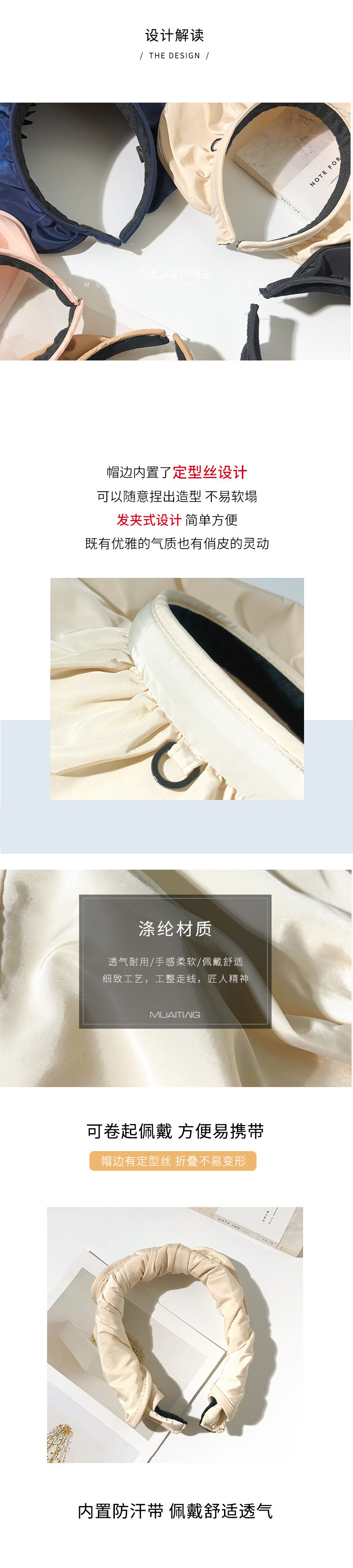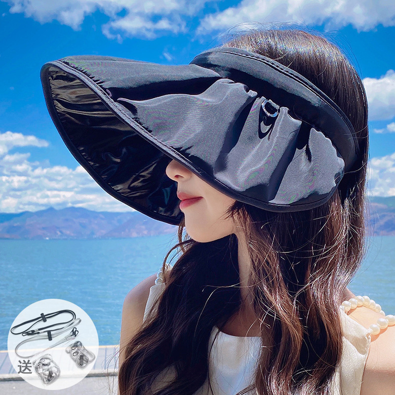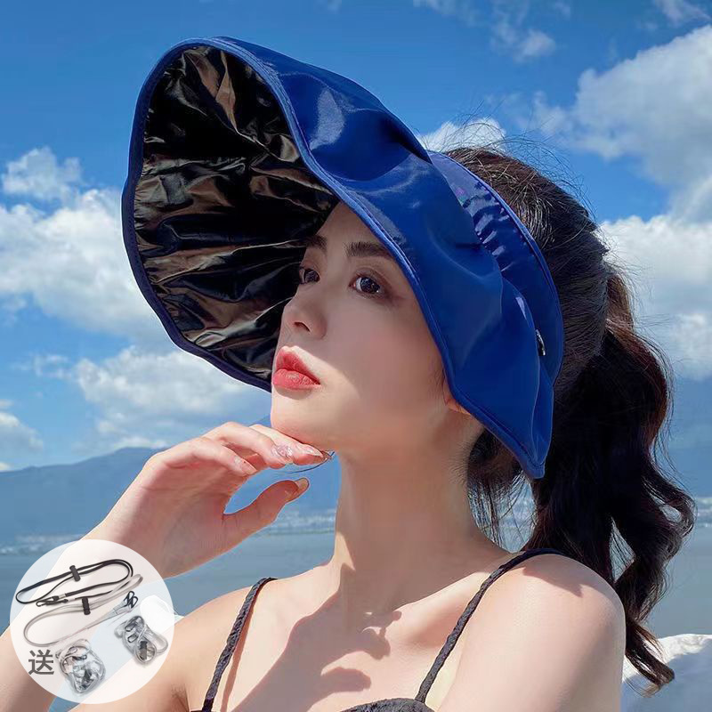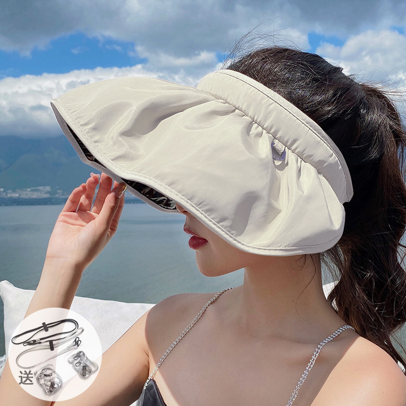夏季遮阳帽韩版防晒帽大檐遮脸网红贝壳帽便携可卷发箍太阳女士帽