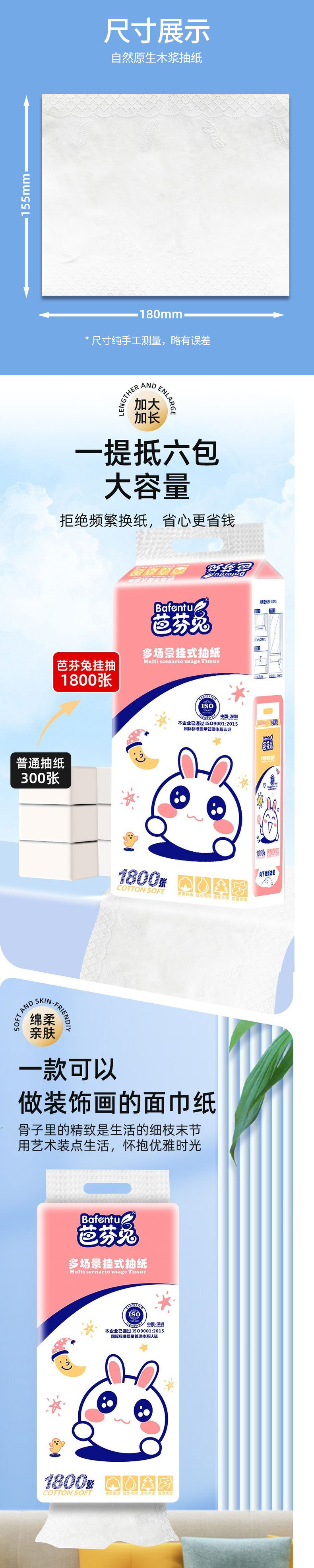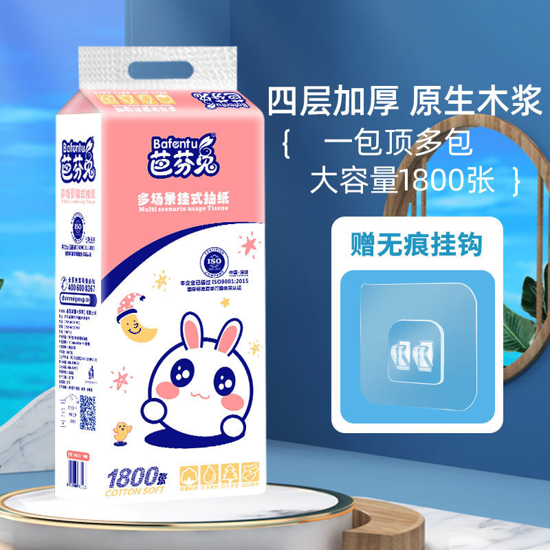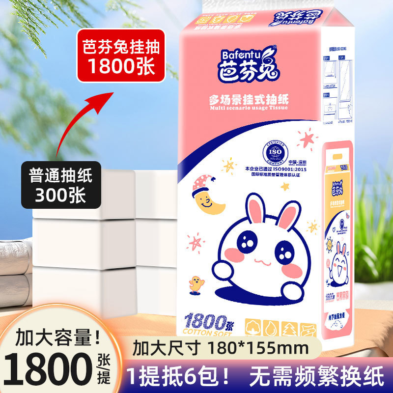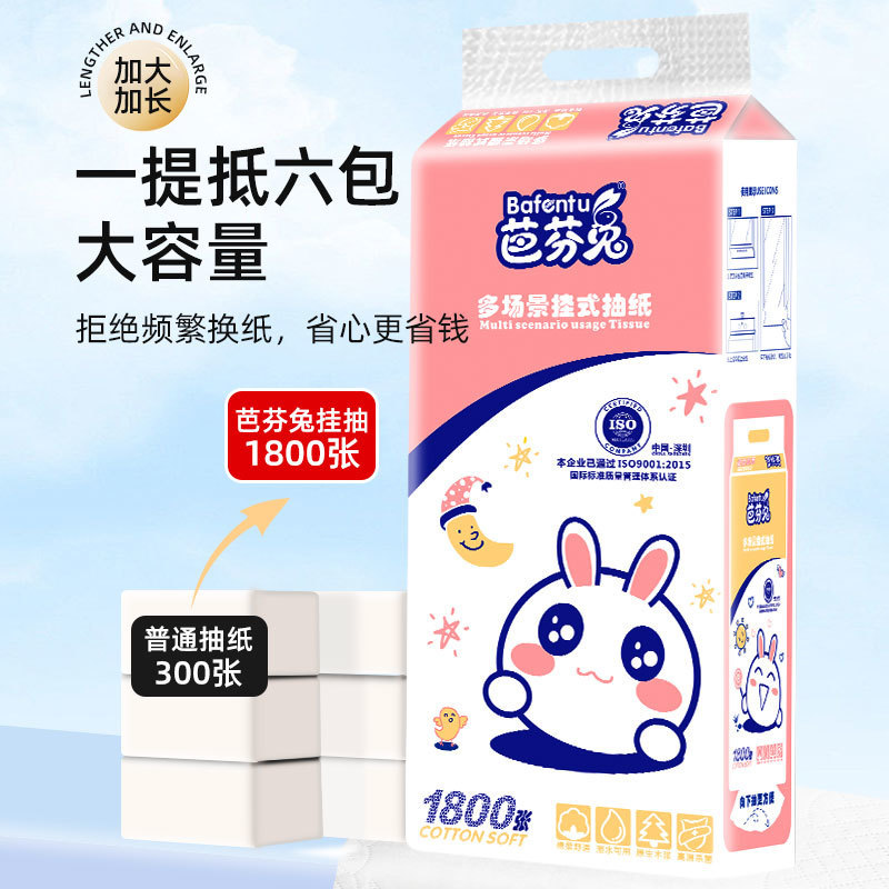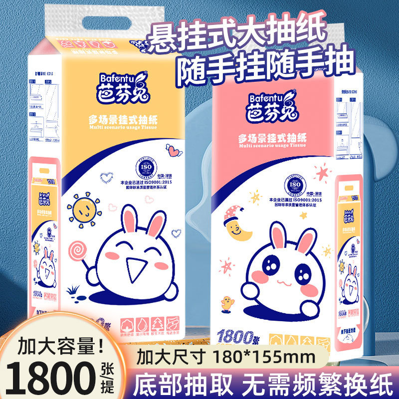 1800张芭芬兔悬挂式抽纸底部抽纸柔软平板卫生纸大包厕所抽纸挂纸
