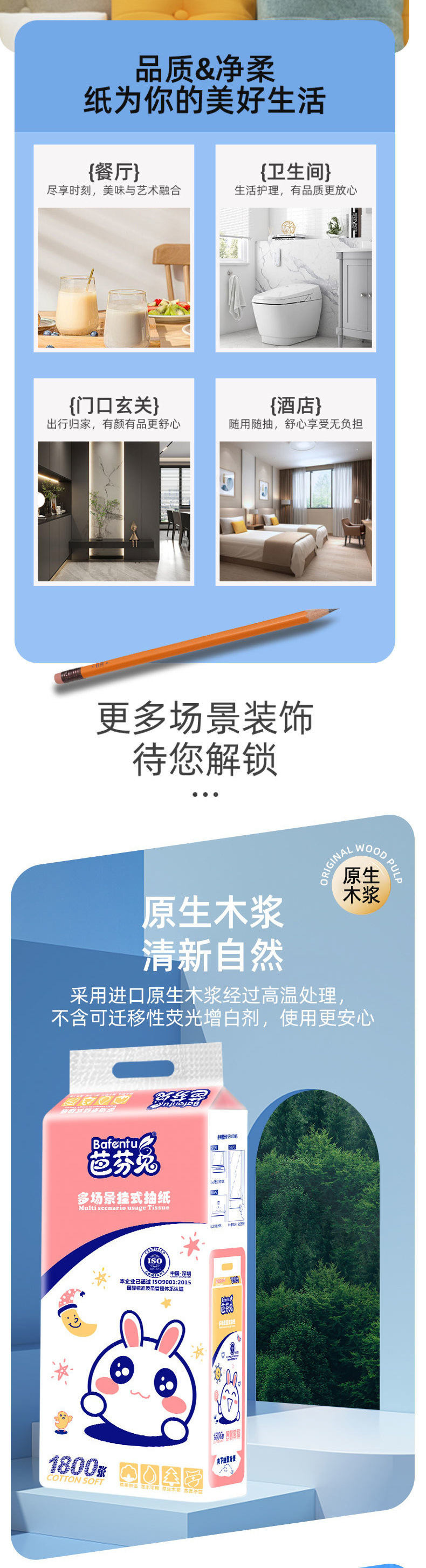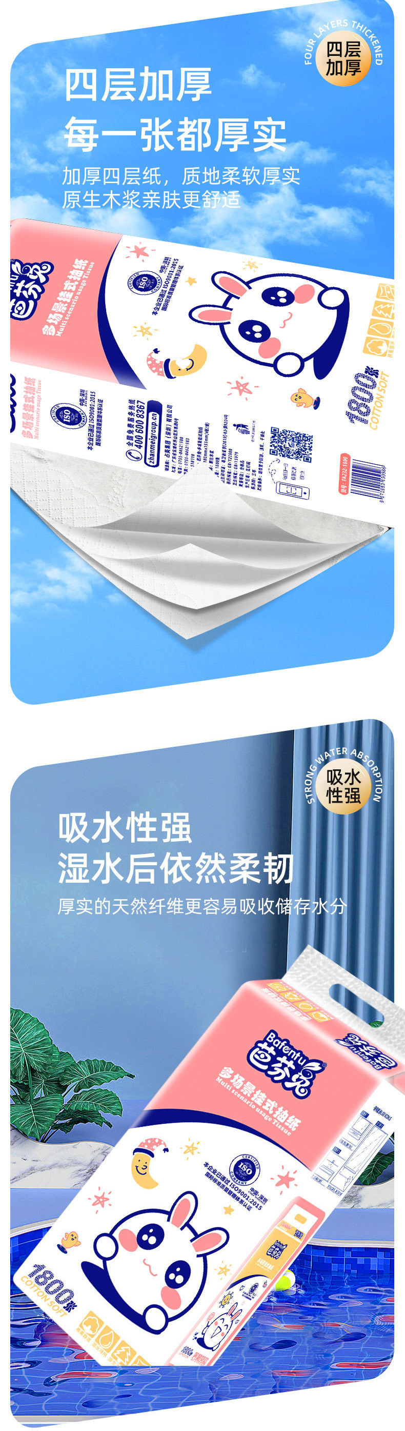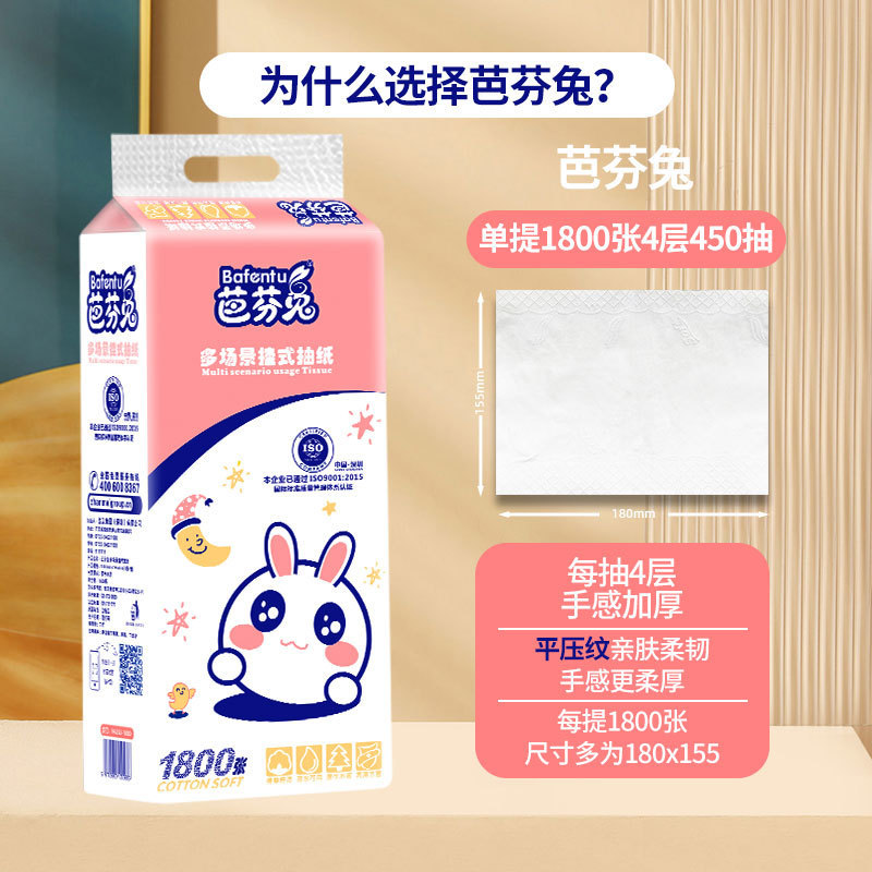 1800张芭芬兔悬挂式抽纸底部抽纸柔软平板卫生纸大包厕所抽纸挂纸